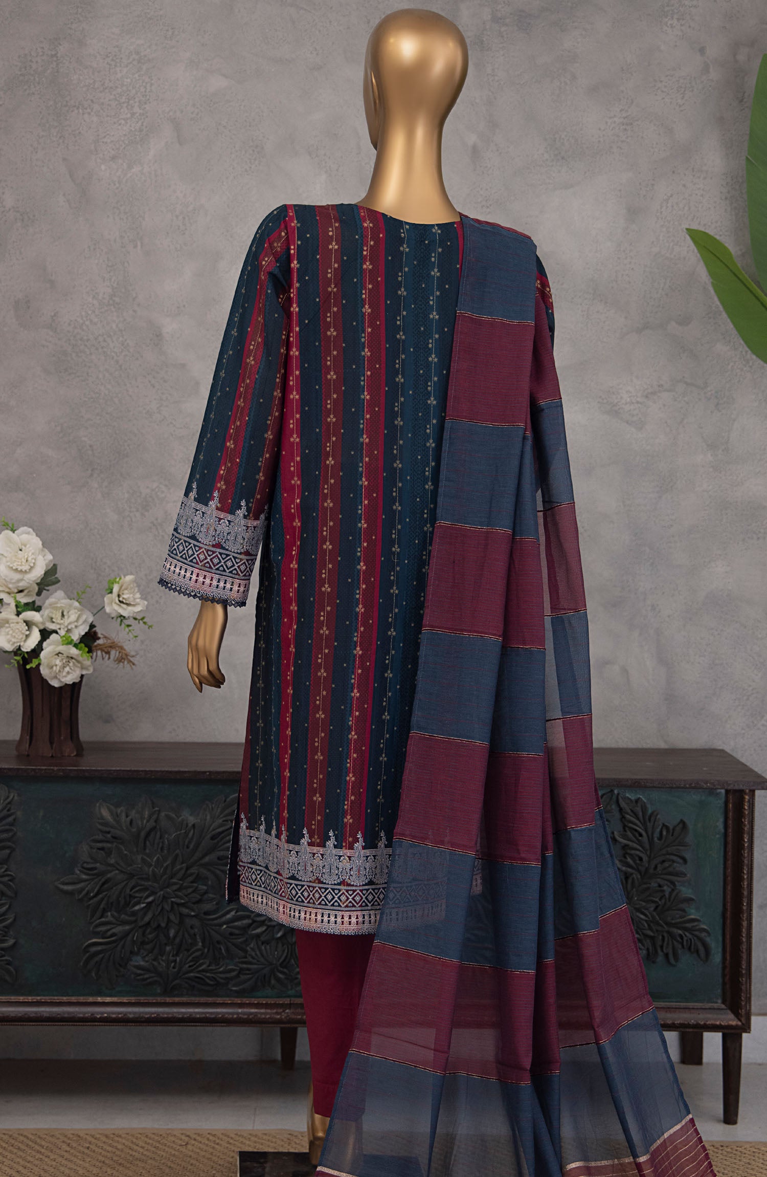 HZ Textile Embroidered Jacquard Unstitched 3 Piece Suit - TJS-1214 - HZ25TJS - Maroon - Casual Collection