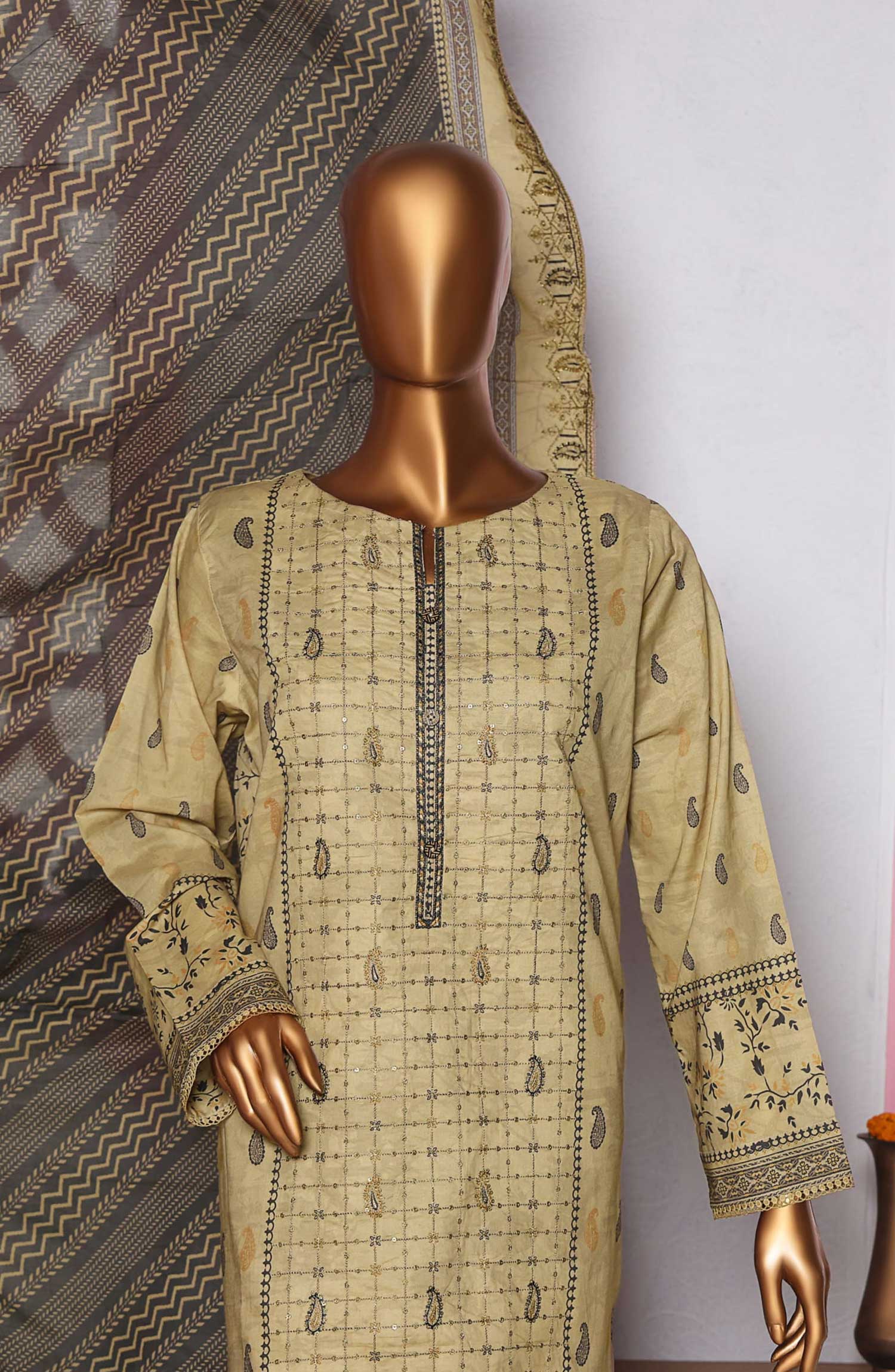 HZ Textile Embroidered Lawn Unstitched 3 Piece - PEC-821 - HZ25PEL - Beige - Summer Collection