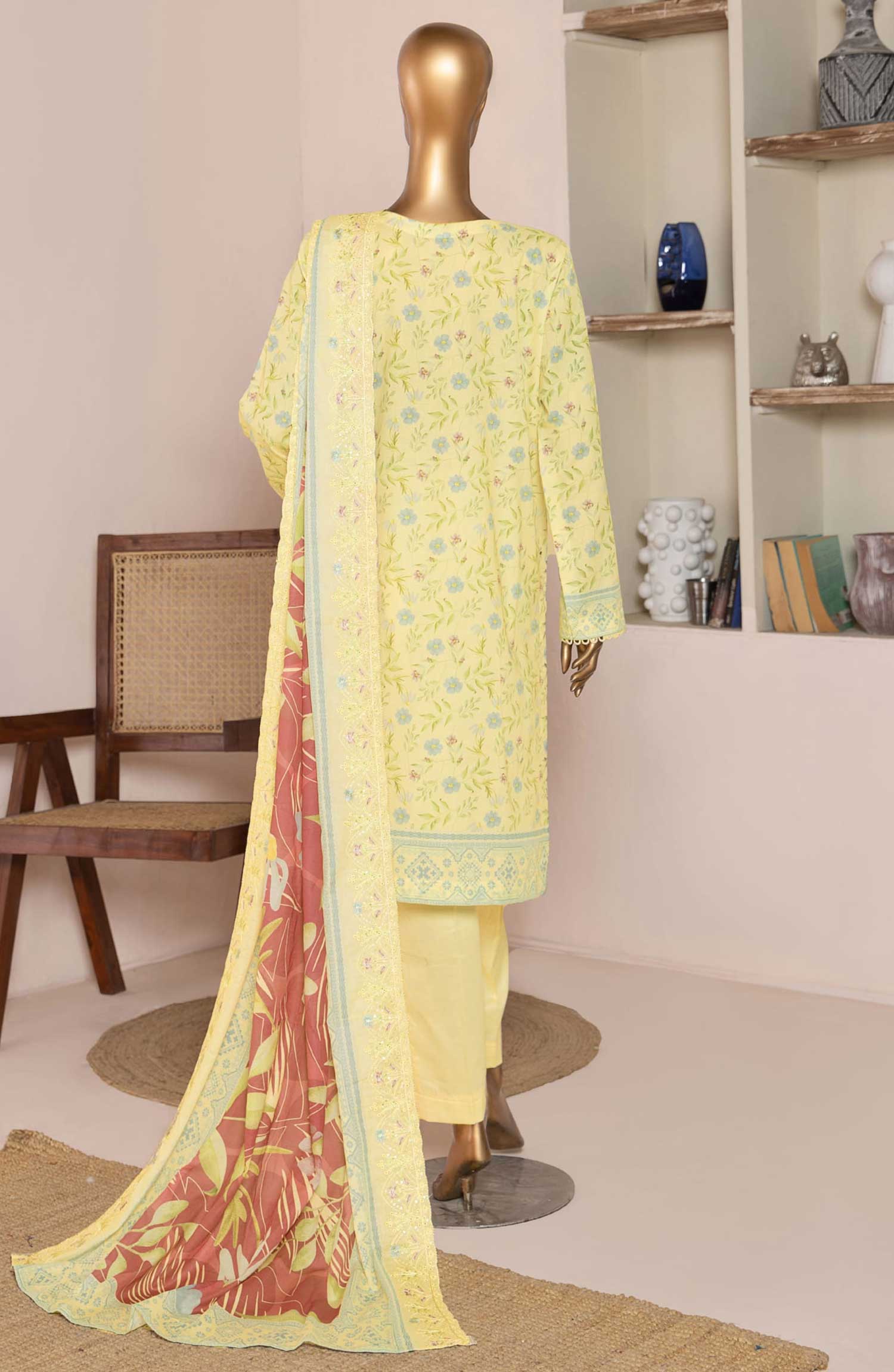 HZ Textile Embroidered Lawn Unstitched 3 Piece - PEC-953 - HZ25PEL - Creamy Yellow - Summer Collection