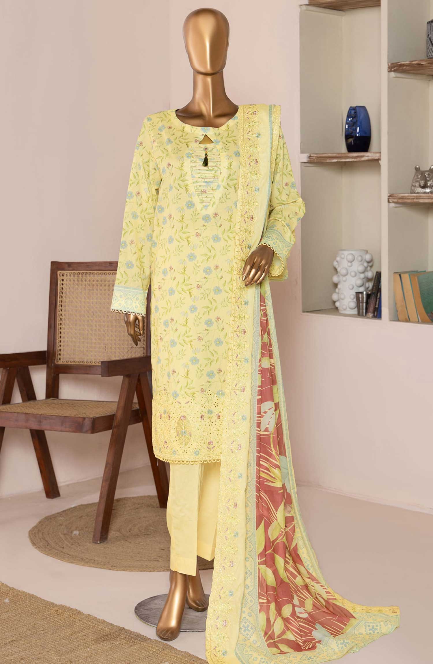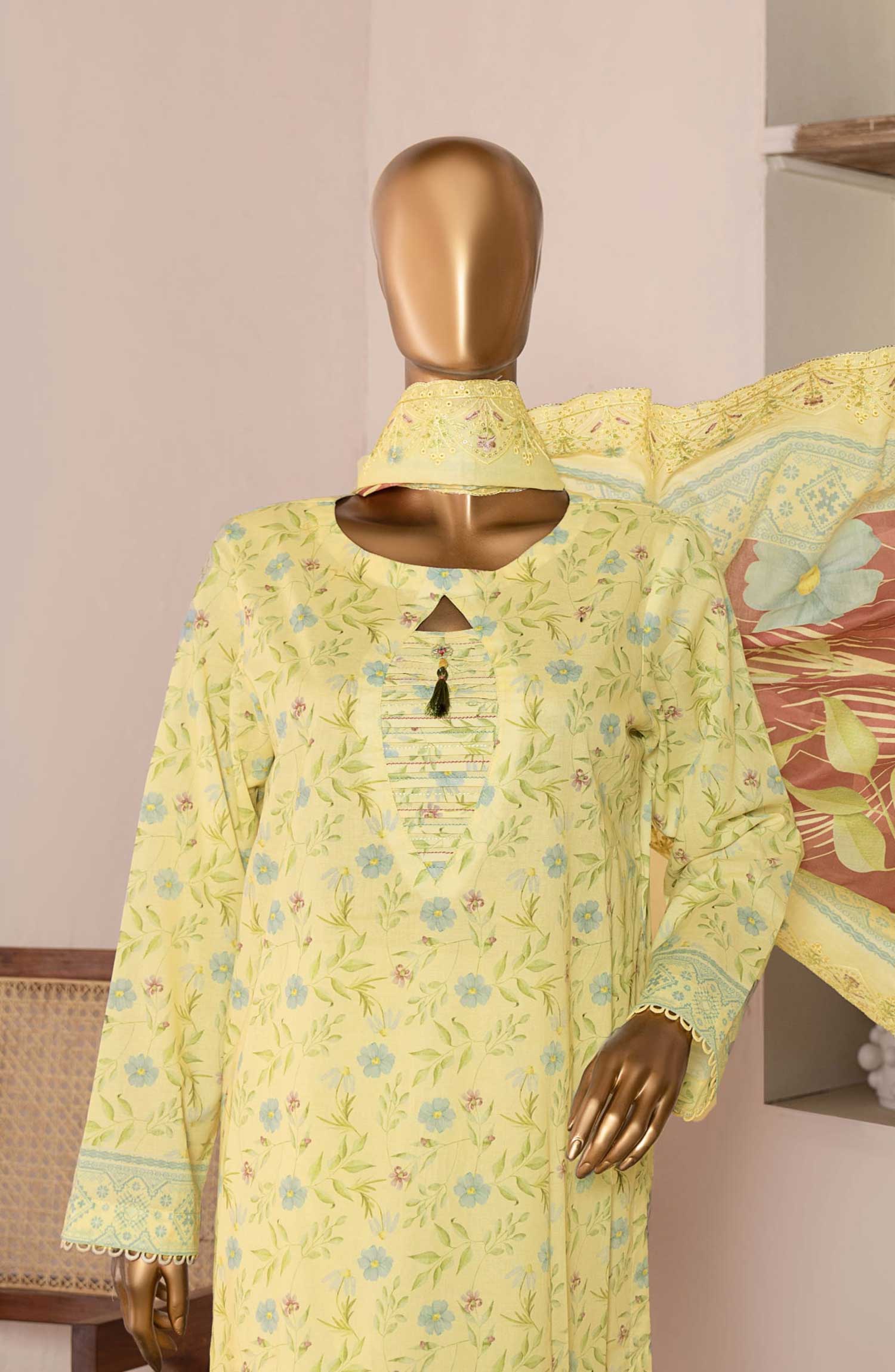 Home HZ Textile Embroidered Lawn Unstitched 3 Piece - PEC-953 - HZ25PEL - Creamy Yellow - Summer Collection