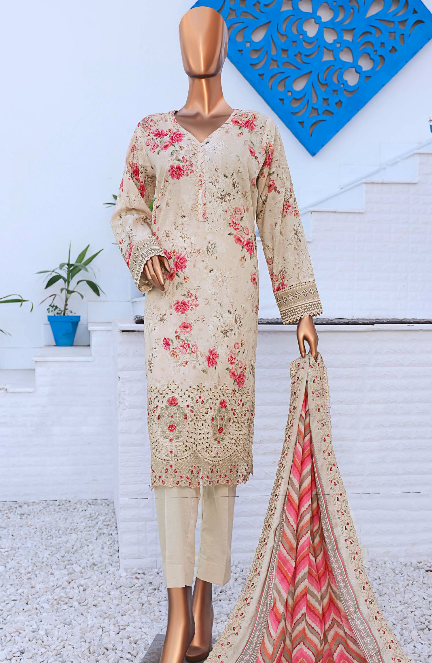 HZ Textile Embroidered Lawn Unstitched 3 Piece Suit - D-02 - HZ25PELV2 - Pink - Summer Collection