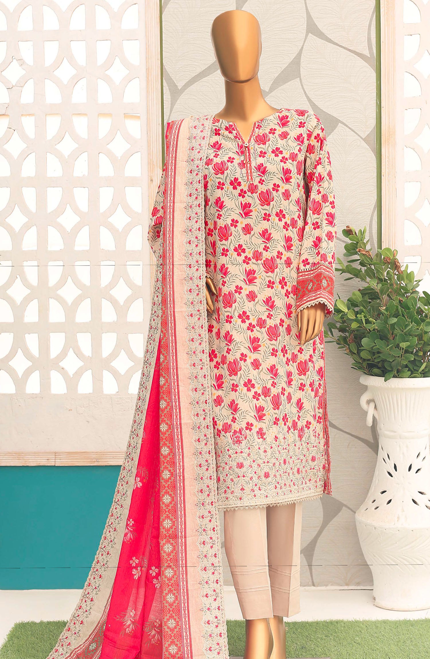 Home HZ Textile Embroidered Lawn Unstitched 3 Piece Suit - D-12 - HZ25PELV2 - White - Summer Collection