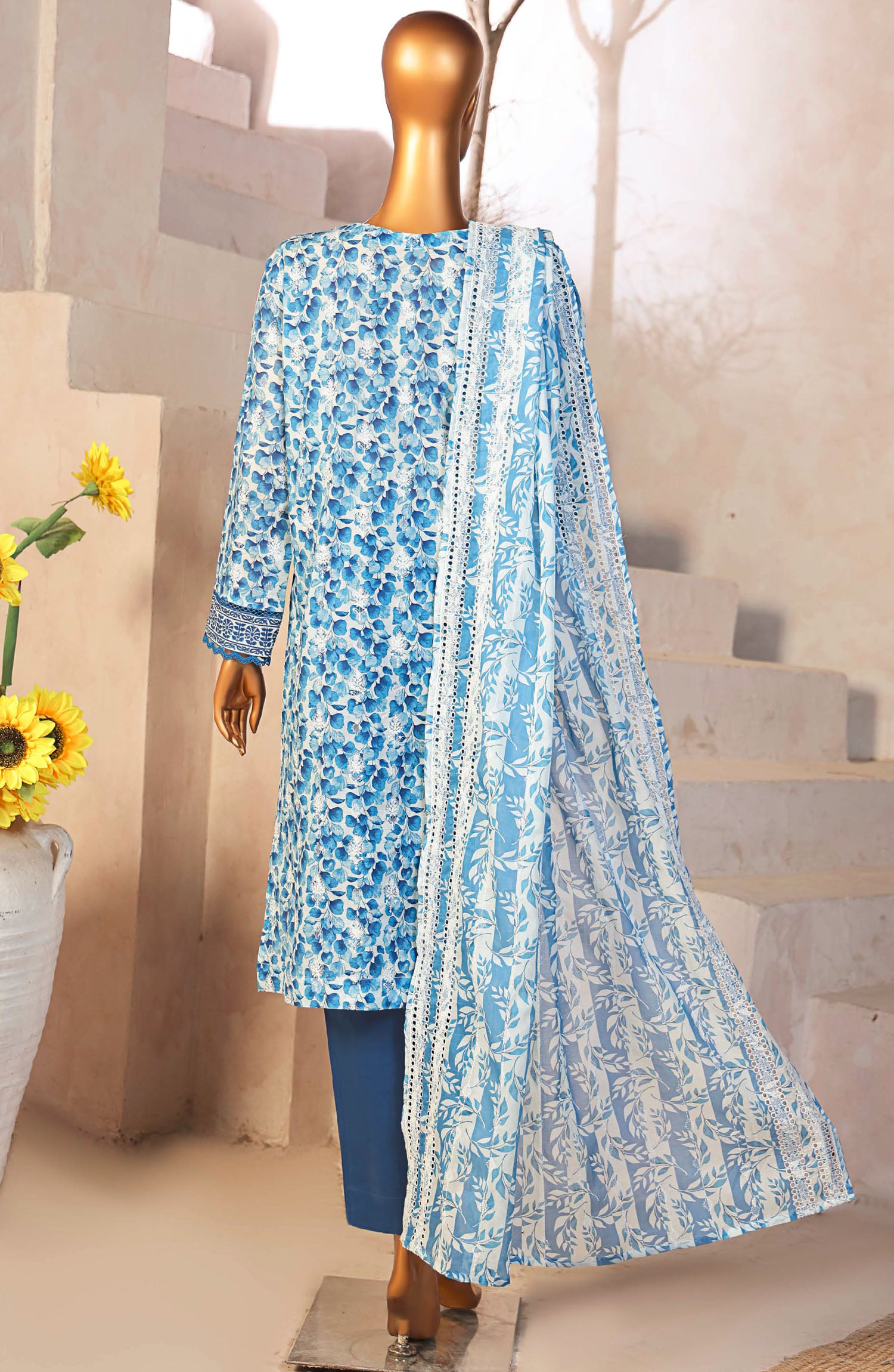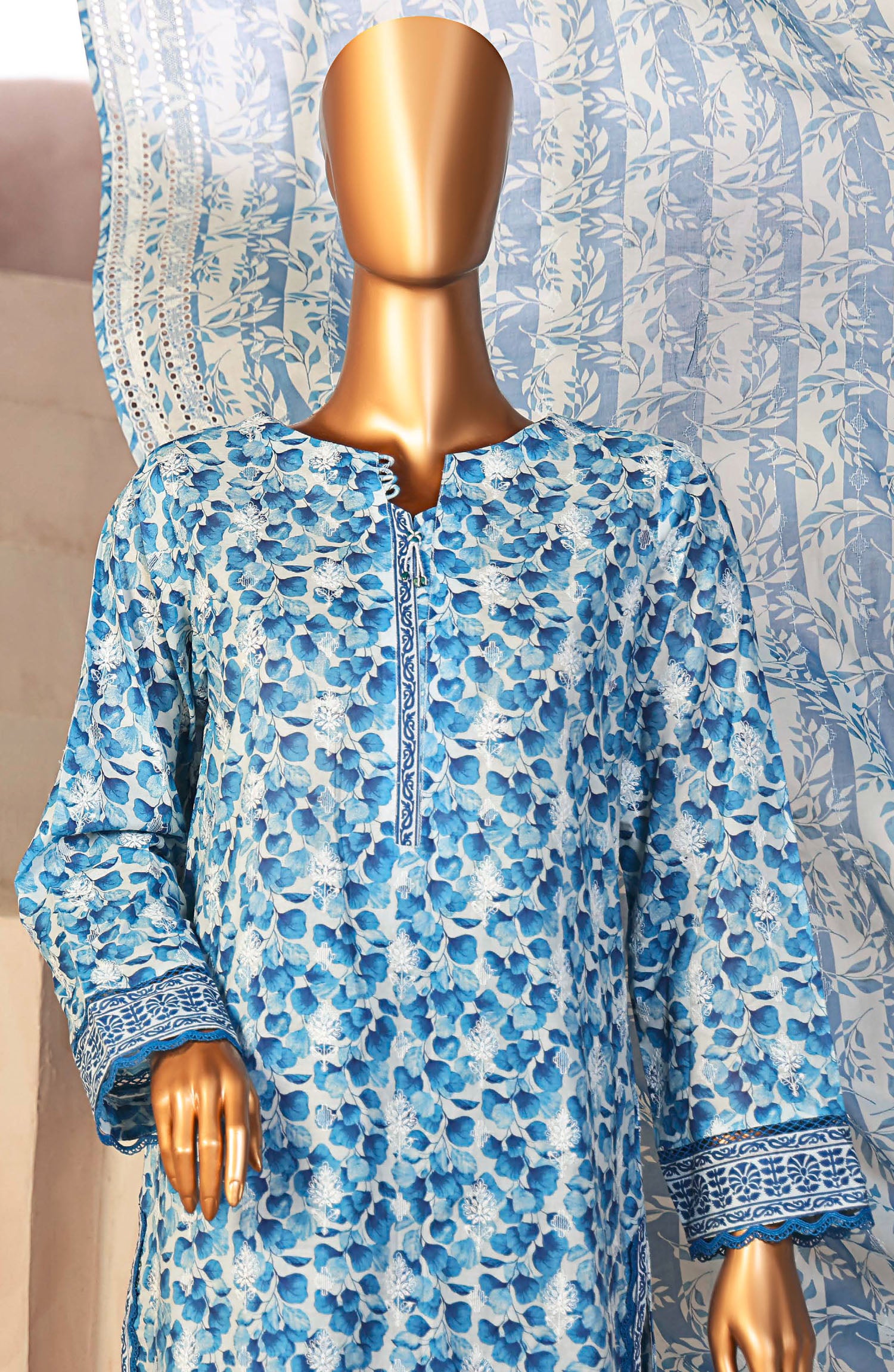 HZ Textile Embroidered Lawn Unstitched 3 Piece Suit - DEC-991 - HZ25EDK - Blue - Summer Collection