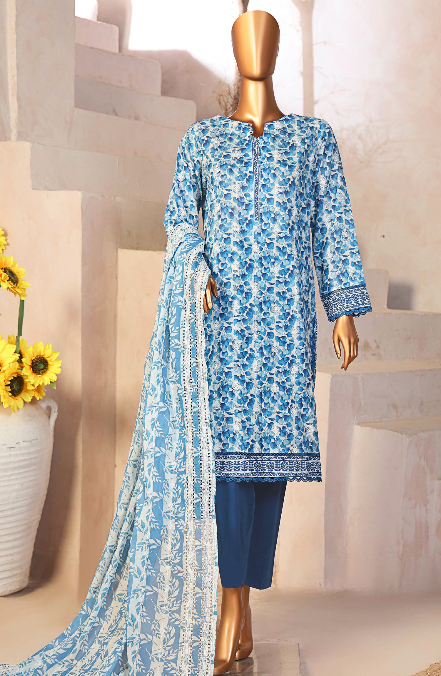 Home HZ Textile Embroidered Lawn Unstitched 3 Piece Suit - DEC-991 - HZ25EDK - Blue - Summer Collection