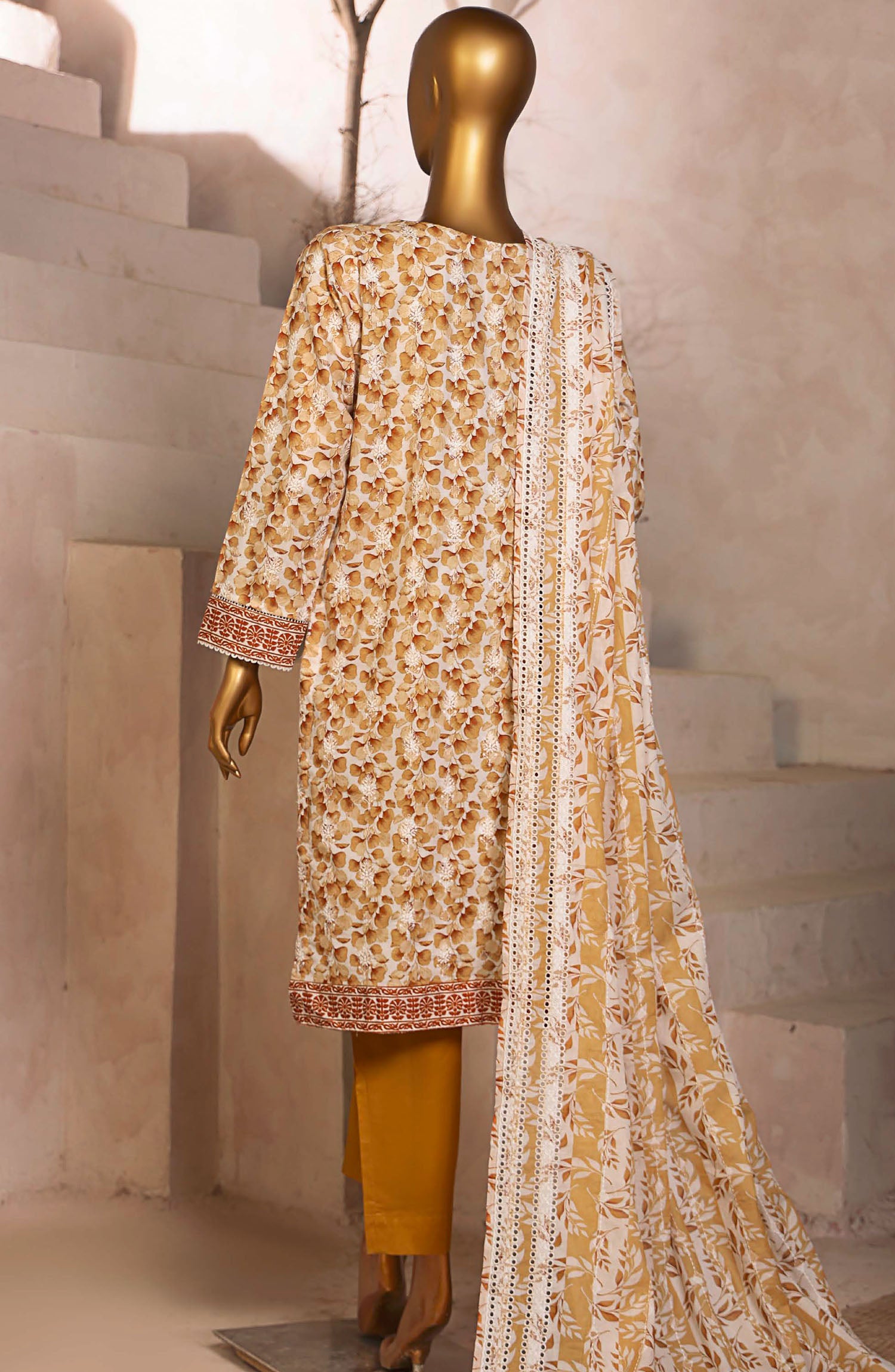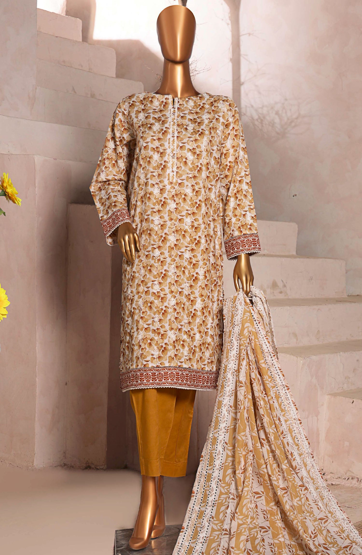 Home HZ Textile Embroidered Lawn Unstitched 3 Piece Suit - DEC-993 - HZ25EDK - Mustard - Summer Collection