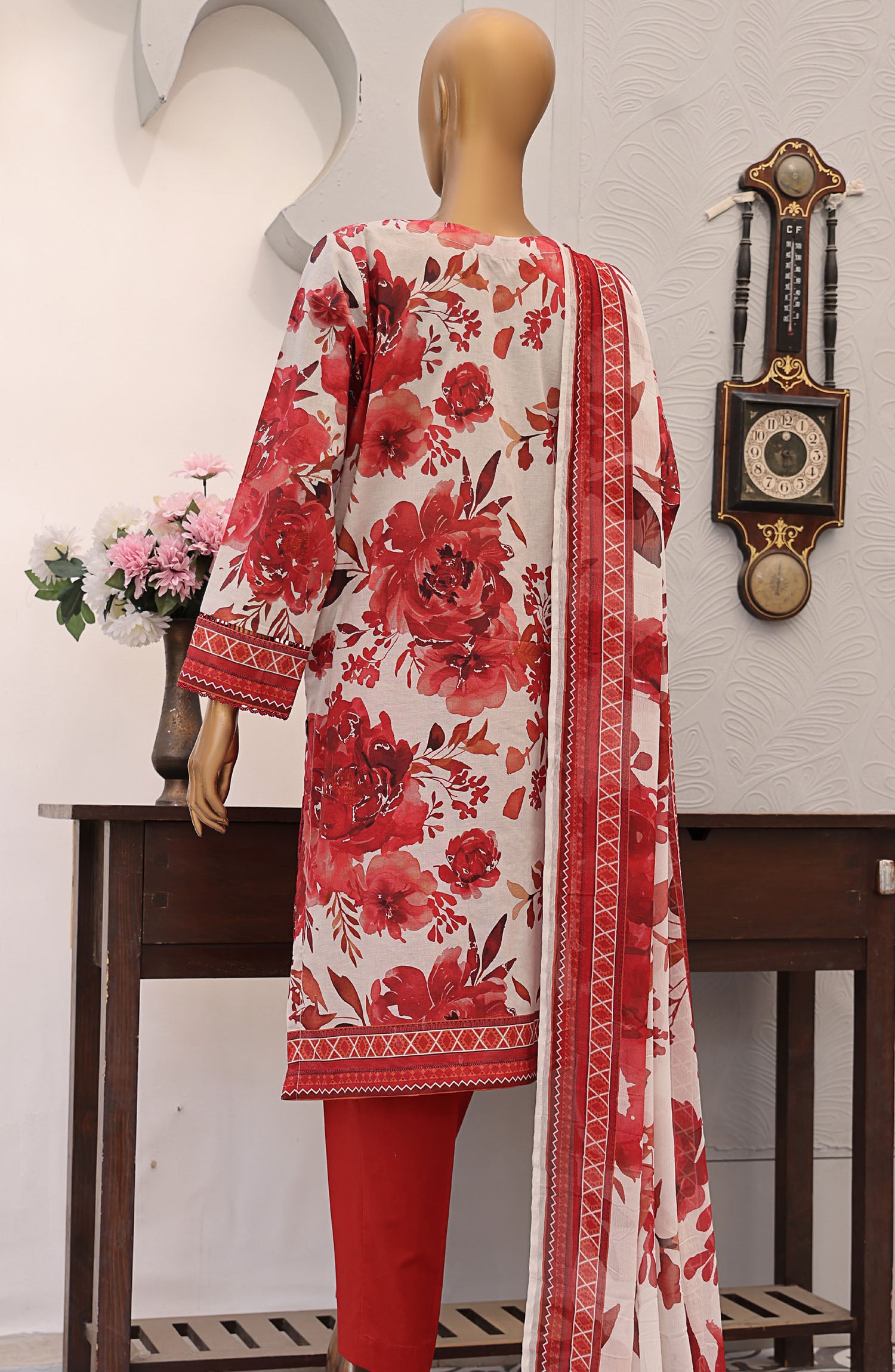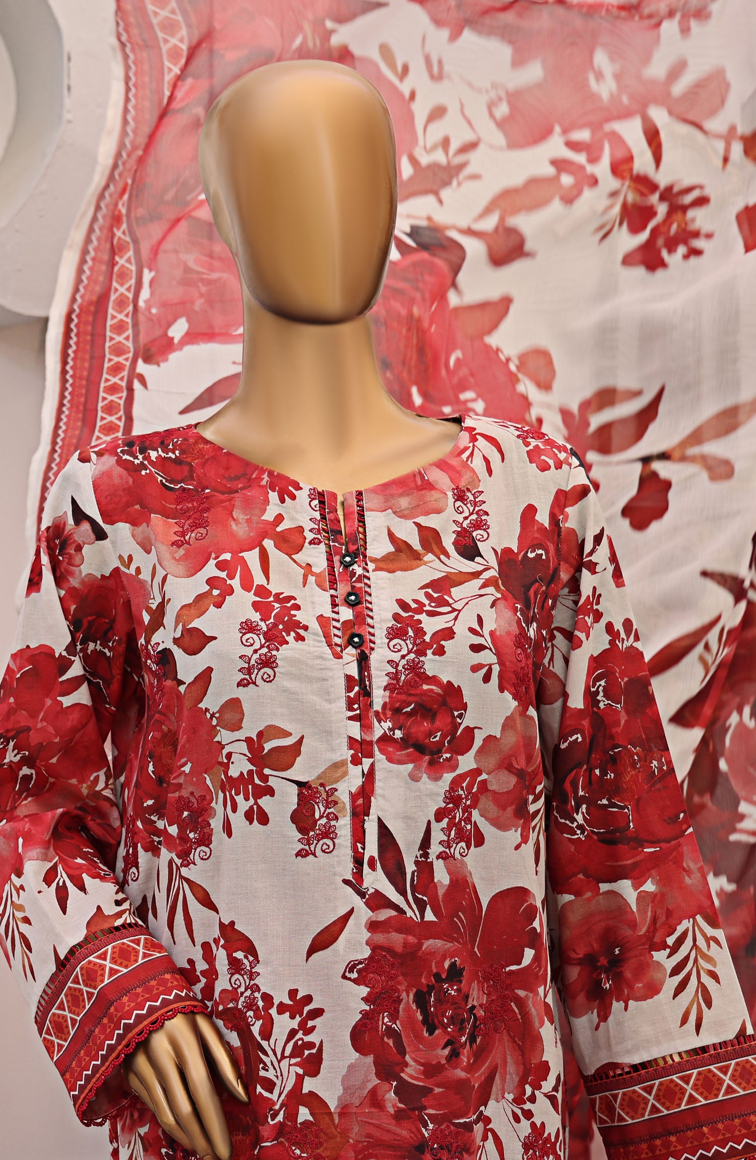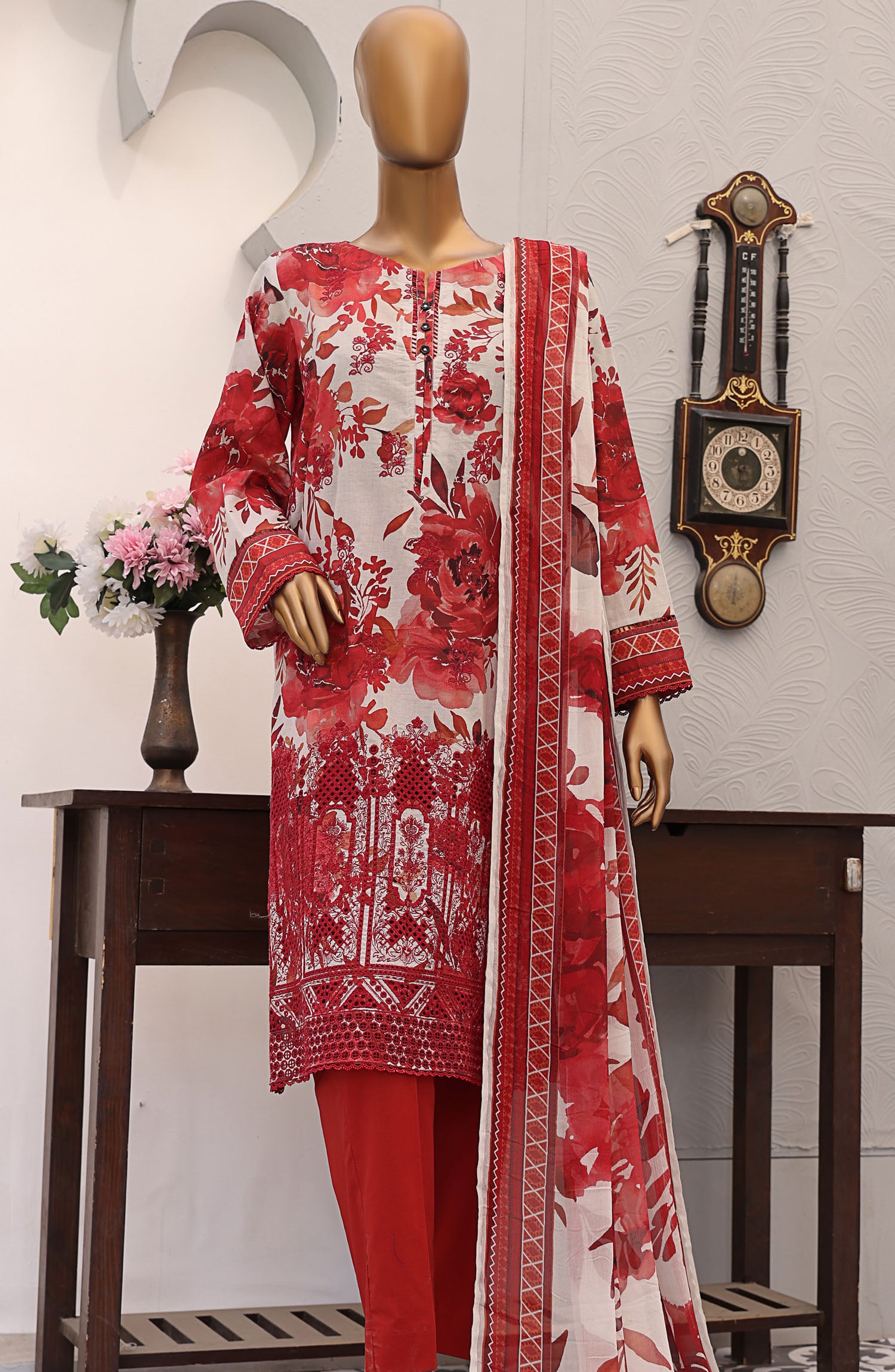 Home HZ Textile Embroidered Lawn Unstitched 3 Piece Suit - EF-1007 - HZ25UFE - Red - Eid Collection