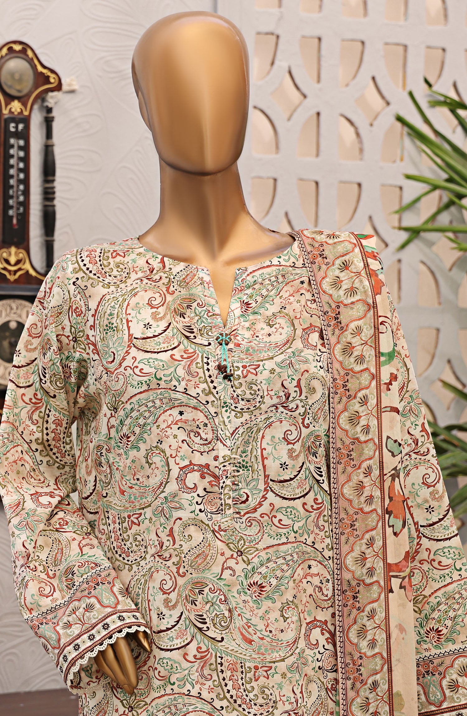 Home HZ Textile Embroidered Lawn Unstitched 3 Piece Suit - EF-1008 - HZ25UFE - Beige - Eid Collection