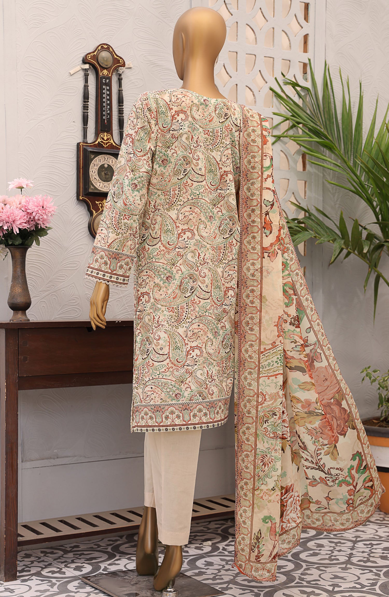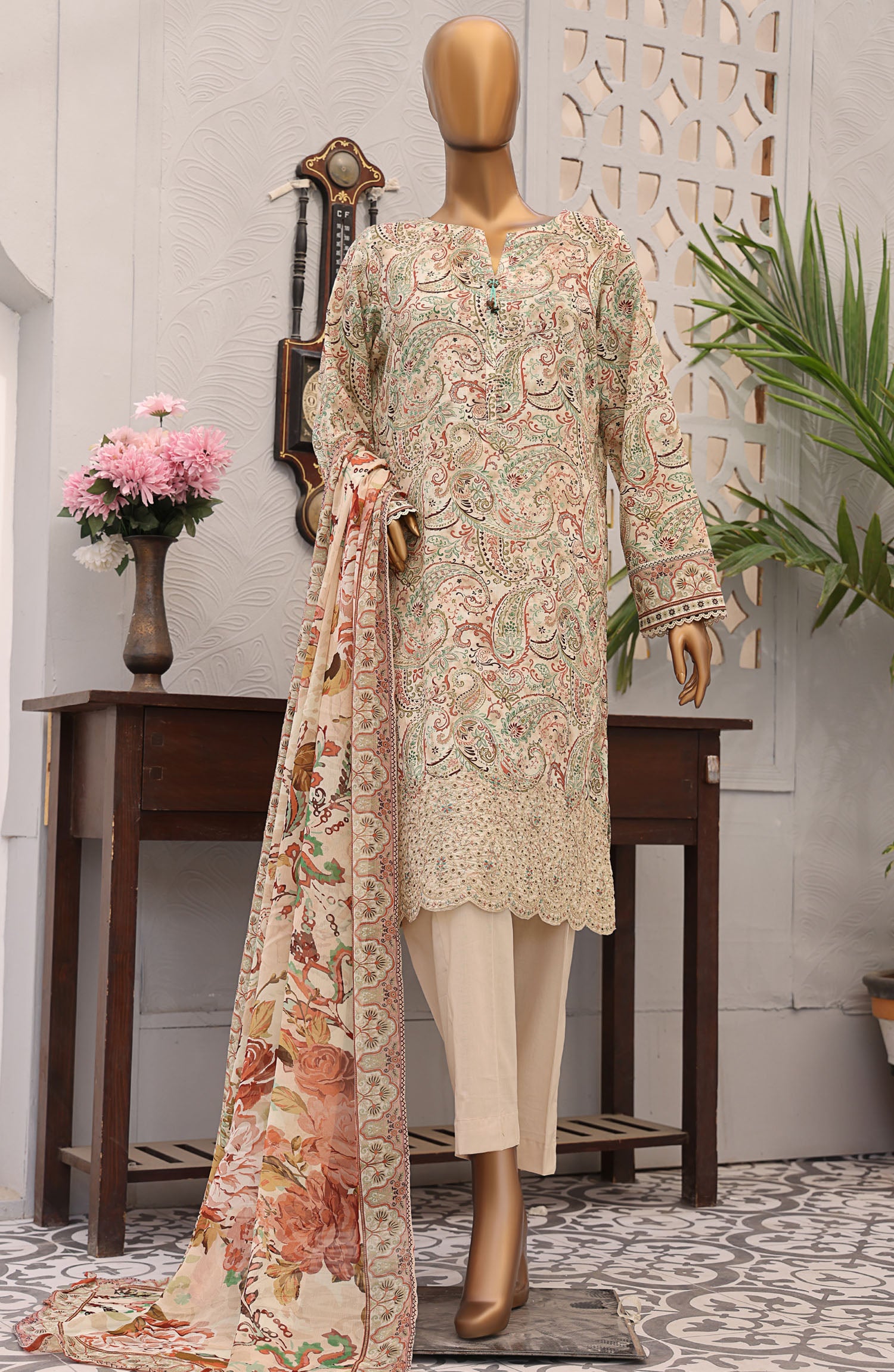 HZ Textile Embroidered Lawn Unstitched 3 Piece Suit - EF-1008 - HZ25UFE - Beige - Eid Collection