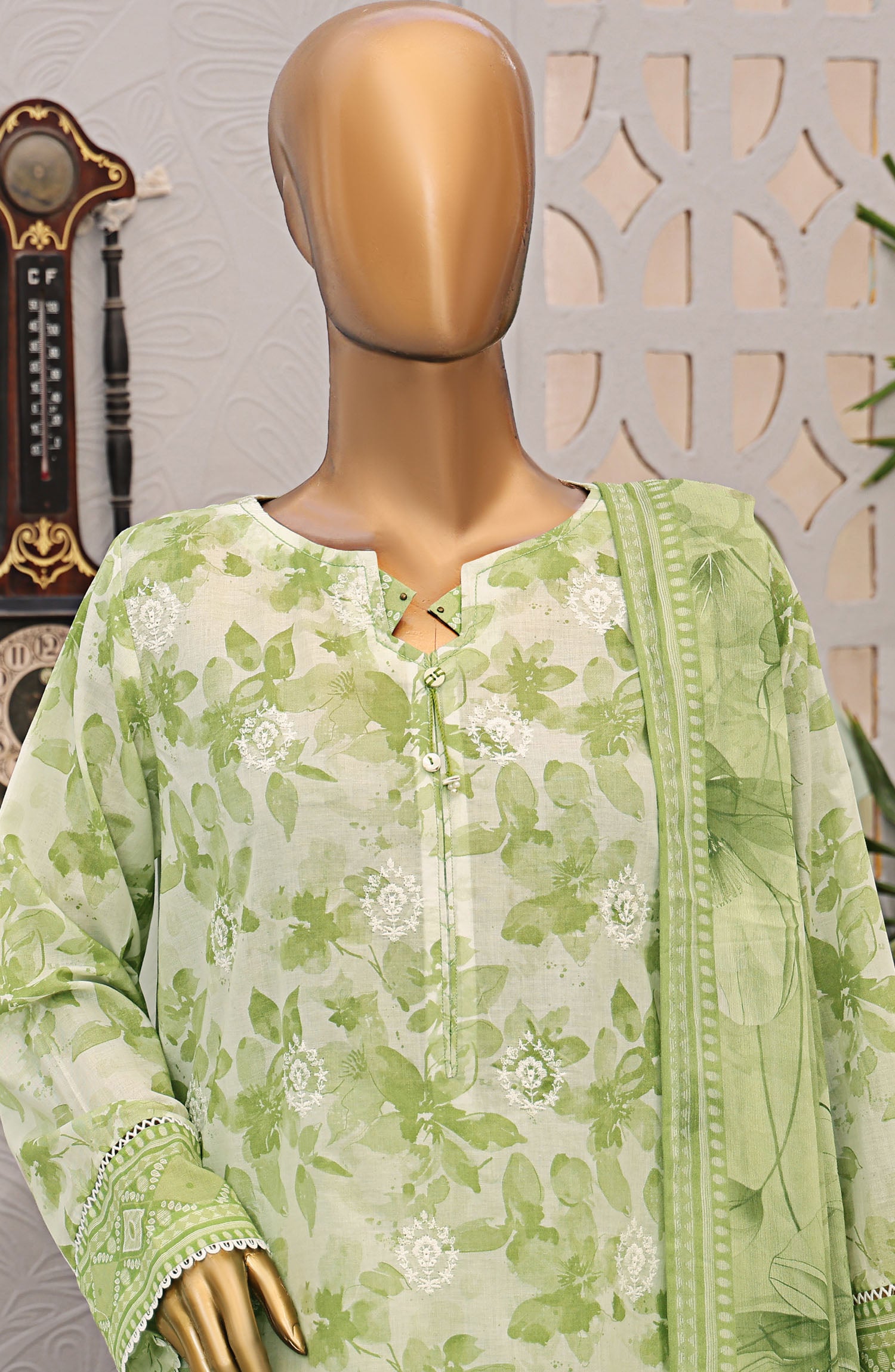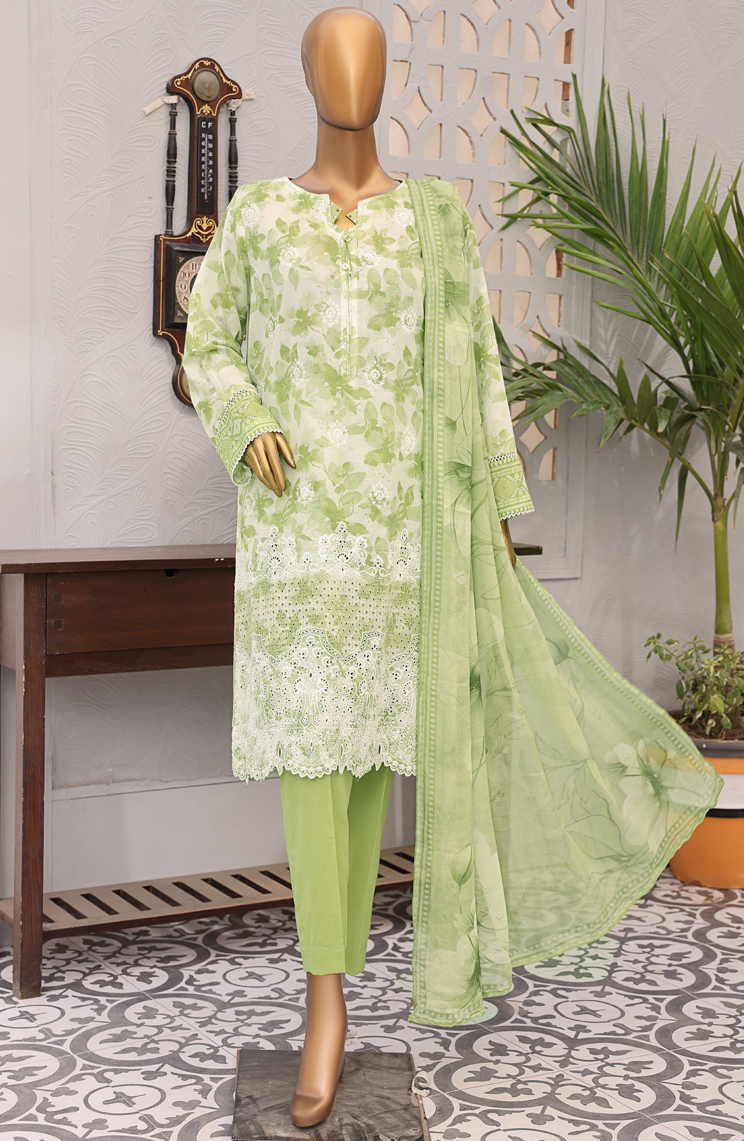 Home HZ Textile Embroidered Lawn Unstitched 3 Piece Suit - EF-1010 - HZ25UFE - Green - Eid Collection