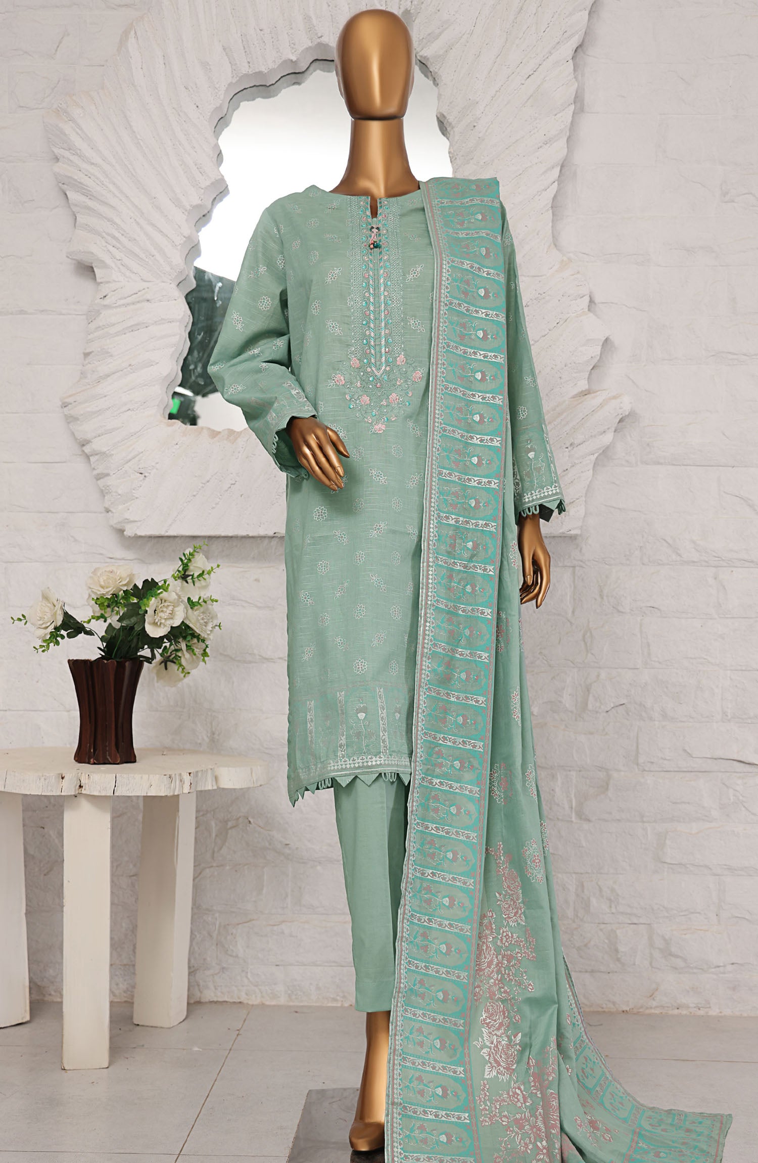 Premium Slub Dye Over Paste Printed Embroidered Lawn Shirt