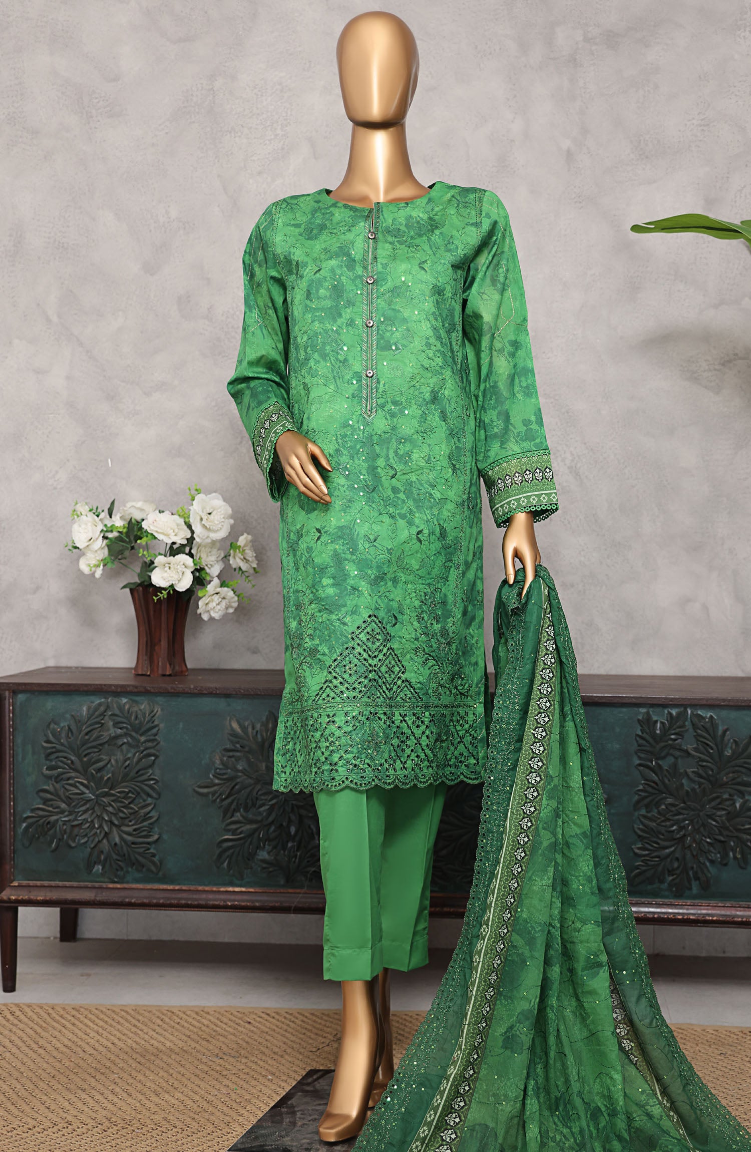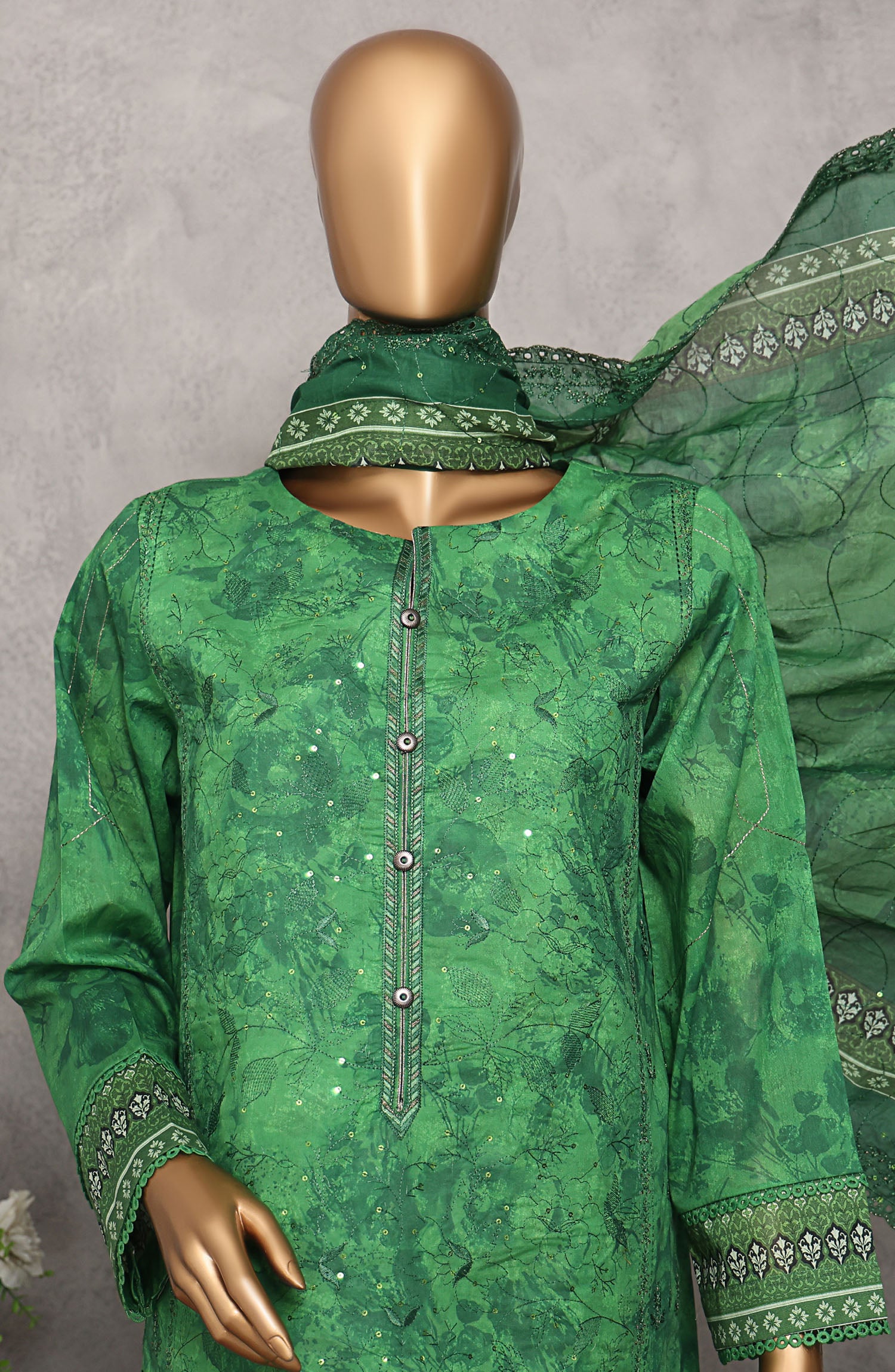 HZ Textile Embroidered Lawn Unstitched 3 Piece Suit - PCE-510 - HZ25PECL - Green - Summer Collection