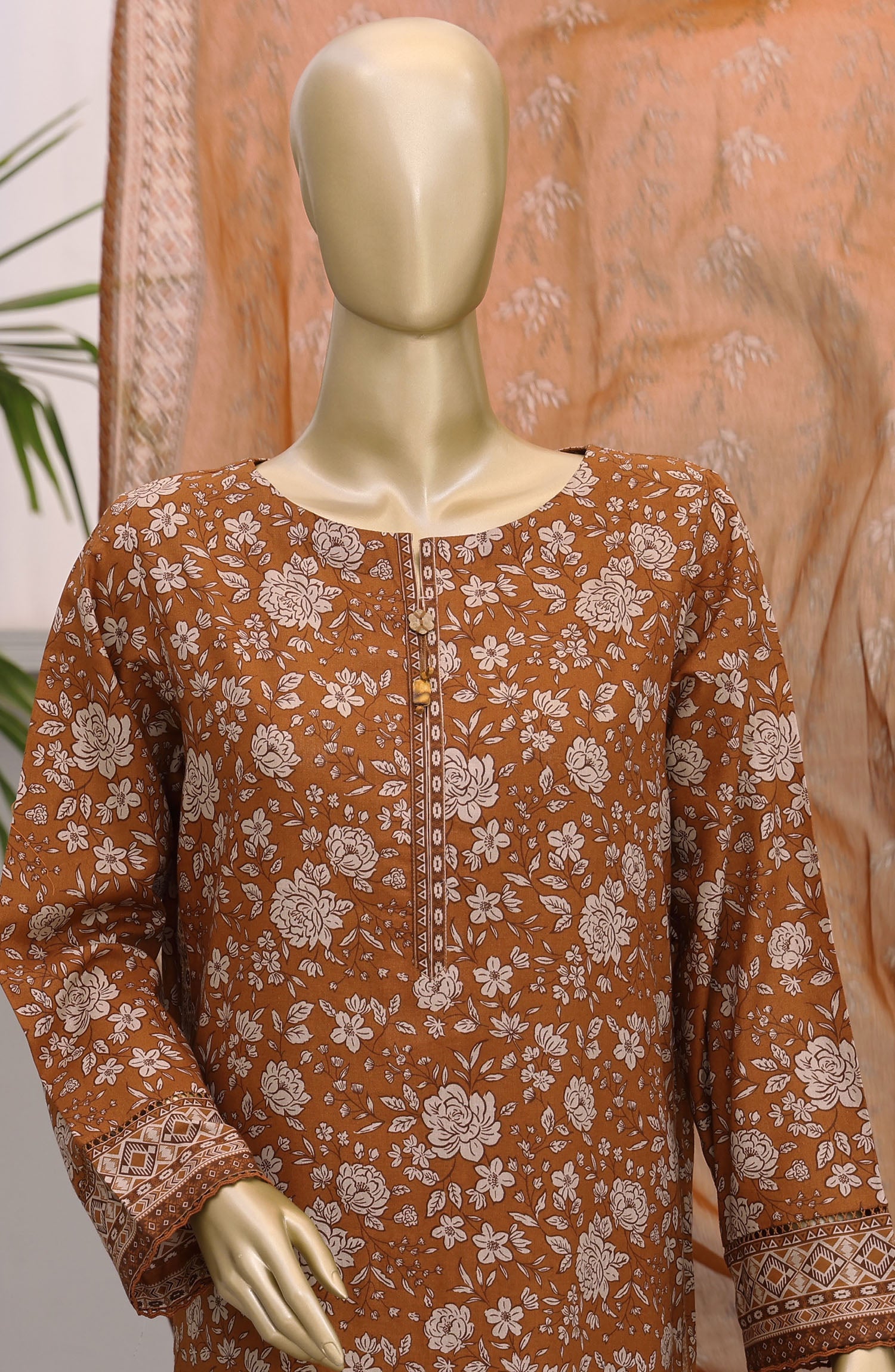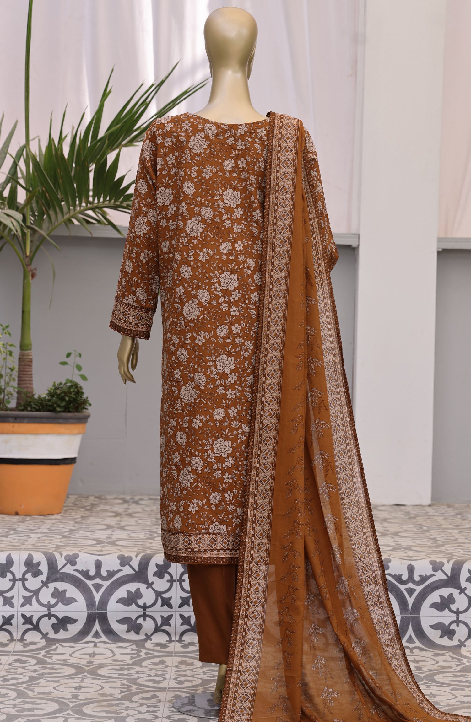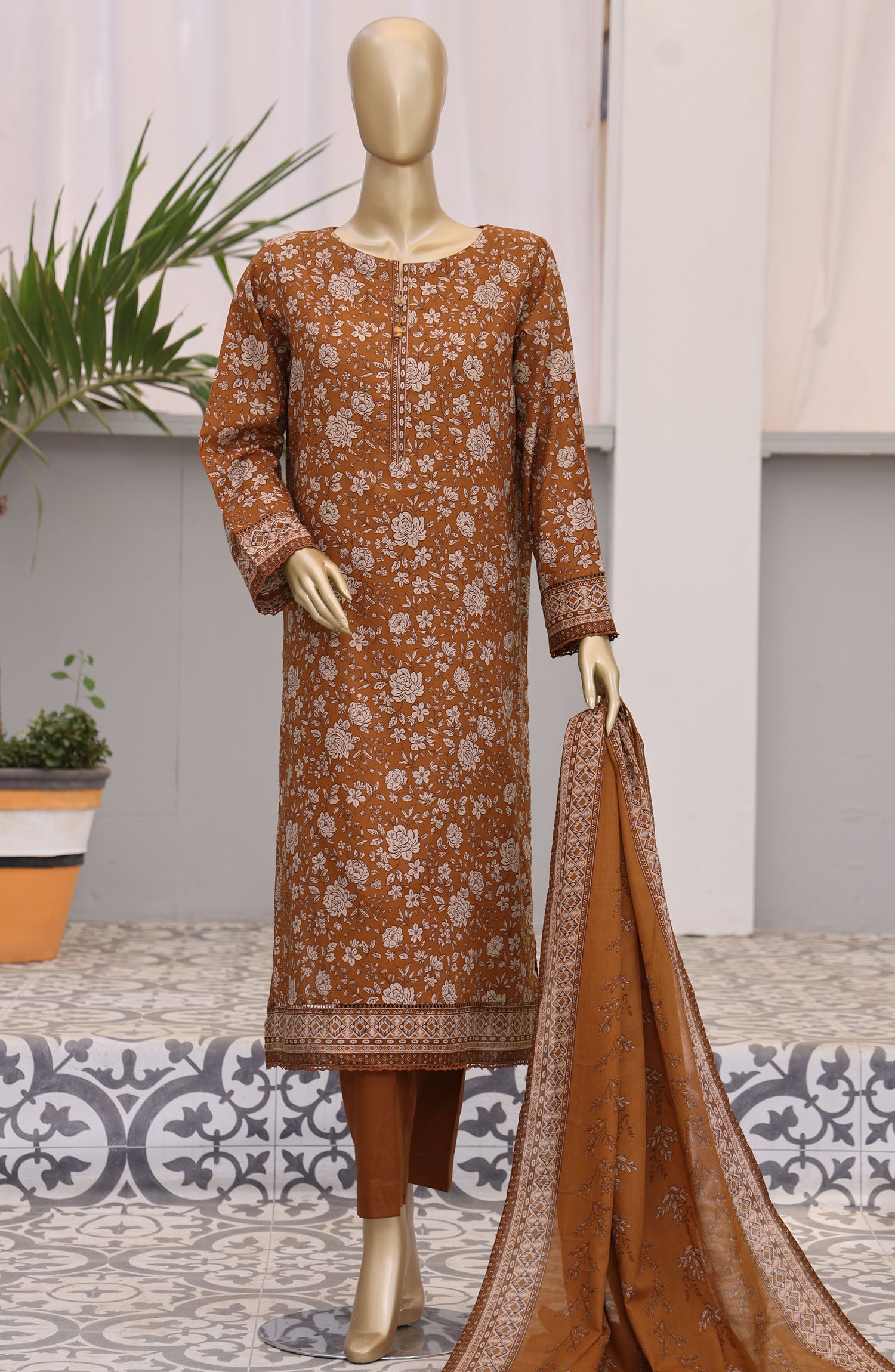 Home HZ Textile Embroidered Lawn Unstitched 3 Piece Suit - PDW-101B - HZ25UPDW - Brown - Summer Collection