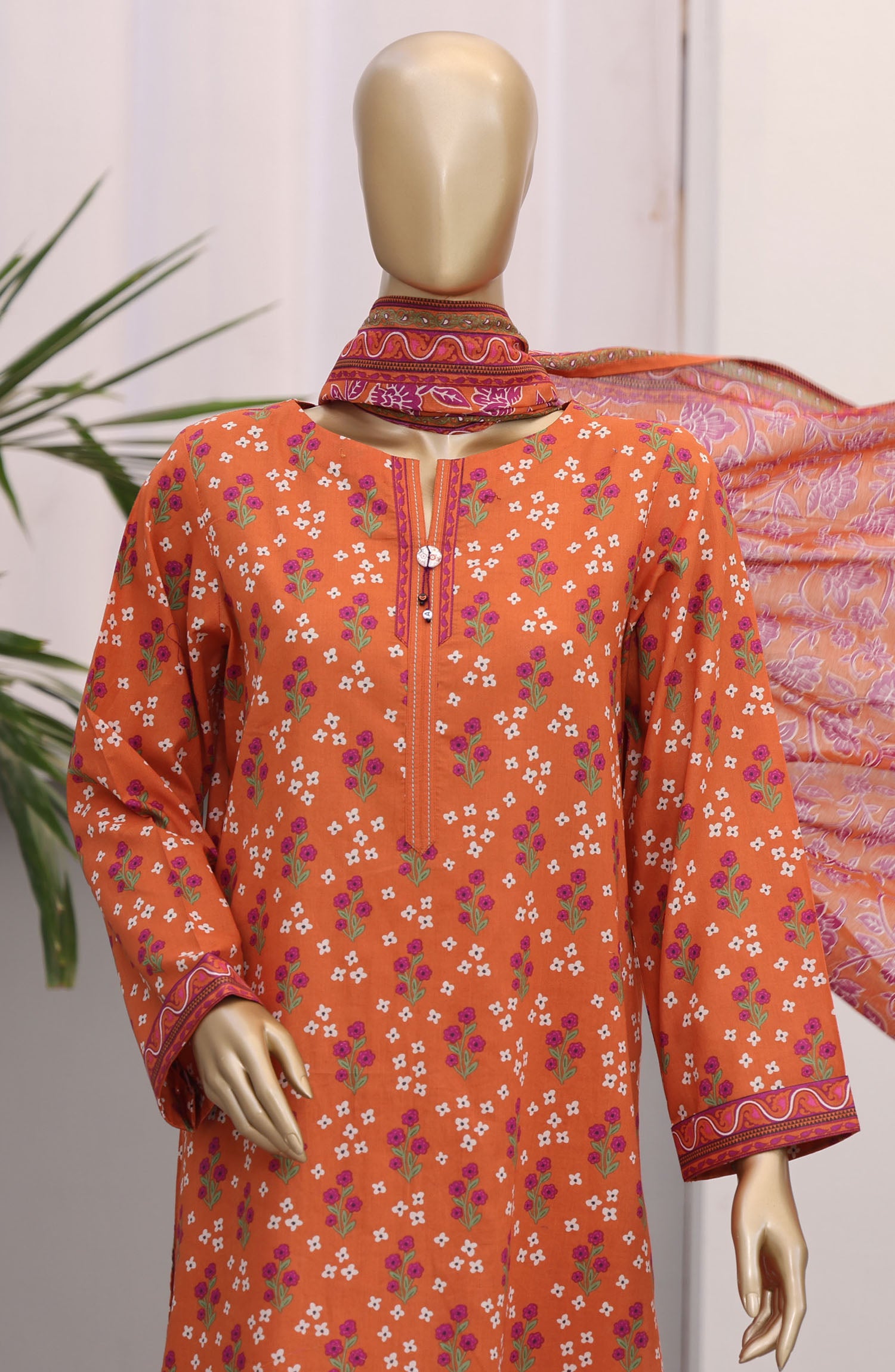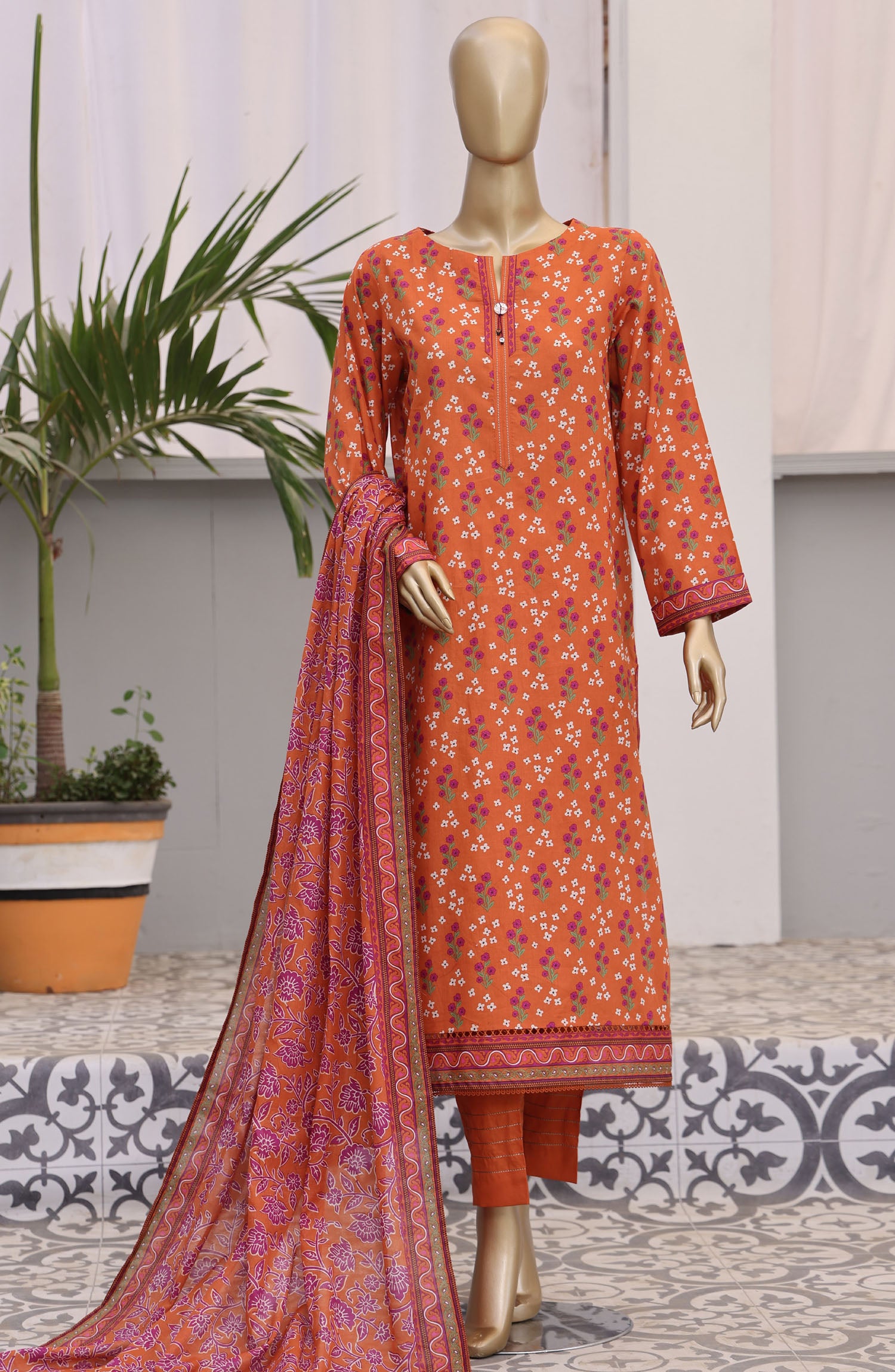 Home HZ Textile Embroidered Lawn Unstitched 3 Piece Suit - PDW-103A - HZ25UPDW - Orange - Summer Collection