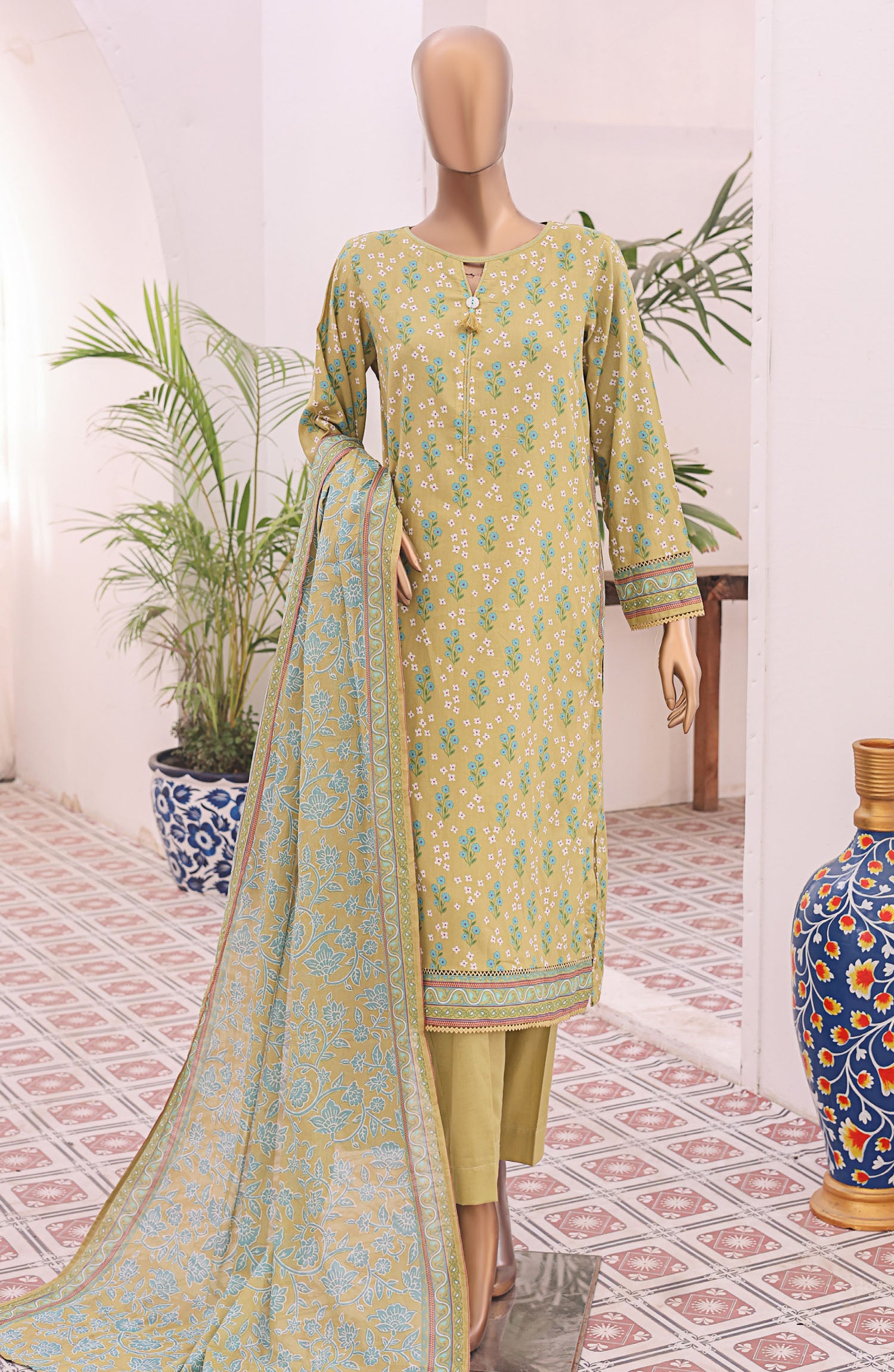 Home HZ Textile Embroidered Lawn Unstitched 3 Piece Suit - PDW-103B - HZ25UPDW - Green - Summer Collection