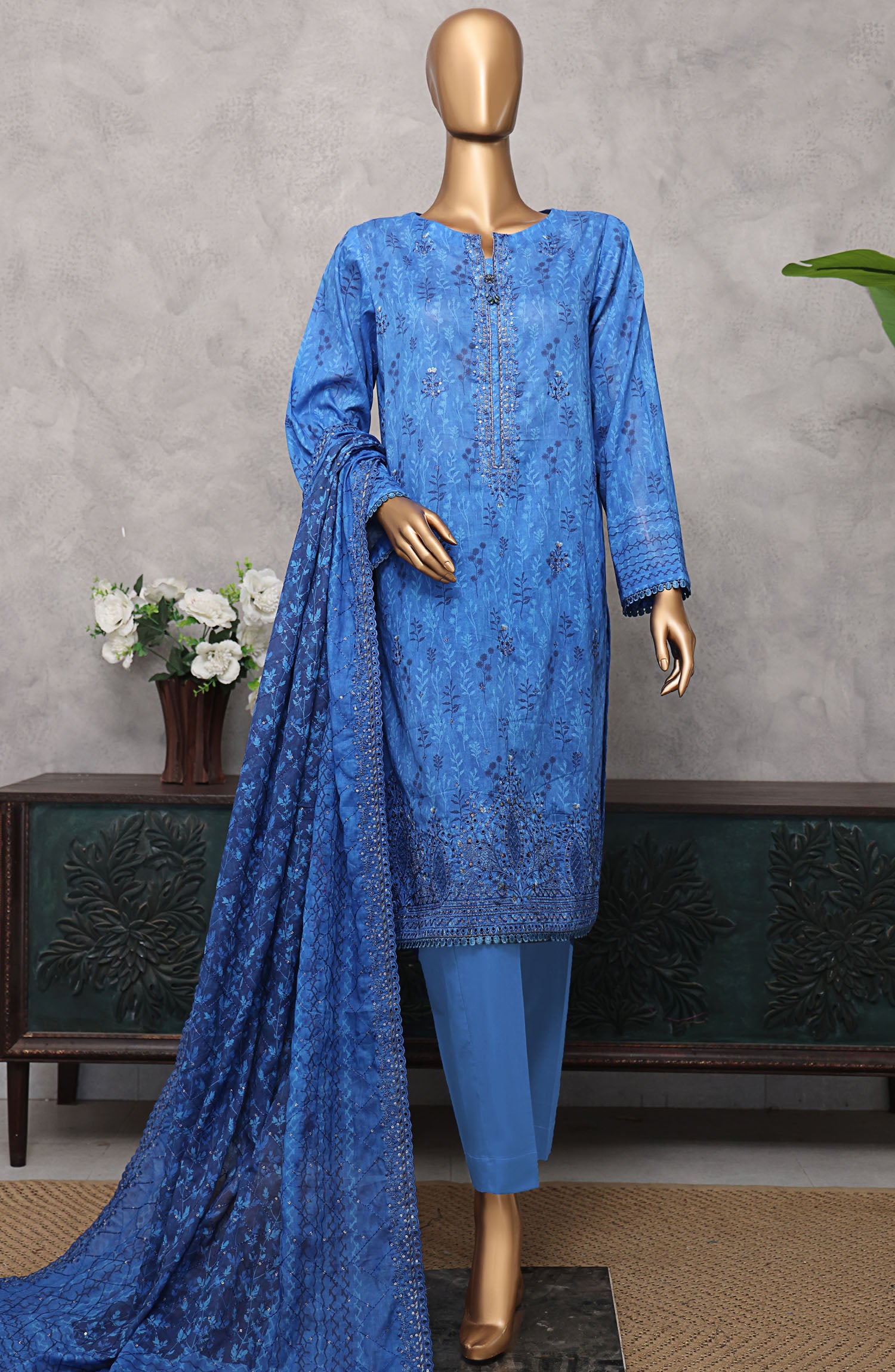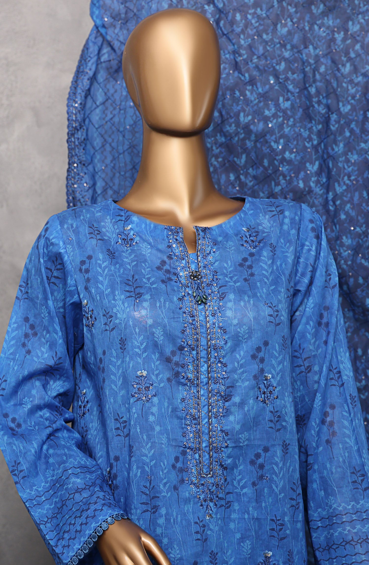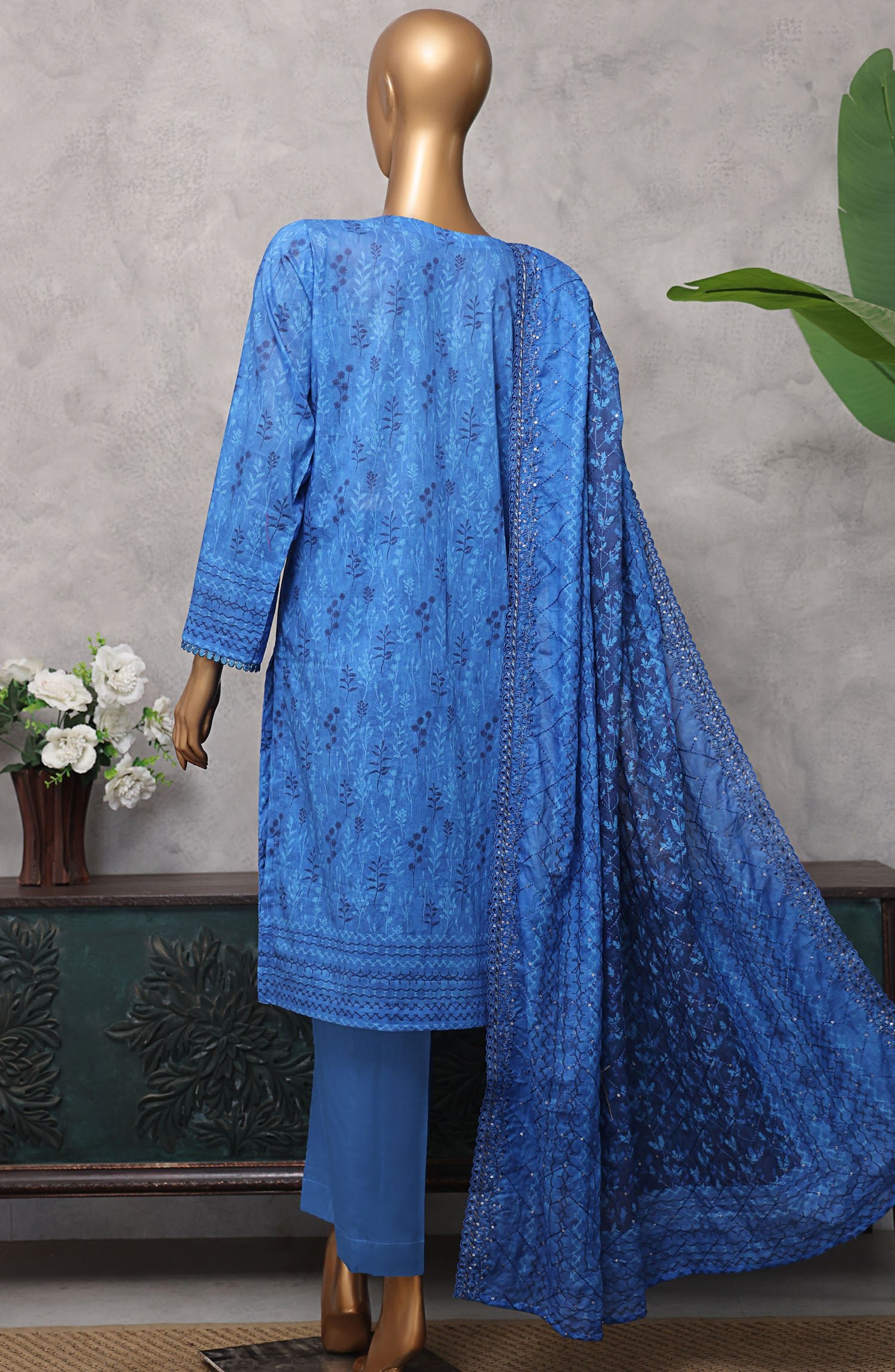 HZ Textile Embroidered Lawn Unstitched 3 Piece Suit - PEC-507 - HZ25PECV3 - Blue - Summer Collection