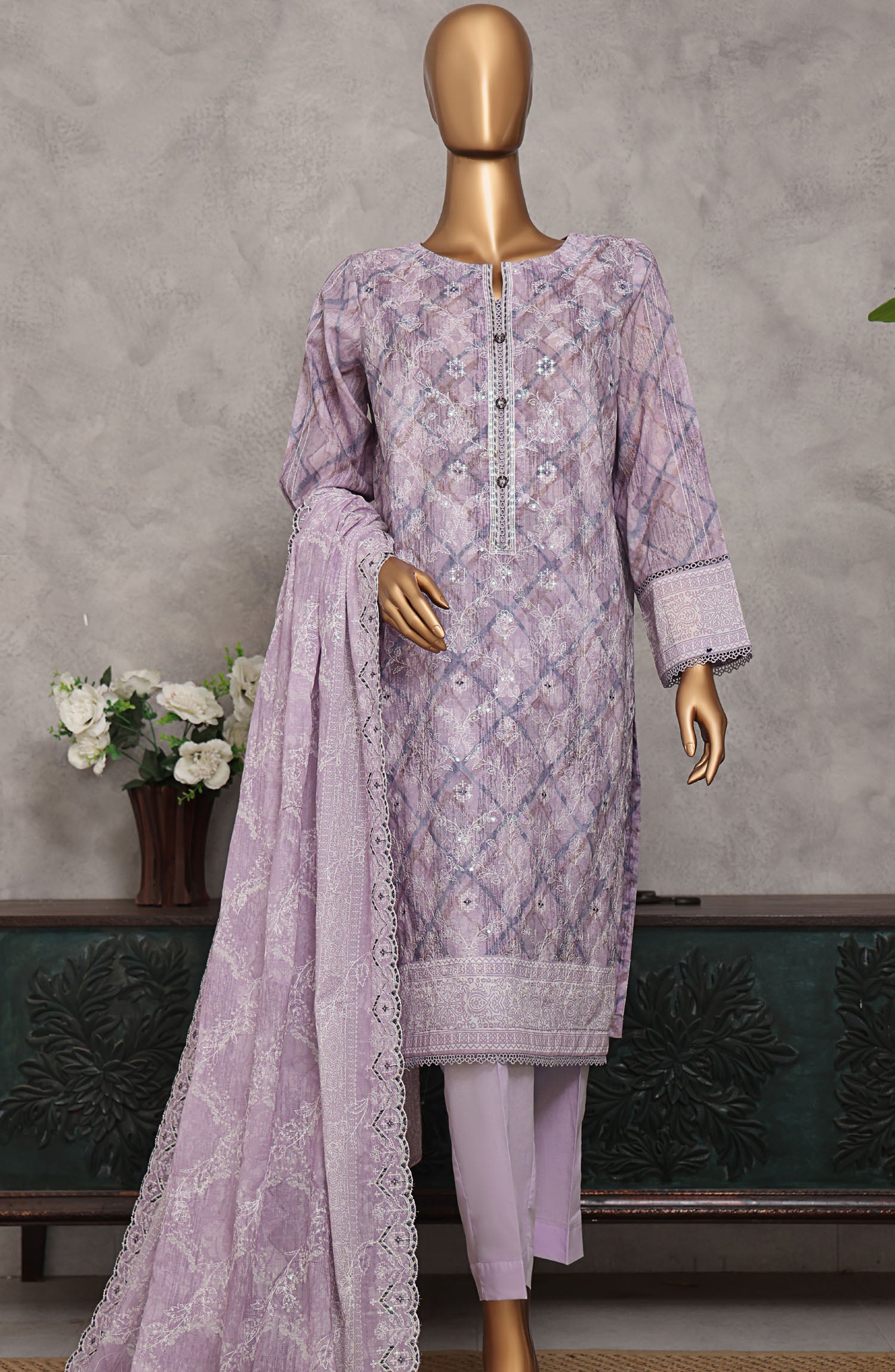 Home HZ Textile Embroidered Lawn Unstitched 3 Piece Suit - PEC-939 - HZ25PECV3 - Purple - Summer Collection