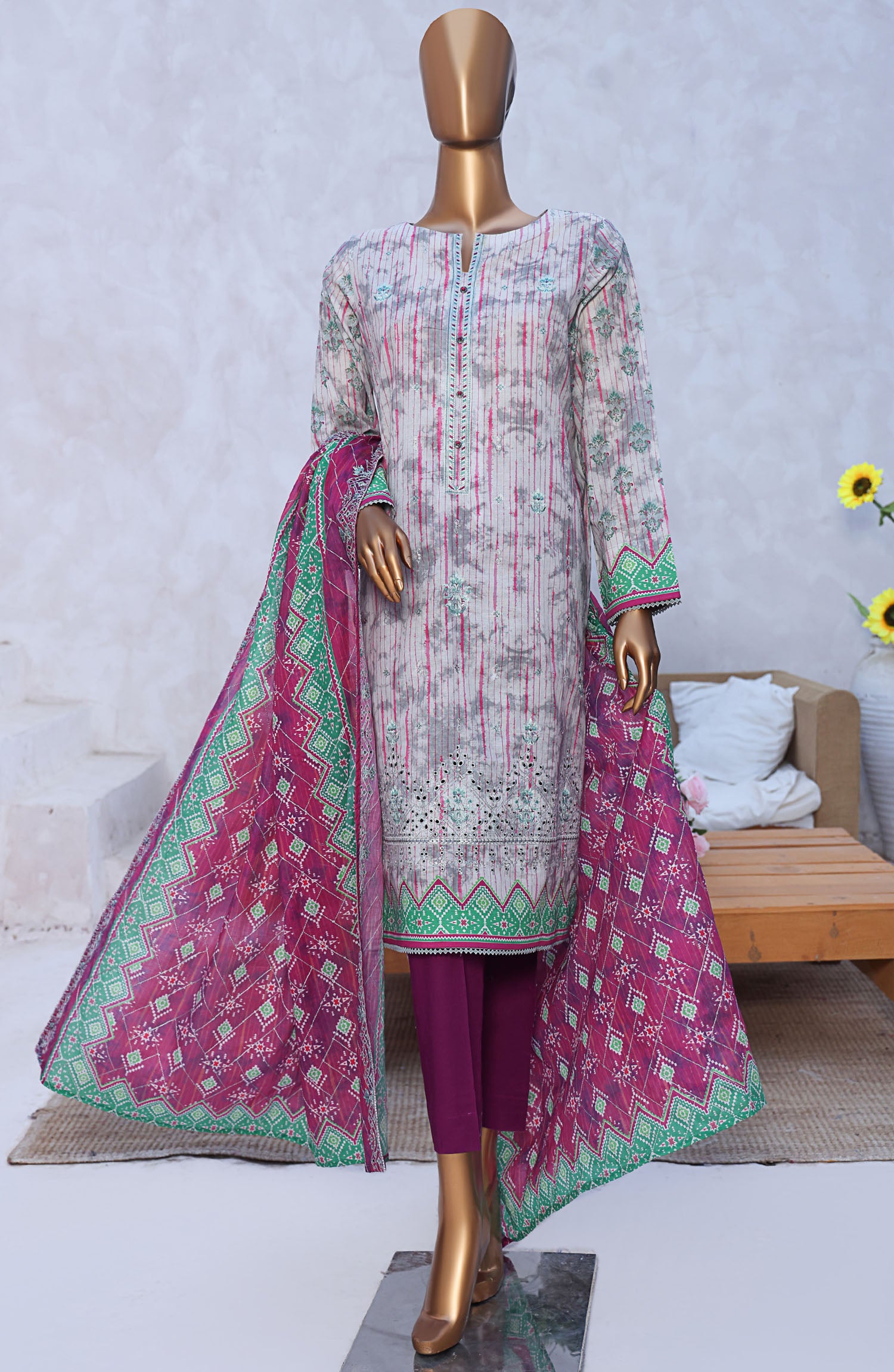Home HZ Textile Embroidered Lawn Unstitched 3 Piece Suit - PEC-984 - HZ25PECV3 - Magenta - Summer Collection
