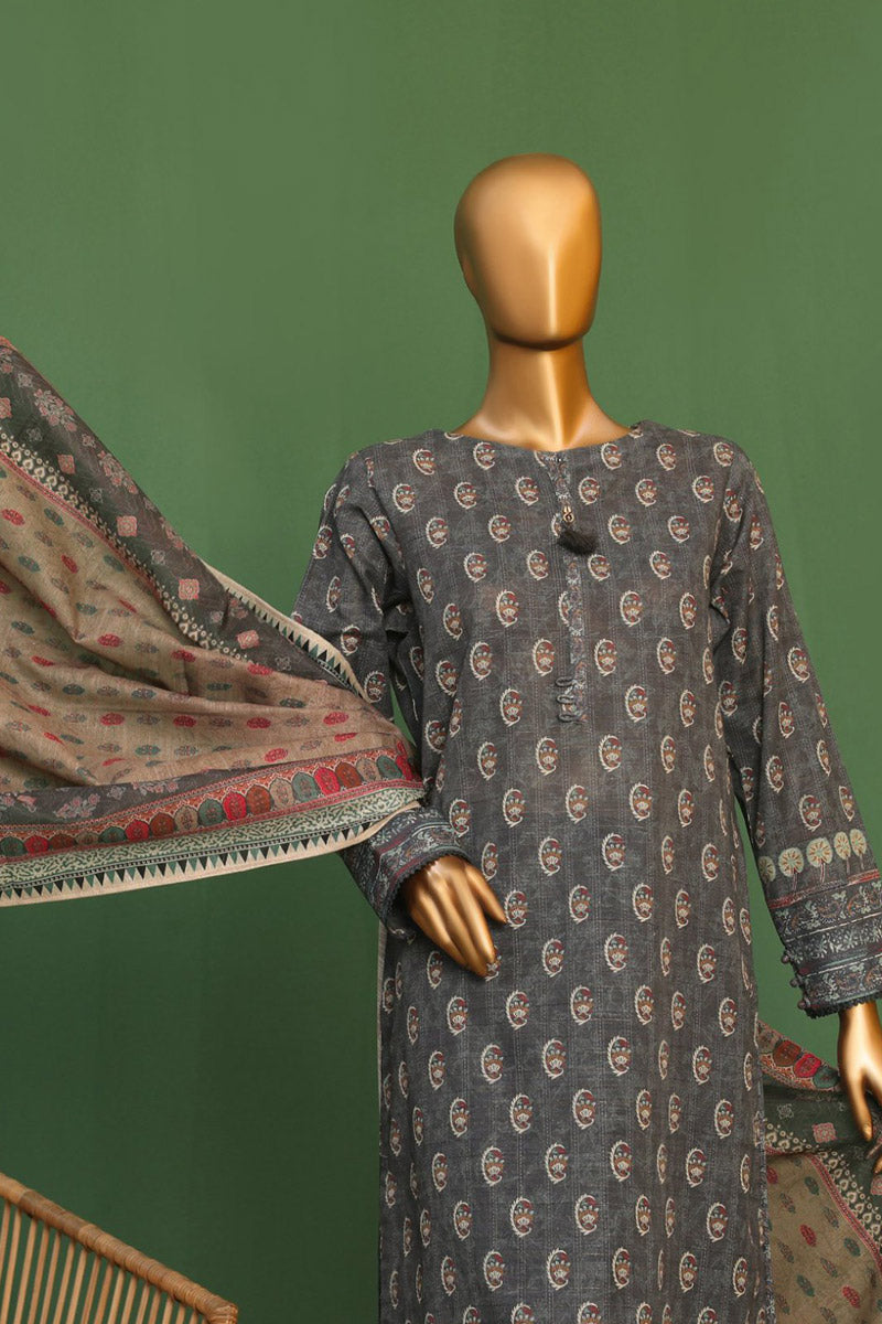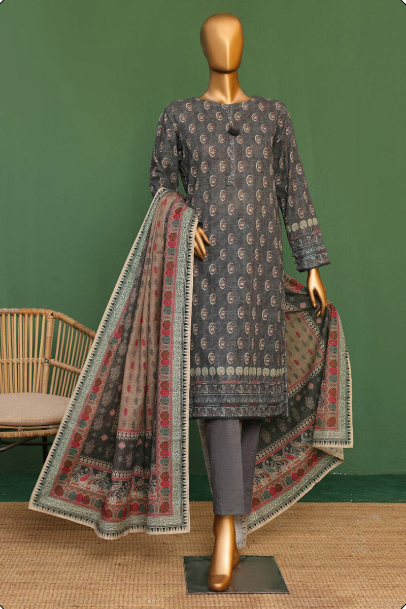 HZ Textile Khaddar Zarri Printed 3 piece Unstitched Collection has been styled in the image for photography and illustrative purposes.
