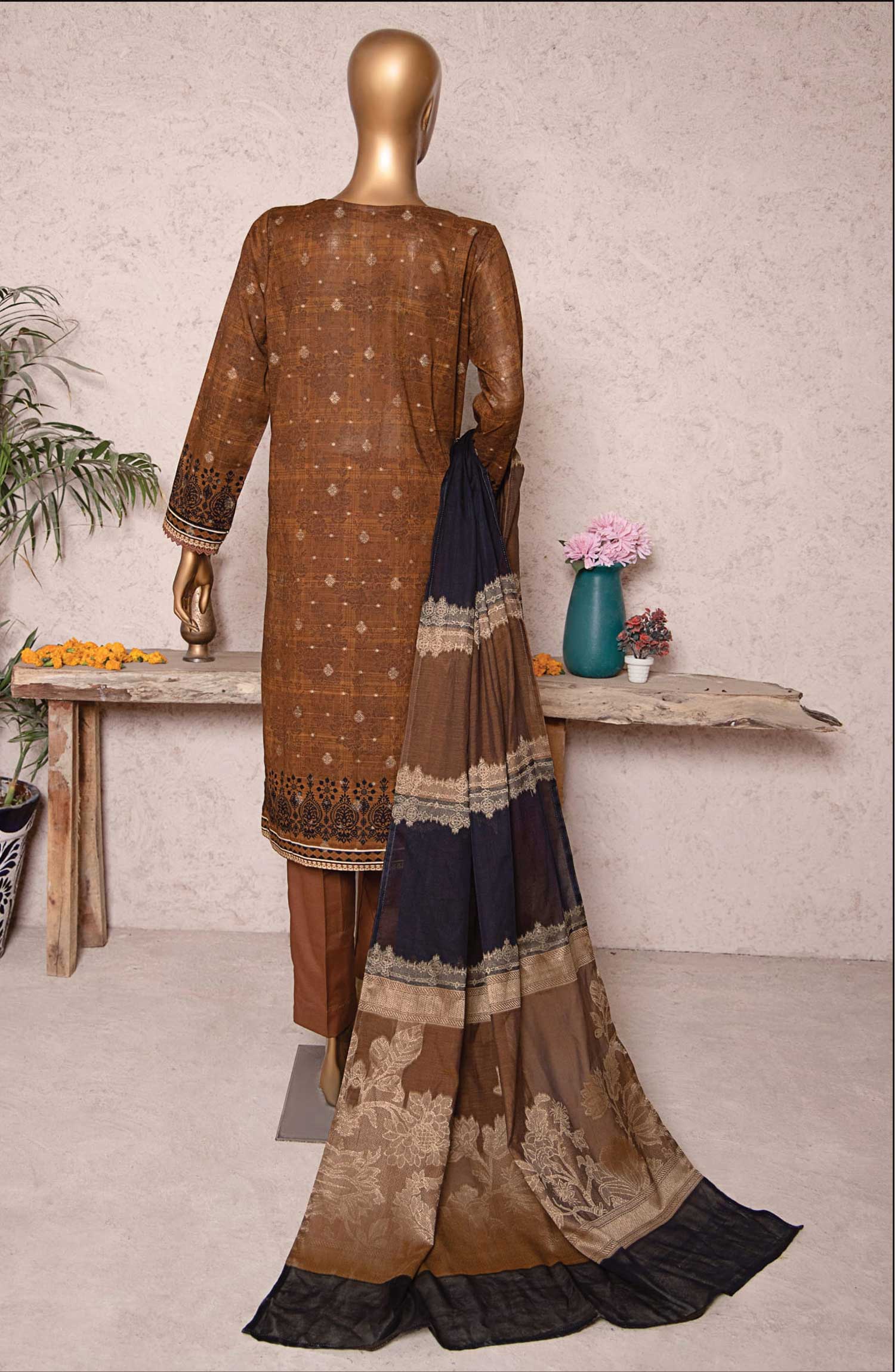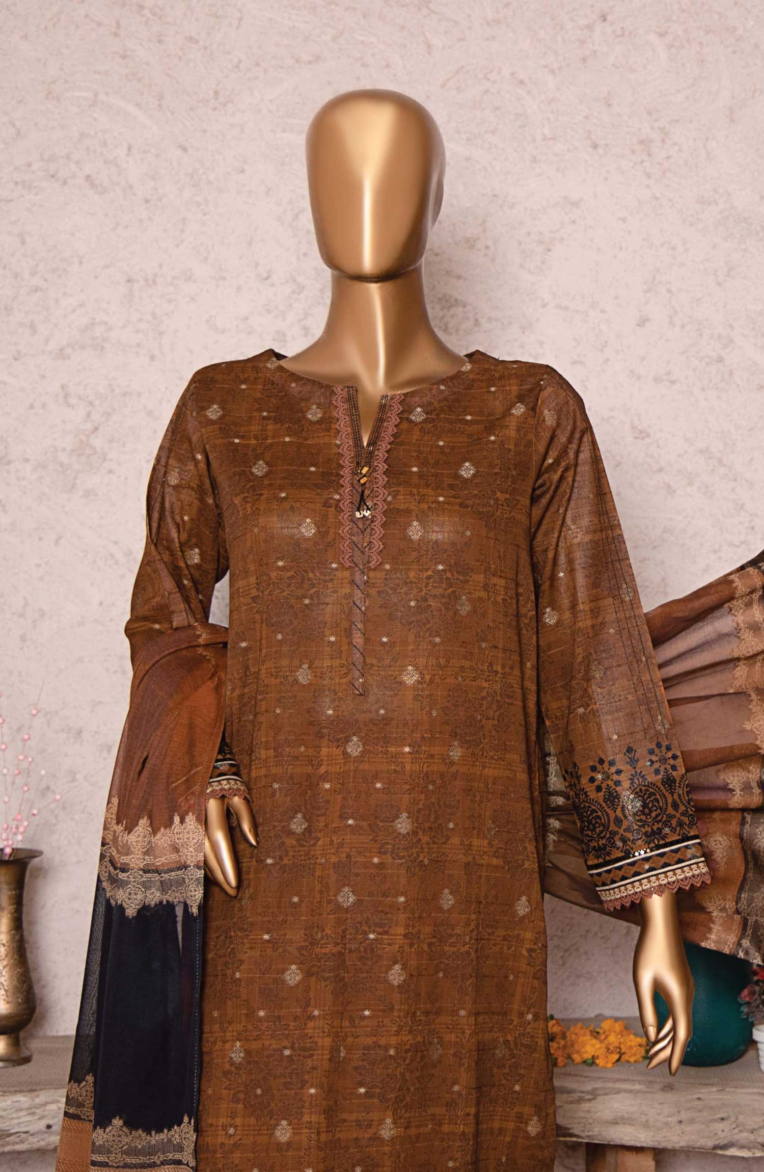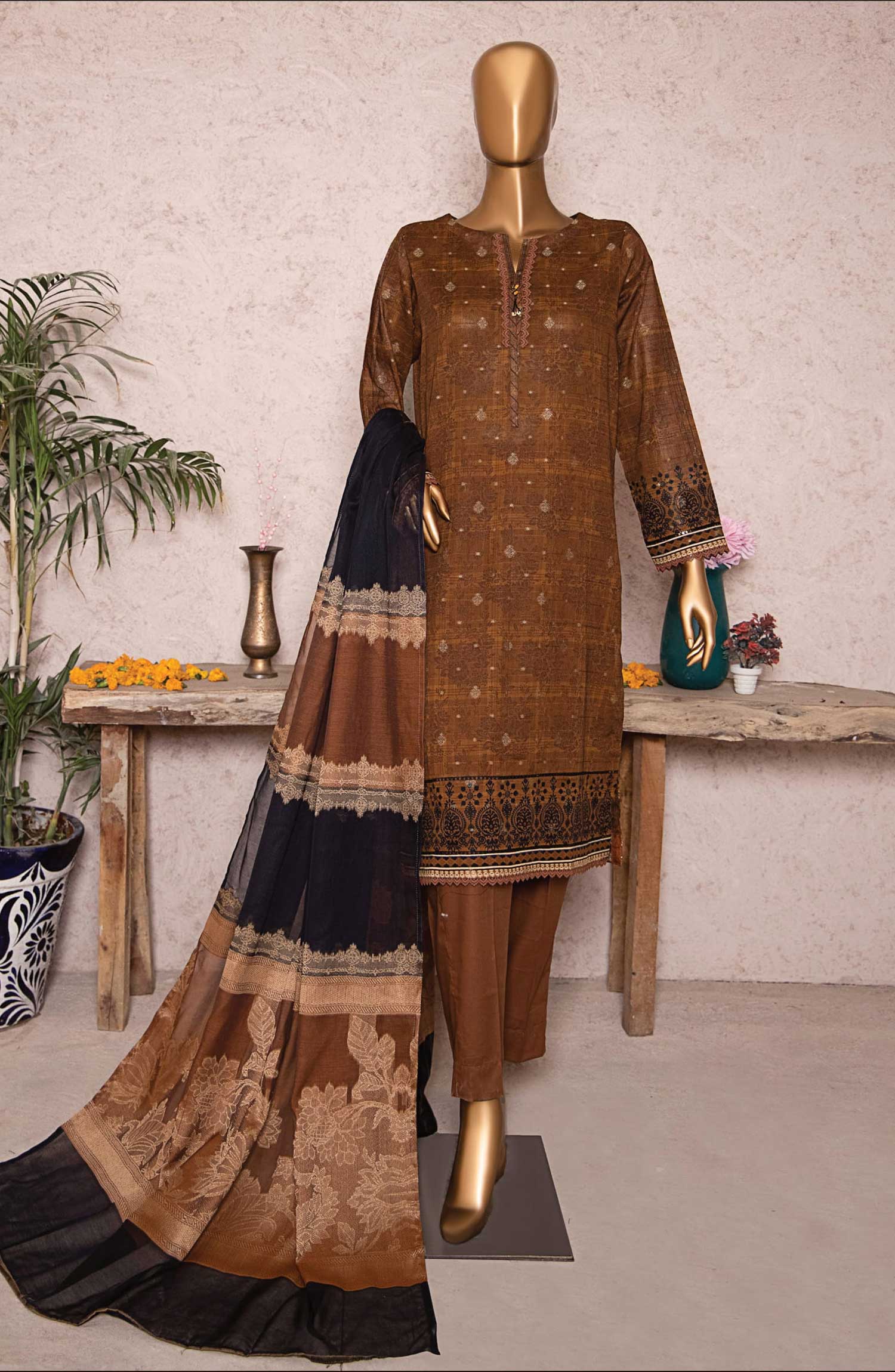 Home HZ Textile Printed Jacquard Unstitched 3 Piece - TJS-1204 - HZ25TJ - Rust Brown - Winter Collection