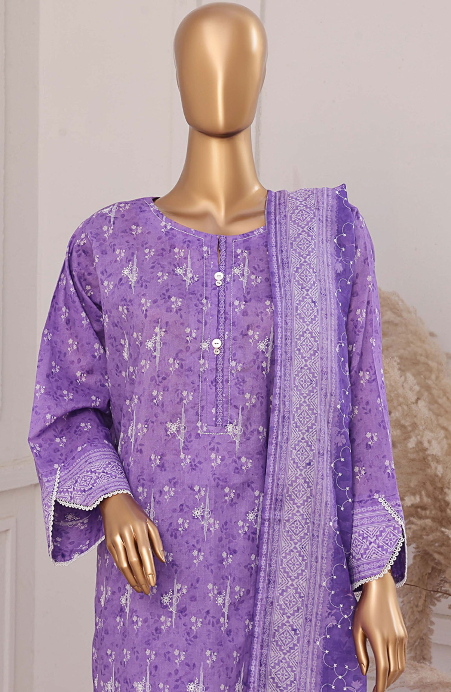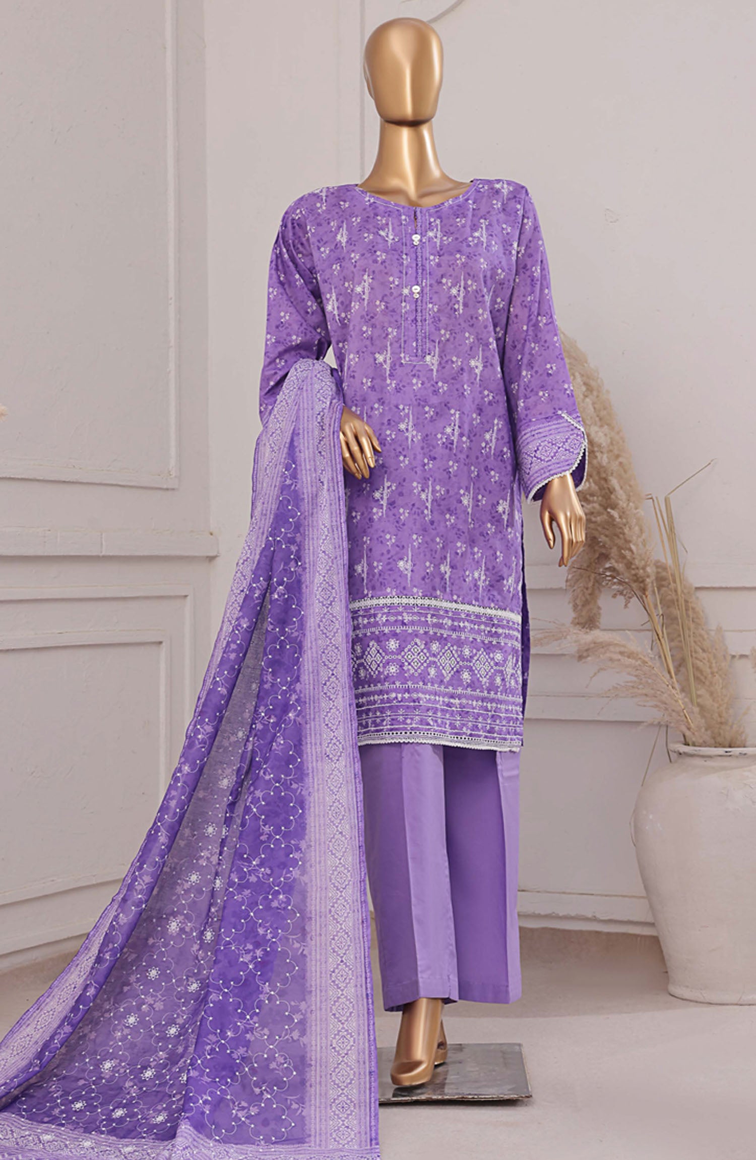Home HZ Textile Printed Lawn Stitched 3 Piece Suit - PEC-202 Faded Lavender - HZ25PTKV2 - Purple - Summer Collection