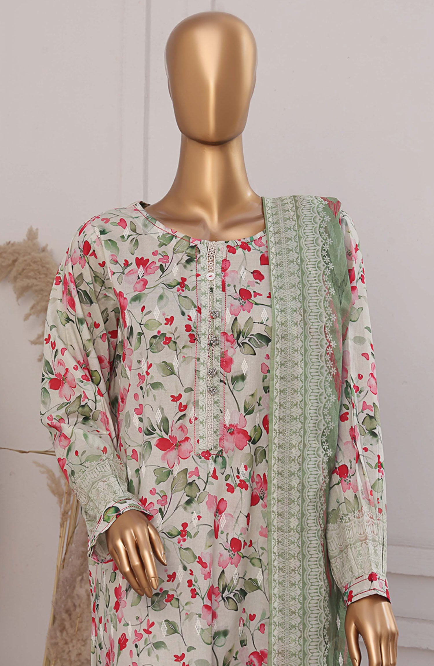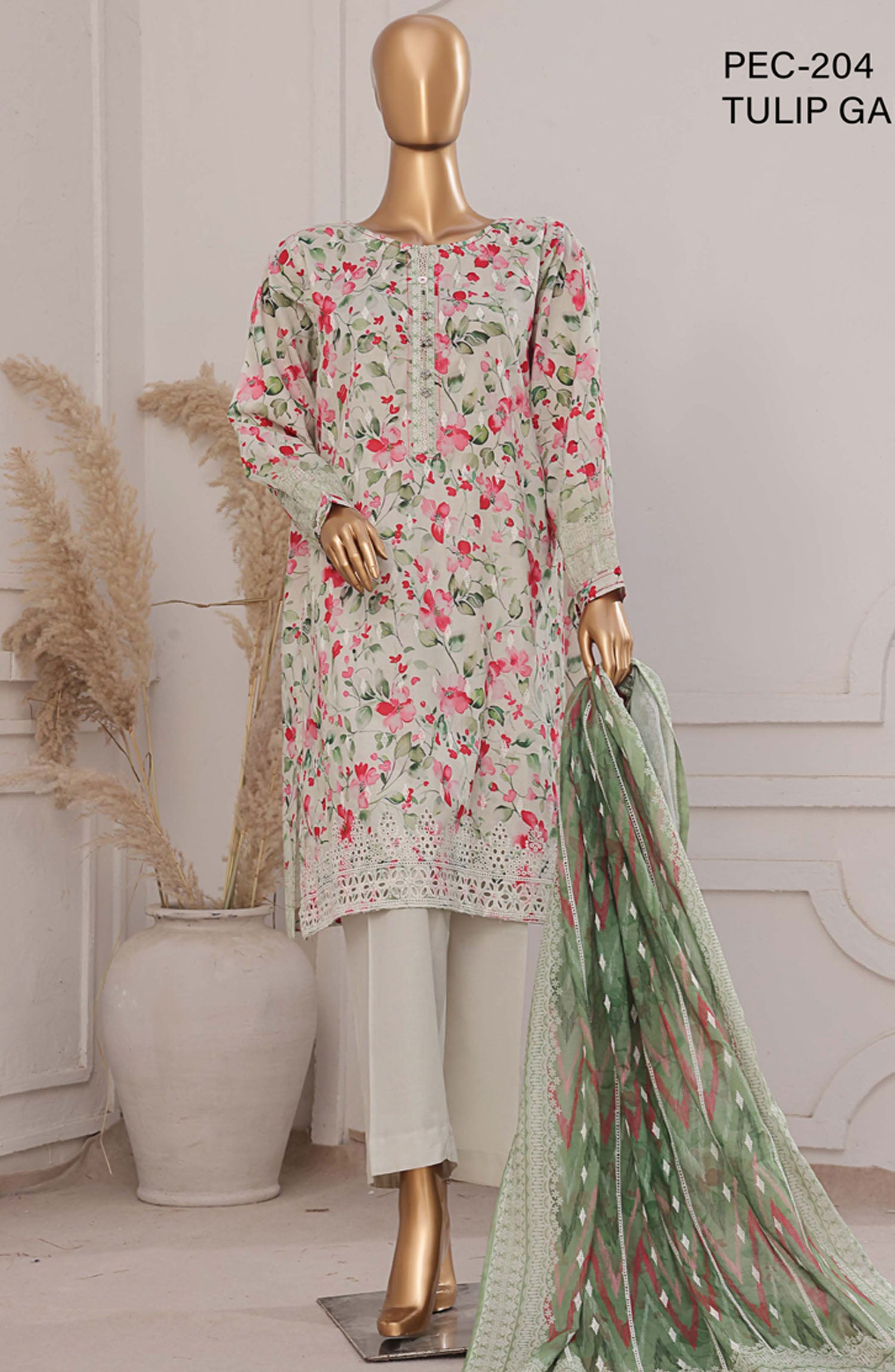 Home HZ Textile Printed Lawn Stitched 3 Piece Suit - PEC-204 Tulip Garden - HZ25PTKV2 - Grey - Summer Collection