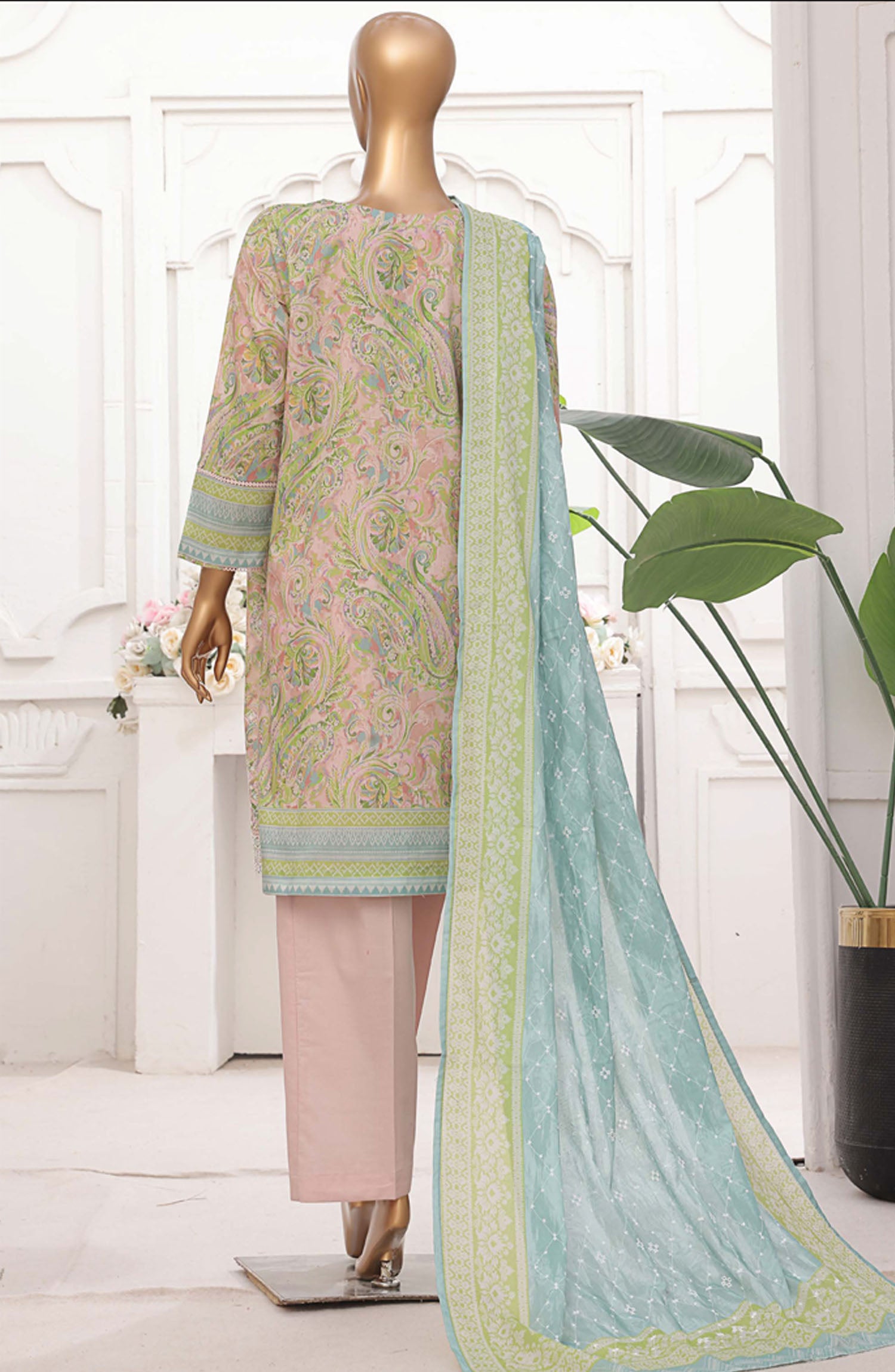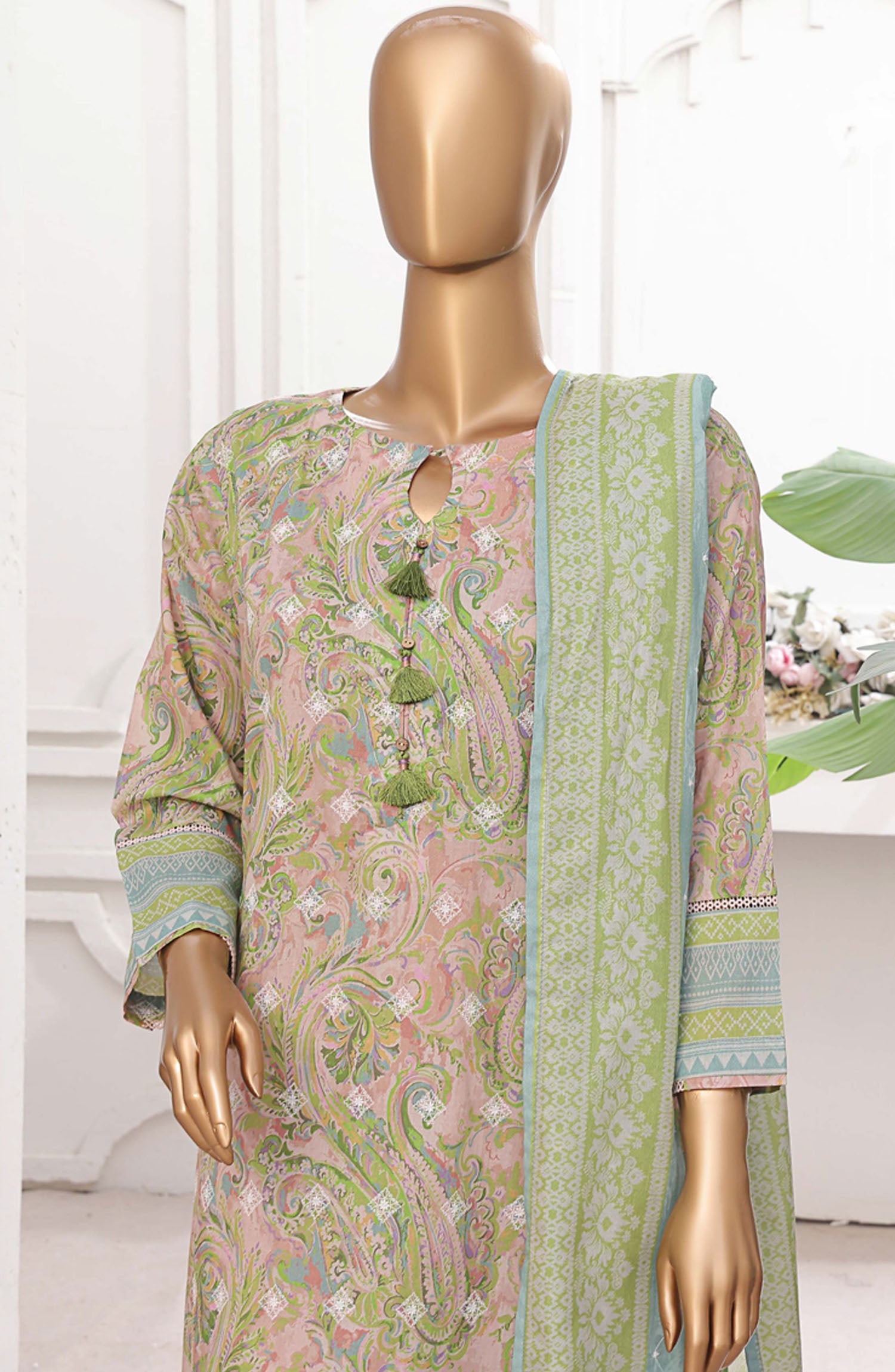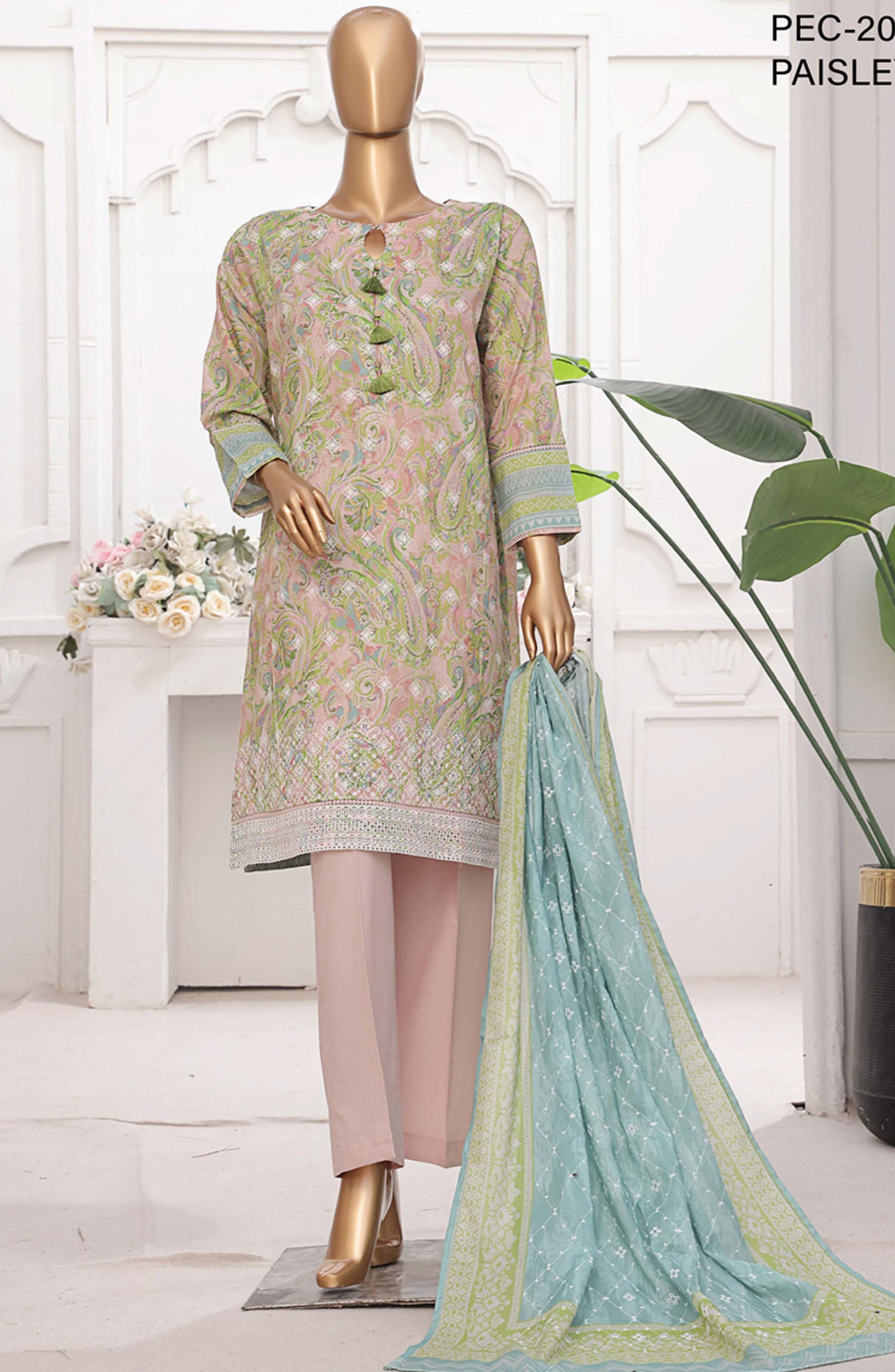 Home HZ Textile Printed Lawn Stitched 3 Piece Suit - PEC-206 Paisley Art - HZ25PTKV2 - Pink - Summer Collection