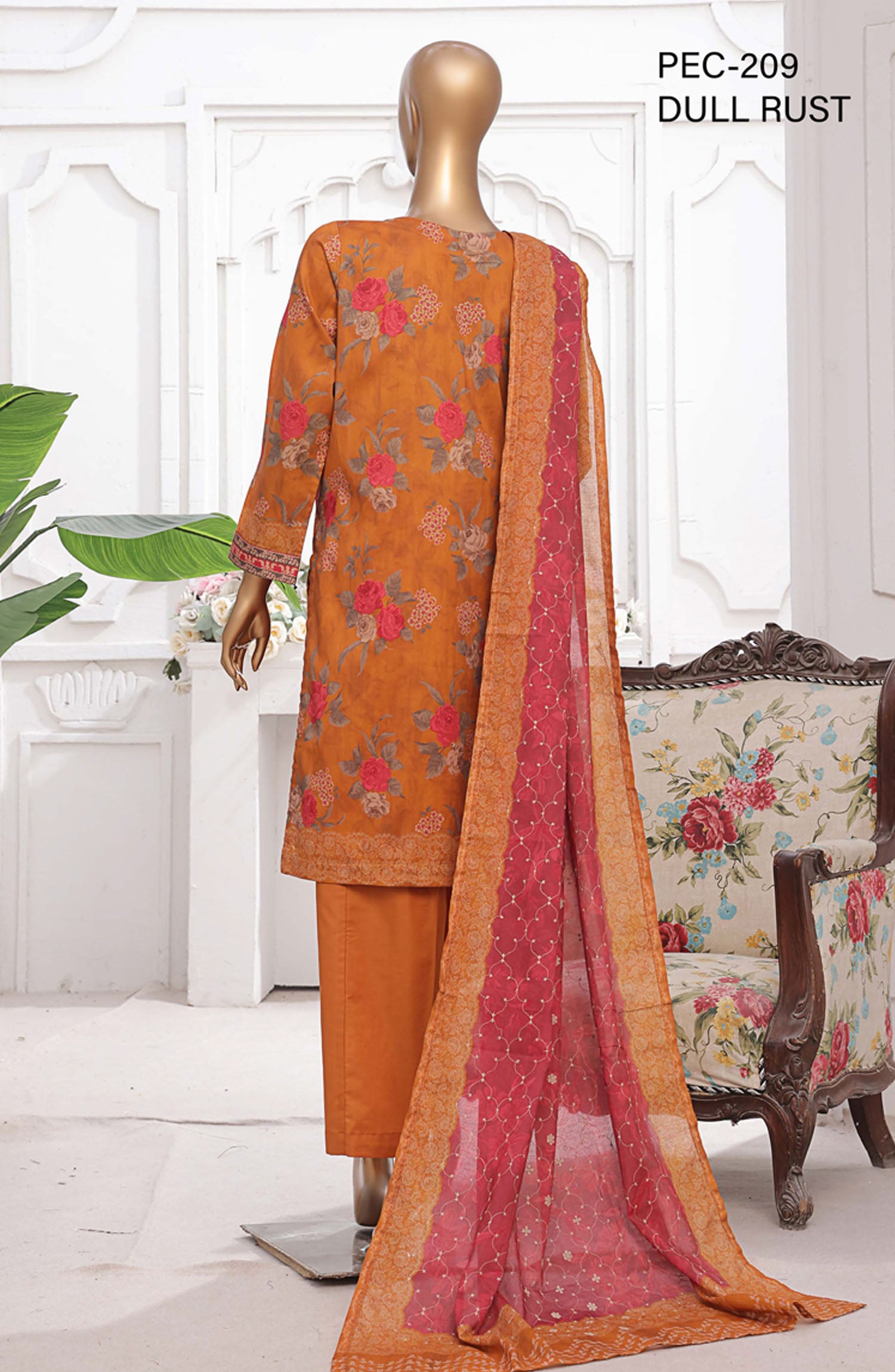 HZ Textile Printed Lawn Stitched 3 Piece Suit - PEC-209 Dull Rust - HZ25PTKV2 - Orange - Summer Collection