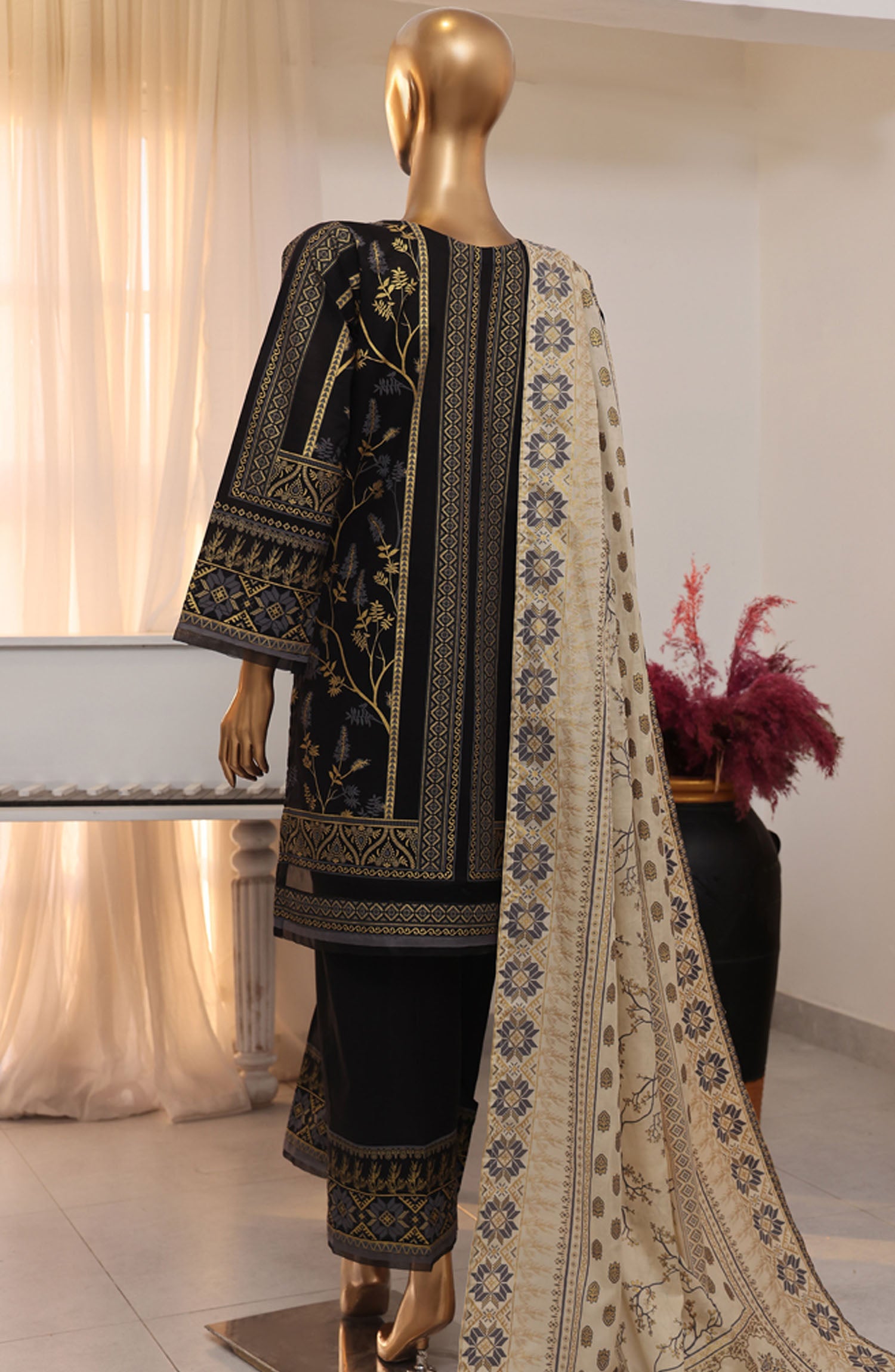 Modest Embroidered Khaddar Stitched 3 Piece Suit - 9990-Blk - MOD25WNT - Black - Winter Collection