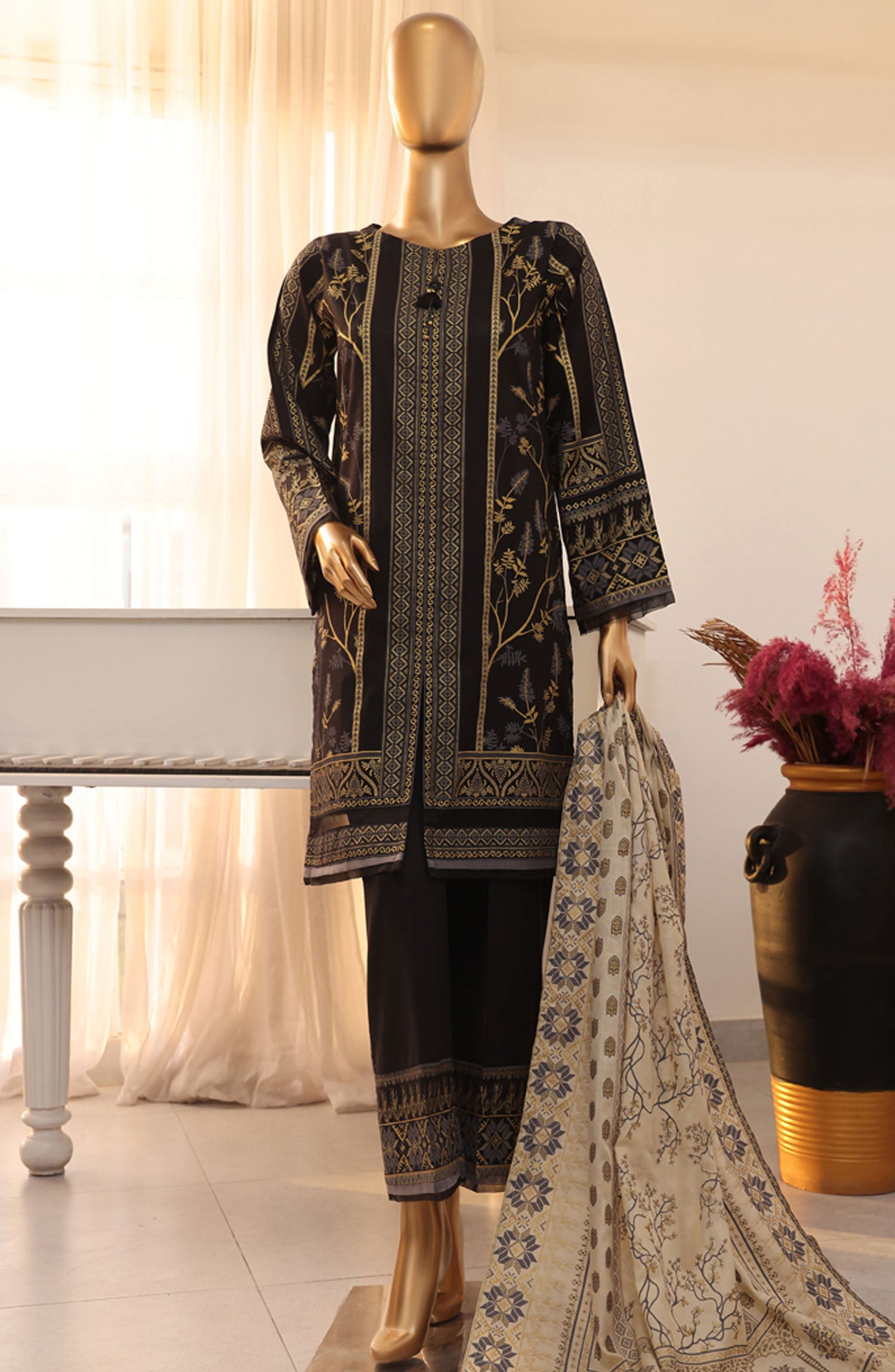 HZ Textile Printed Lawn Stitched 3 Piece Suit - SSP-3P-024 Black - HZ25FHGE - Black - Eid Collection