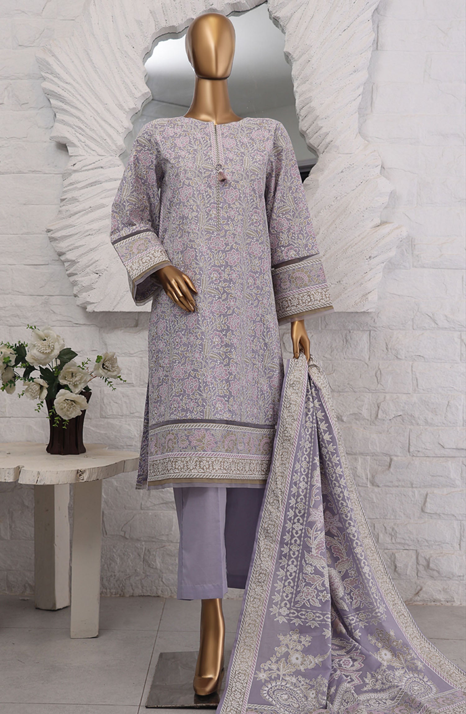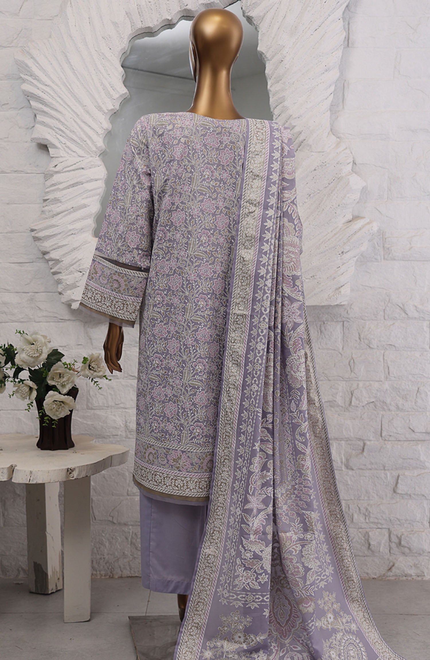Home HZ Textile Printed Lawn Stitched 3 Piece Suit - SSP-3P-025 Lavender - HZ25FHGE - Purple - Eid Collection