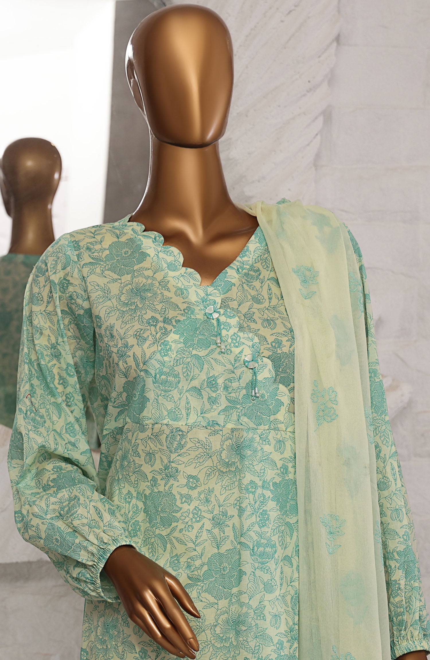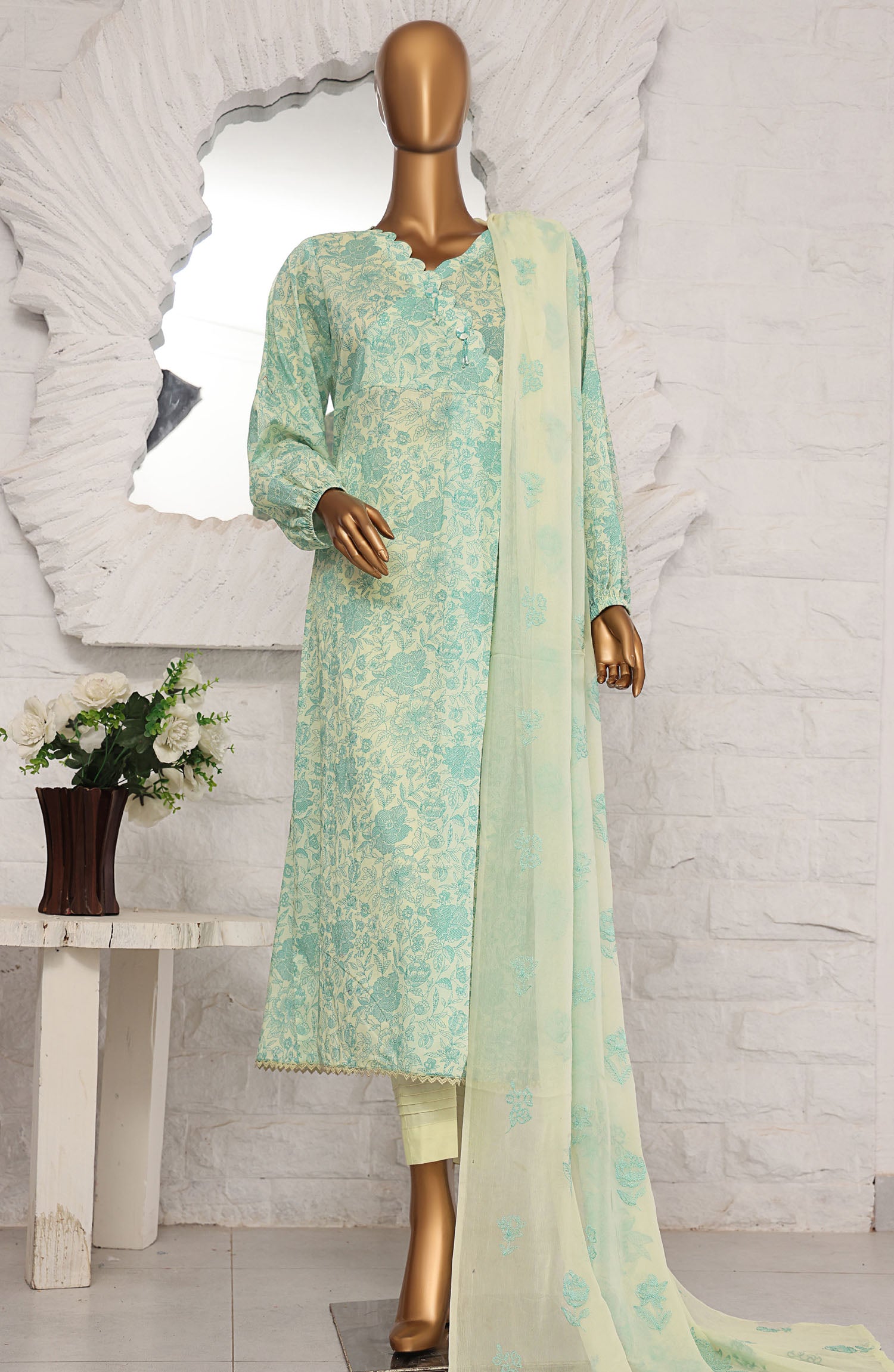 HZ Textile Printed Lawn Unstitched 3 Piece Suit - MBE-1021 - HZ25MEBE - Green - Summer Collection