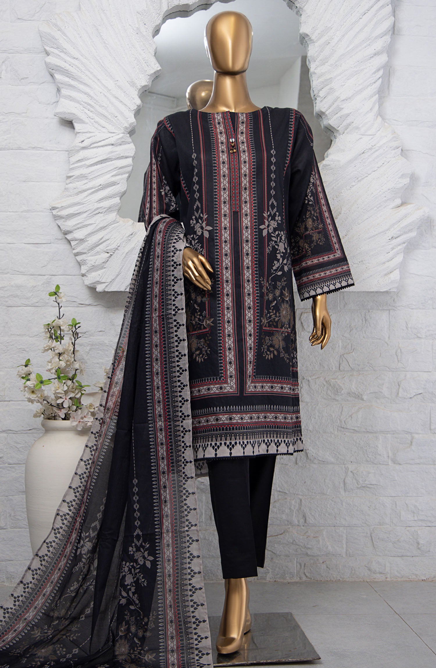 Home HZ Textile Printed Lawn Unstitched 3 Piece Suit - PPC-208 - HZ25PDPL - Black - Summer Collection