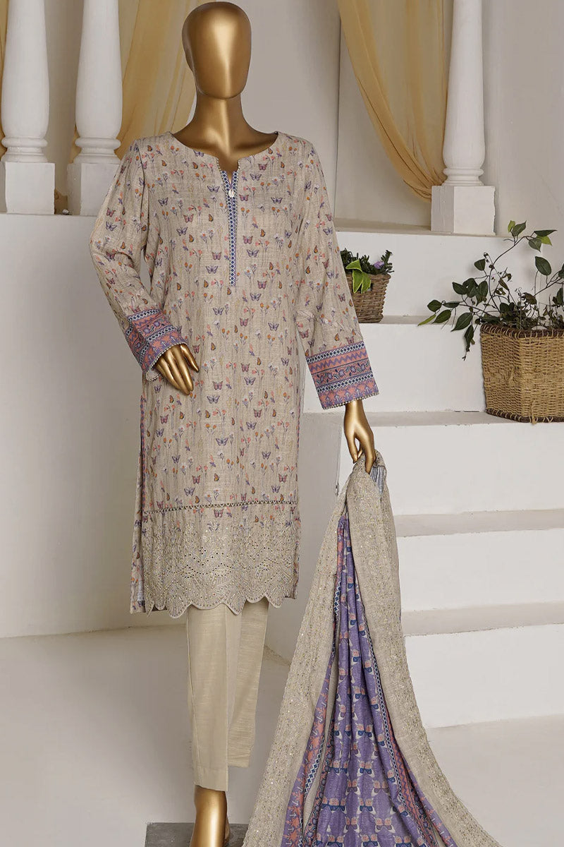 HZ Textiles Khaddar Embroidered Unstitched Winter Collection has been styled in the image for photography and illustrative purposes.