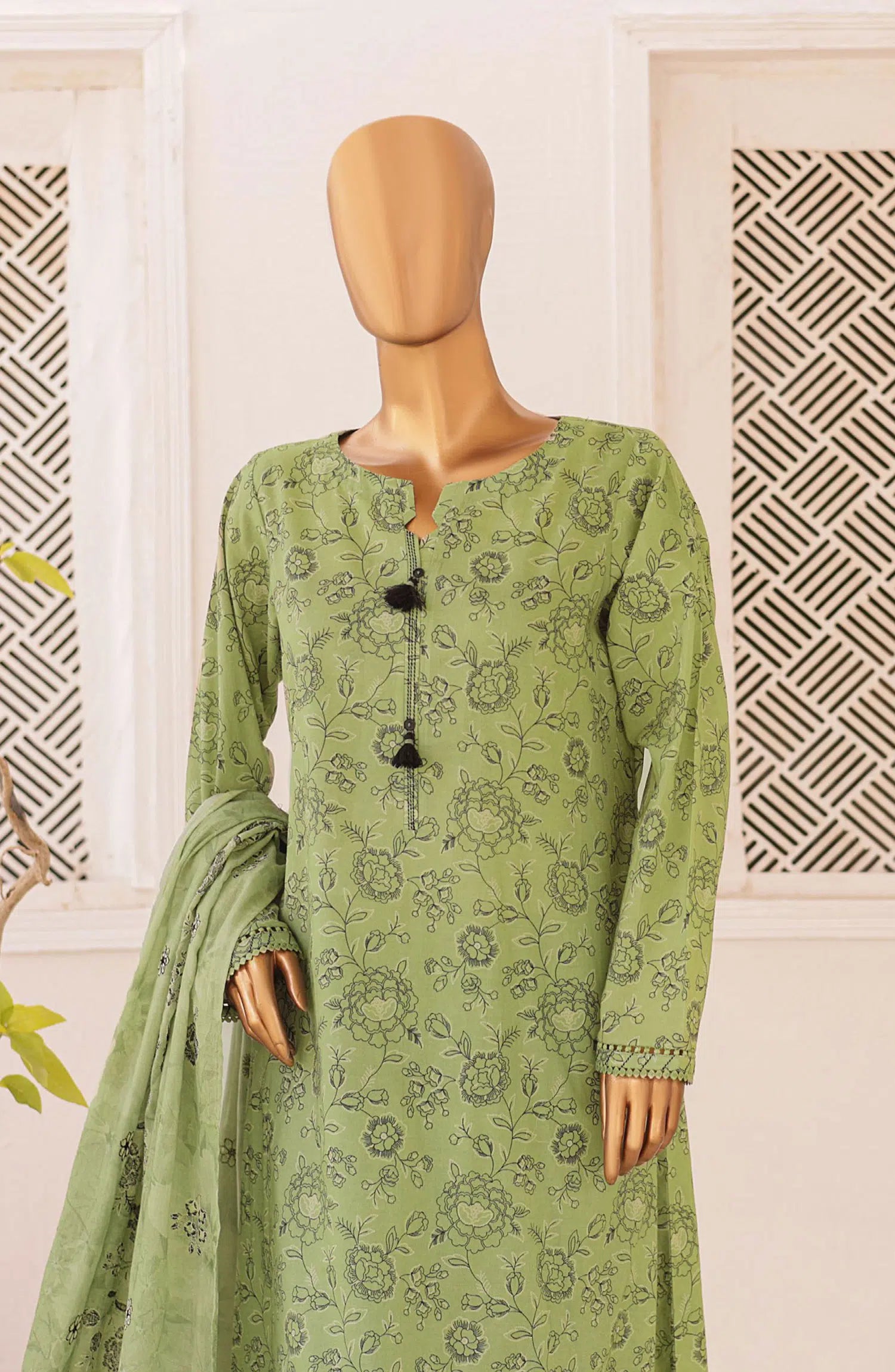 HZ Textile Digital Printed Linen Slub Unstitched 3 Piece Suit - LSD-306 - HZ25LNSL - Green - Winter Collection