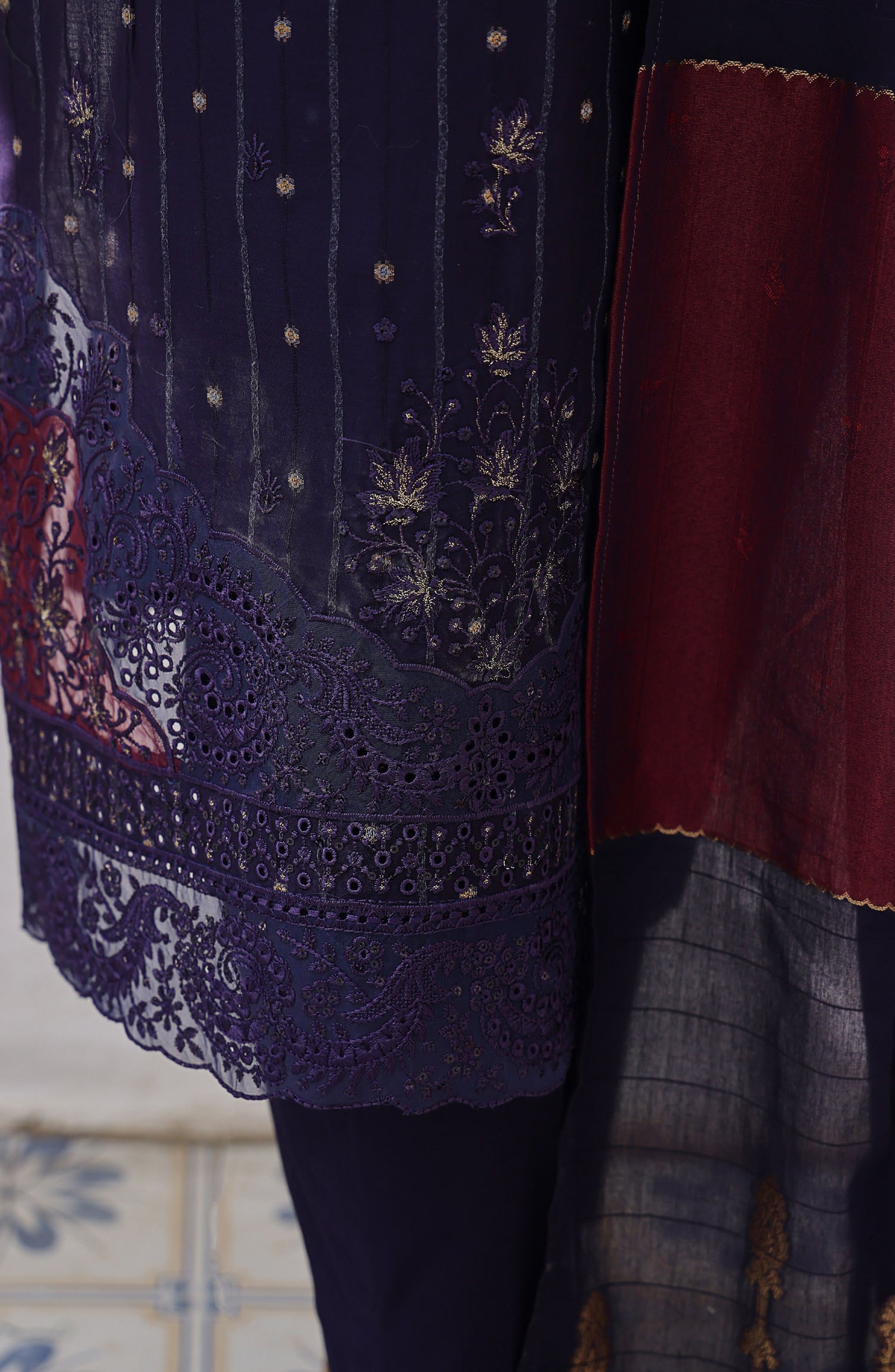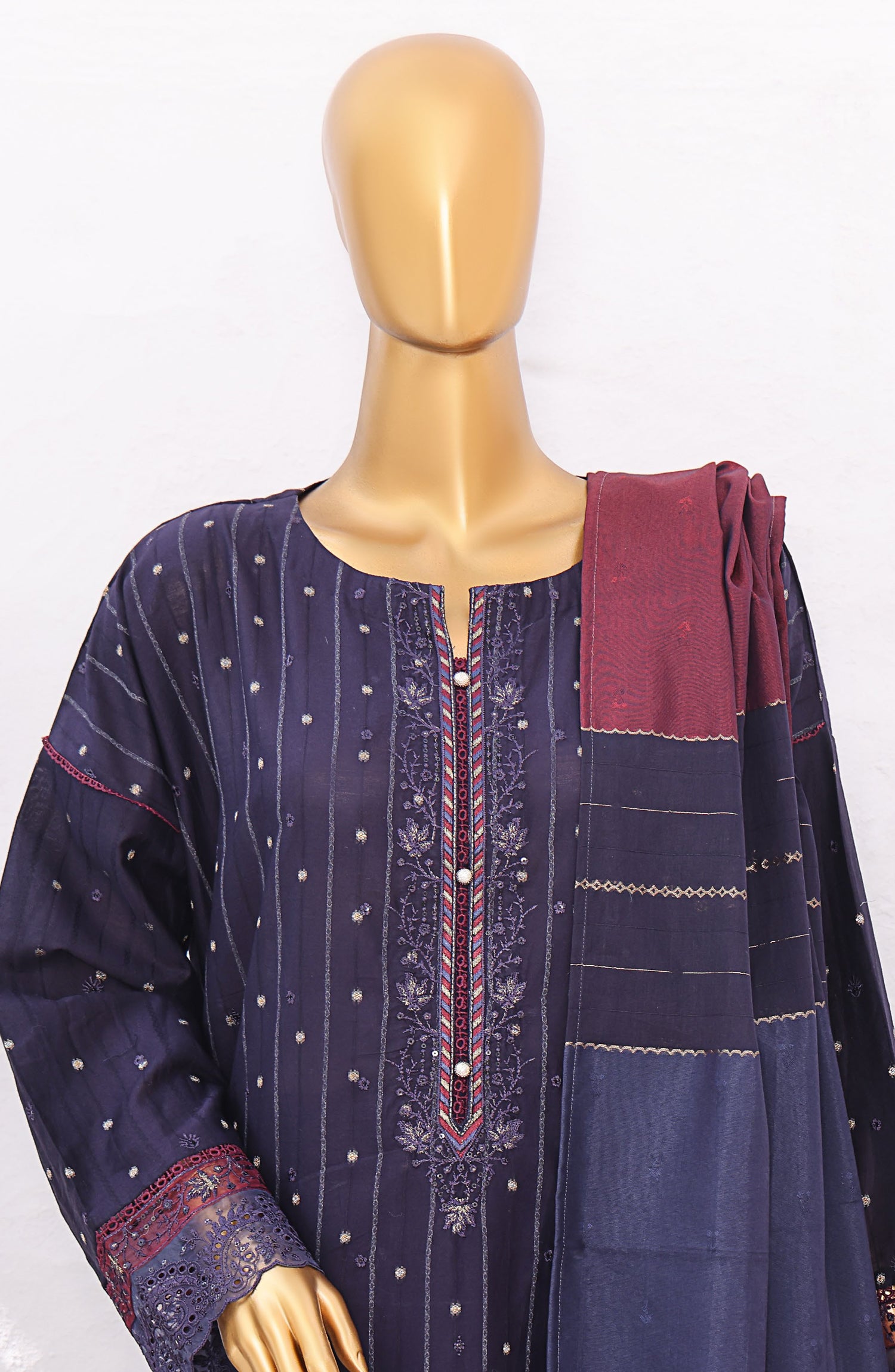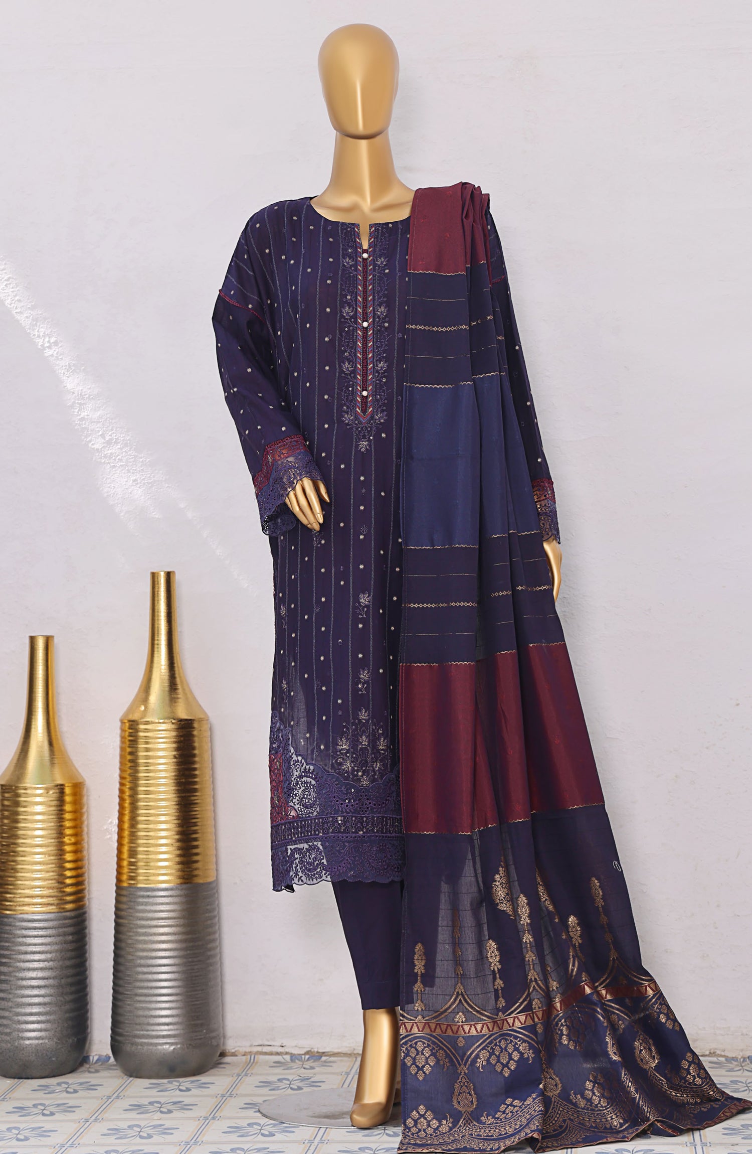 Fancy Dyed Ninokara Jacquard Heavy Embroidered Cotton Shirt with Sleeves Lace