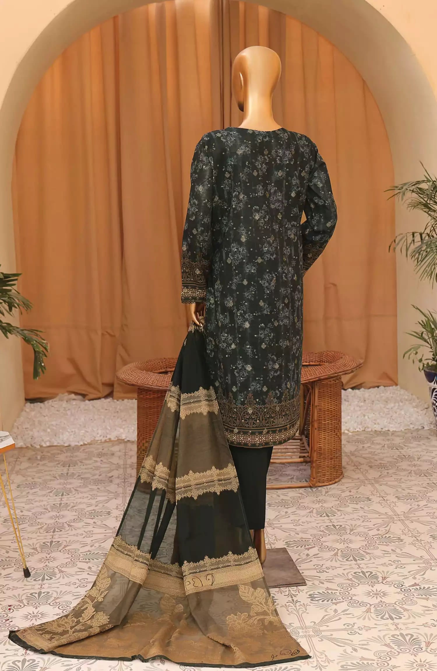 Rua by Casual Lite Embroidered Premium Linen Stitched 3 Piece Suit - D-03 Shadow Bloom - CL25RU - Black - Winter Collection