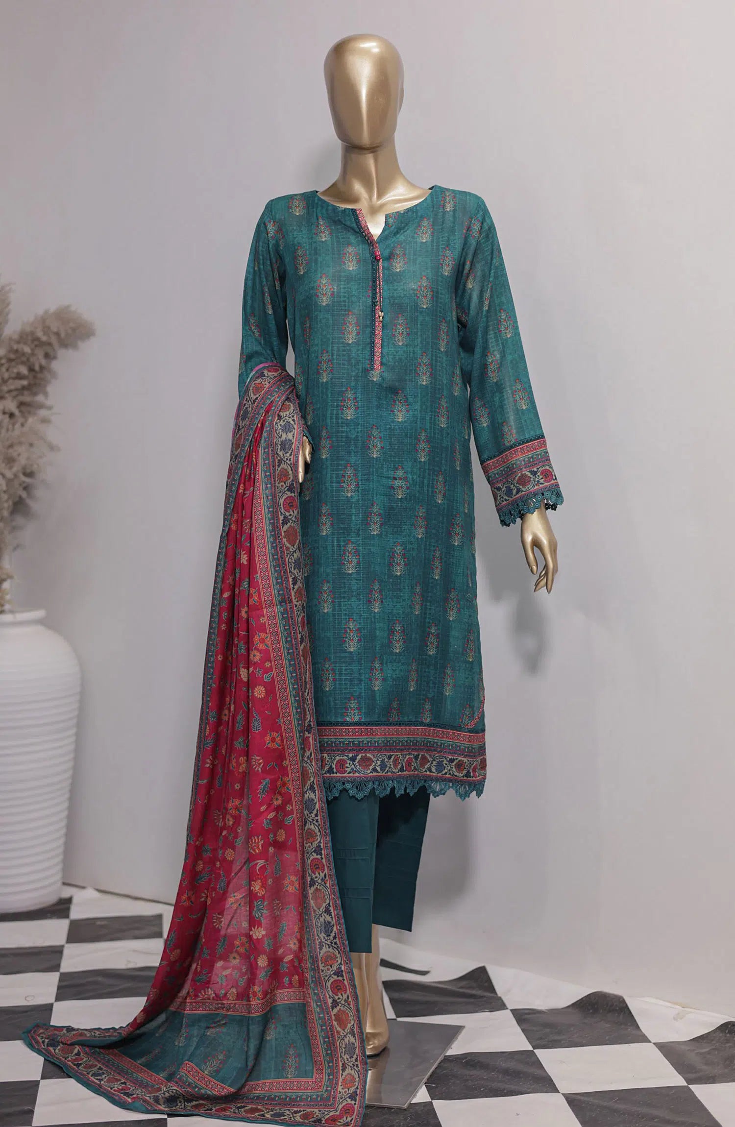 HZ Textile Digital Printed Linen Slub Unstitched 3 Piece Suit - LSD-306 - HZ25LNSL - Green - Winter Collection