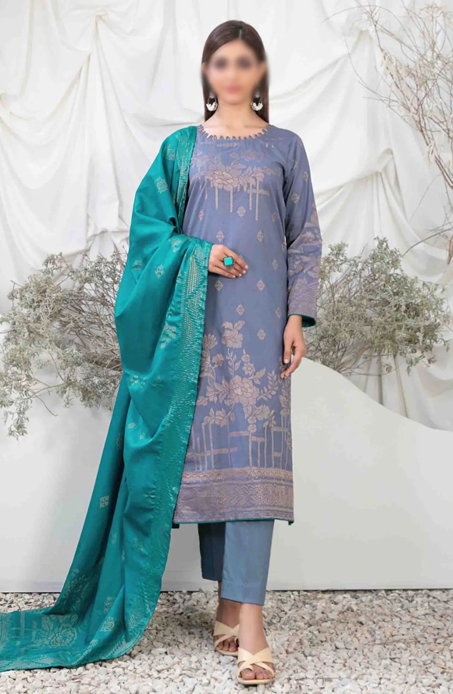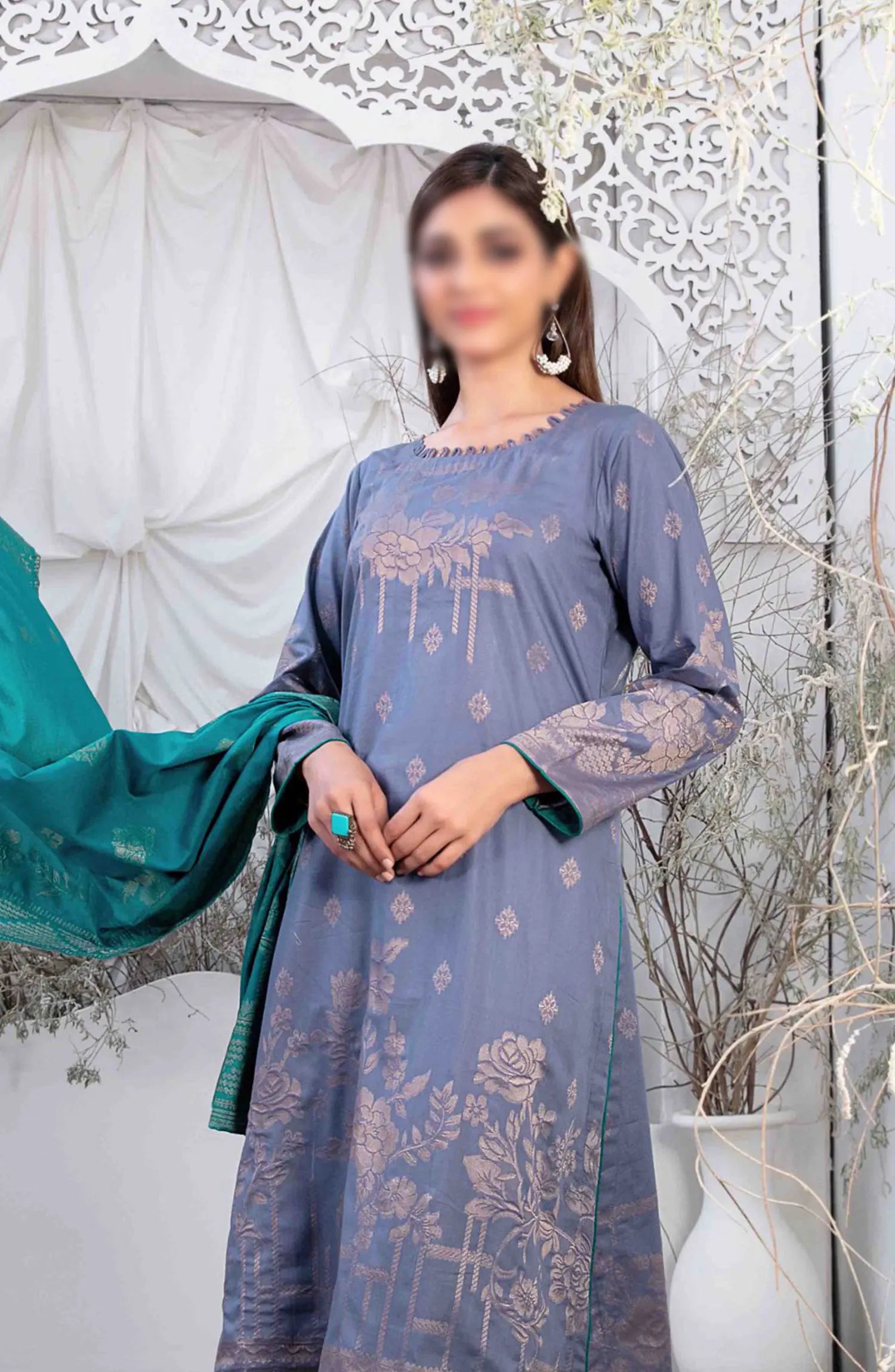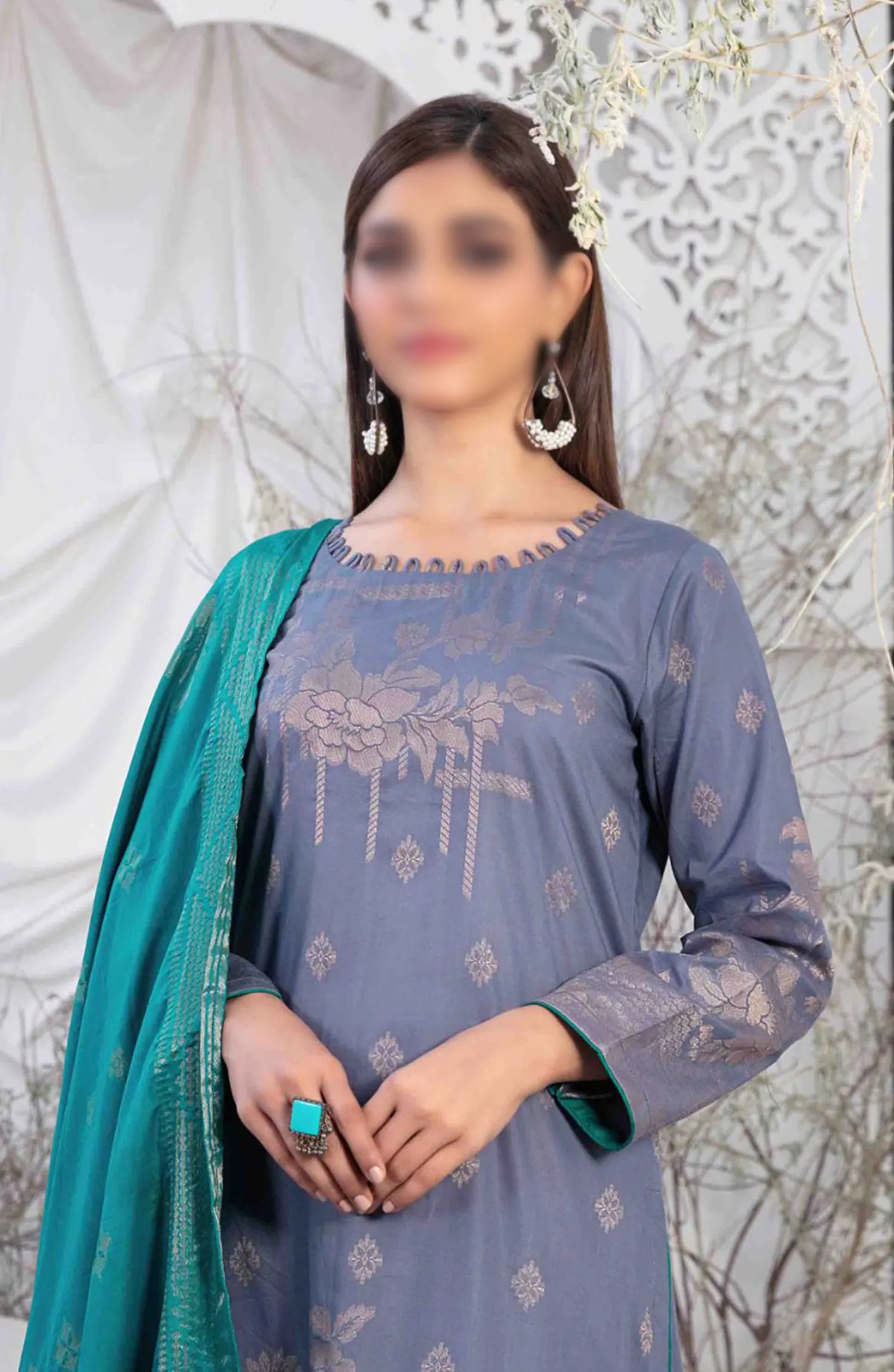 Ifsha - Lawn Broshia Banarsi 3pcs Collection By Tawakkal Fabrics has been styled in the image for photography and illustrative purposes.