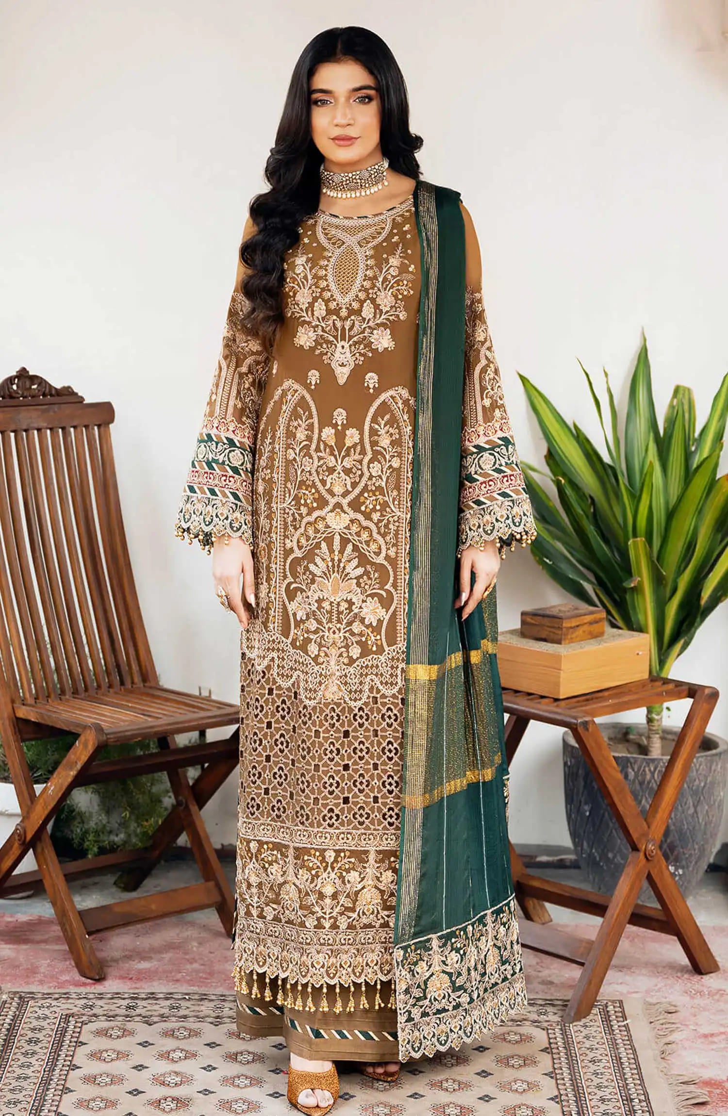 Imrozia Serene Sitarah Luxury Chiffon Collection 2024 has been styled in the image for photography and illustrative purposes.