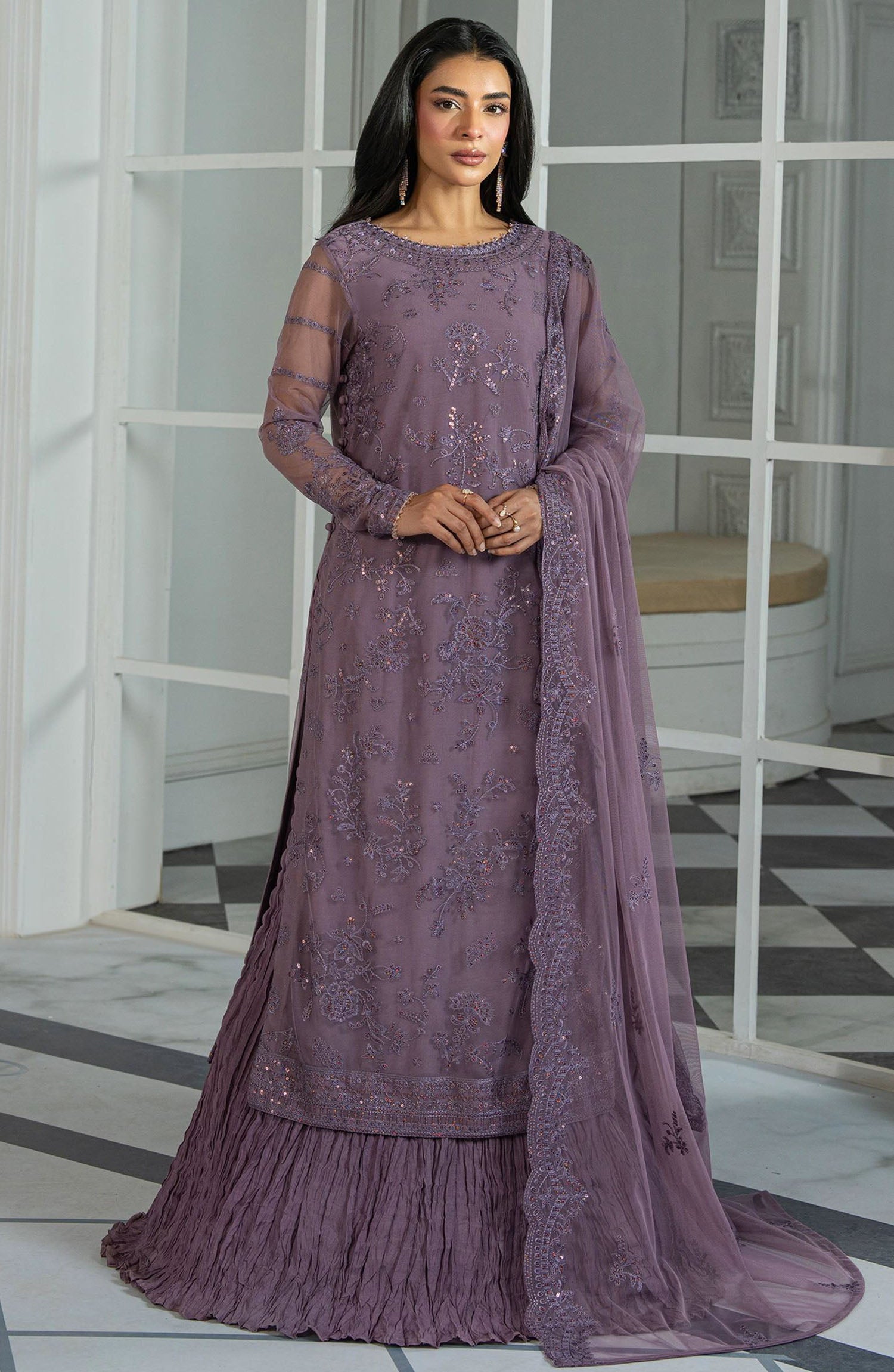 Inara by Zarif Embroidered Net Unstitched 3 Piece Suit - ZRI-03 Nisa - ZF25IUF - Purple - Formal Collection