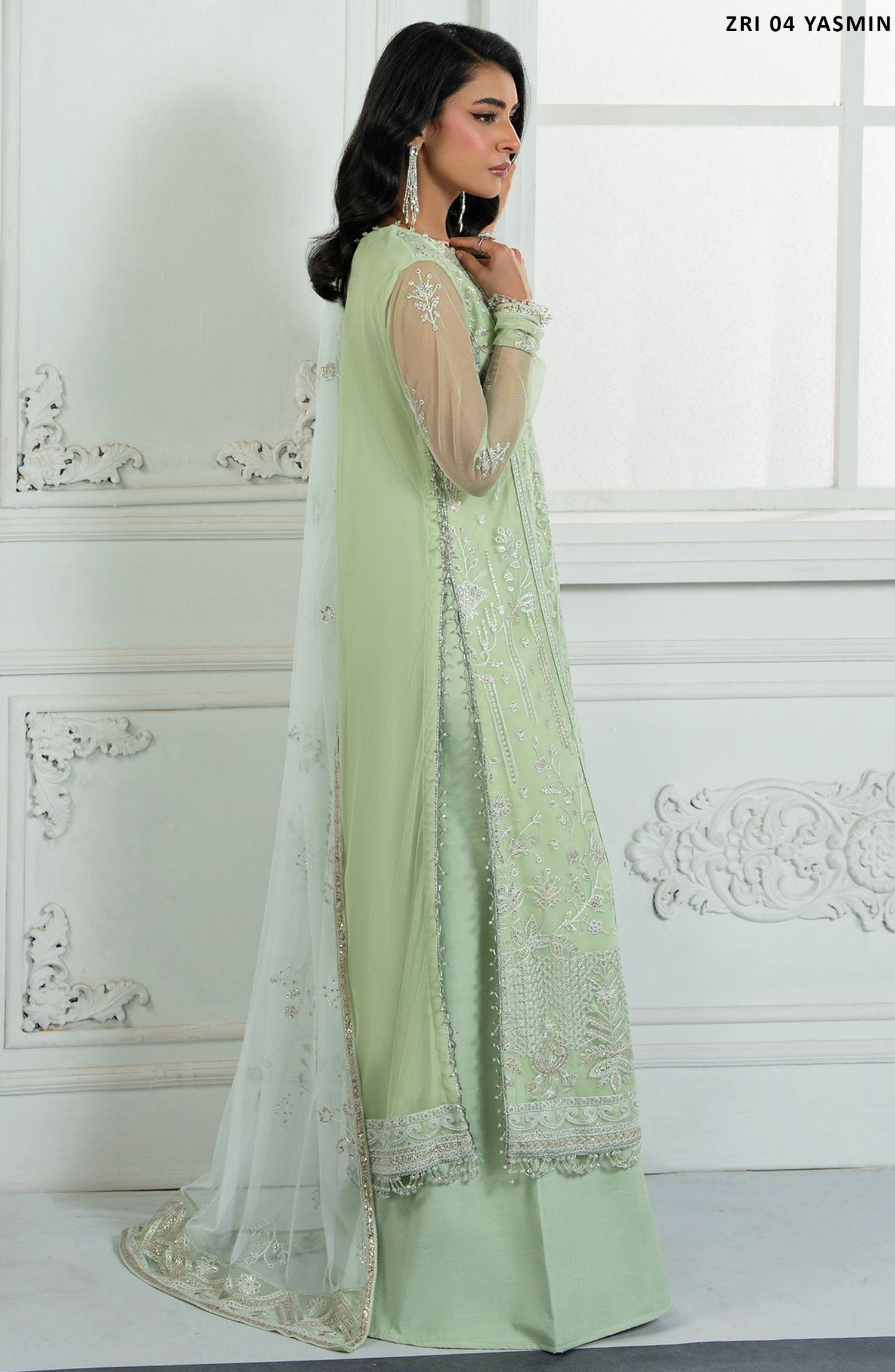 Inara by Zarif Embroidered Net Unstitched 3 Piece Suit - ZRI-04 Yasmin - ZF25IUF - Green - Formal Collection