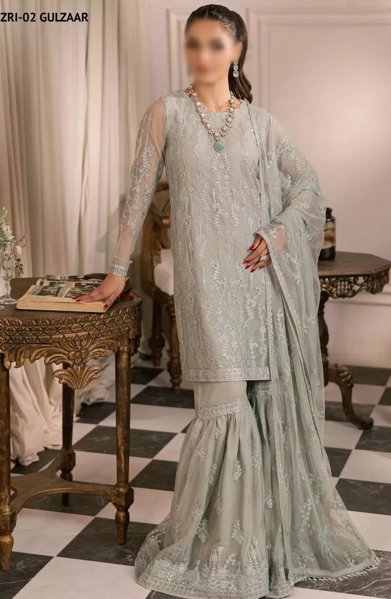 Inayat Unstitched Formals Wear By Zarif has been styled in the image for photography and illustrative purposes.