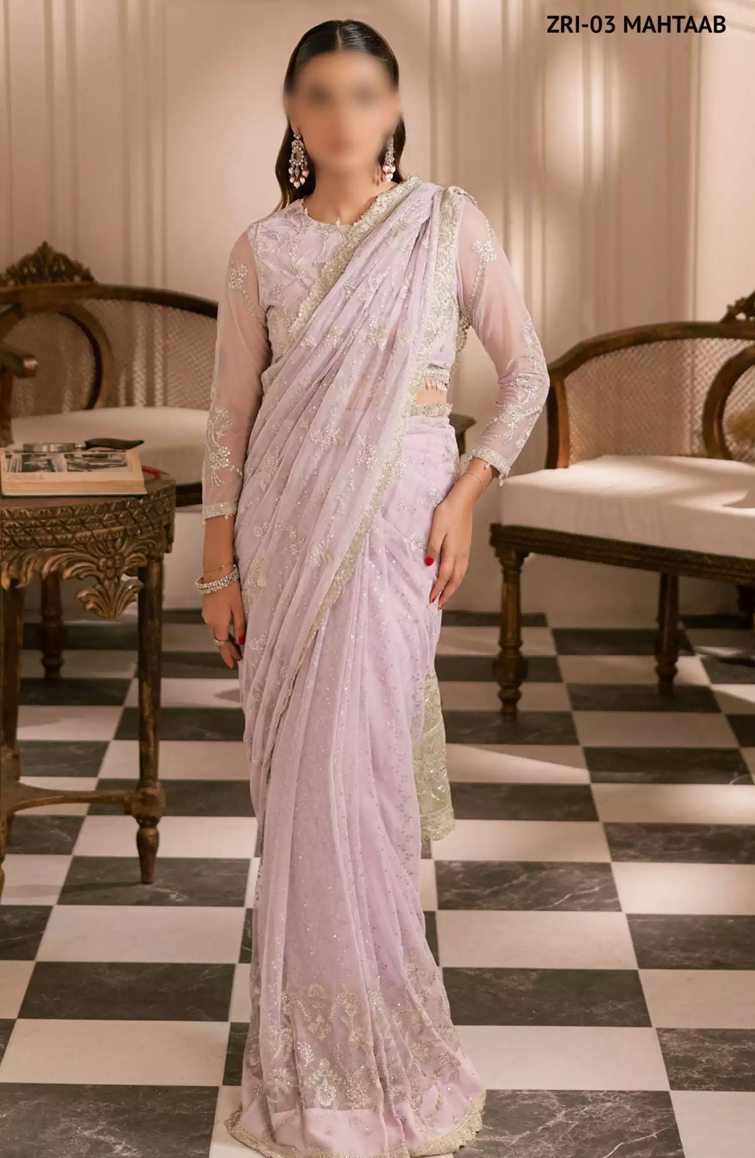 Inayat Unstitched Formals Wear By Zarif has been styled in the image for photography and illustrative purposes.