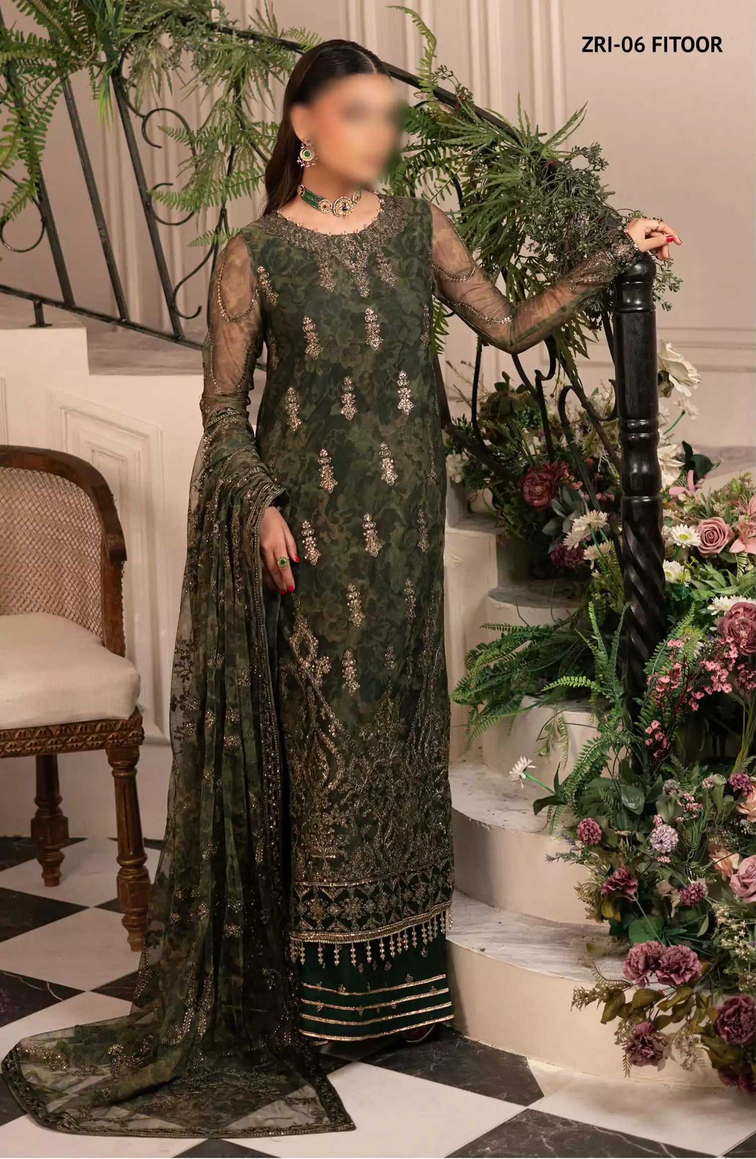 Inayat Unstitched Formals Wear By Zarif has been styled in the image for photography and illustrative purposes.