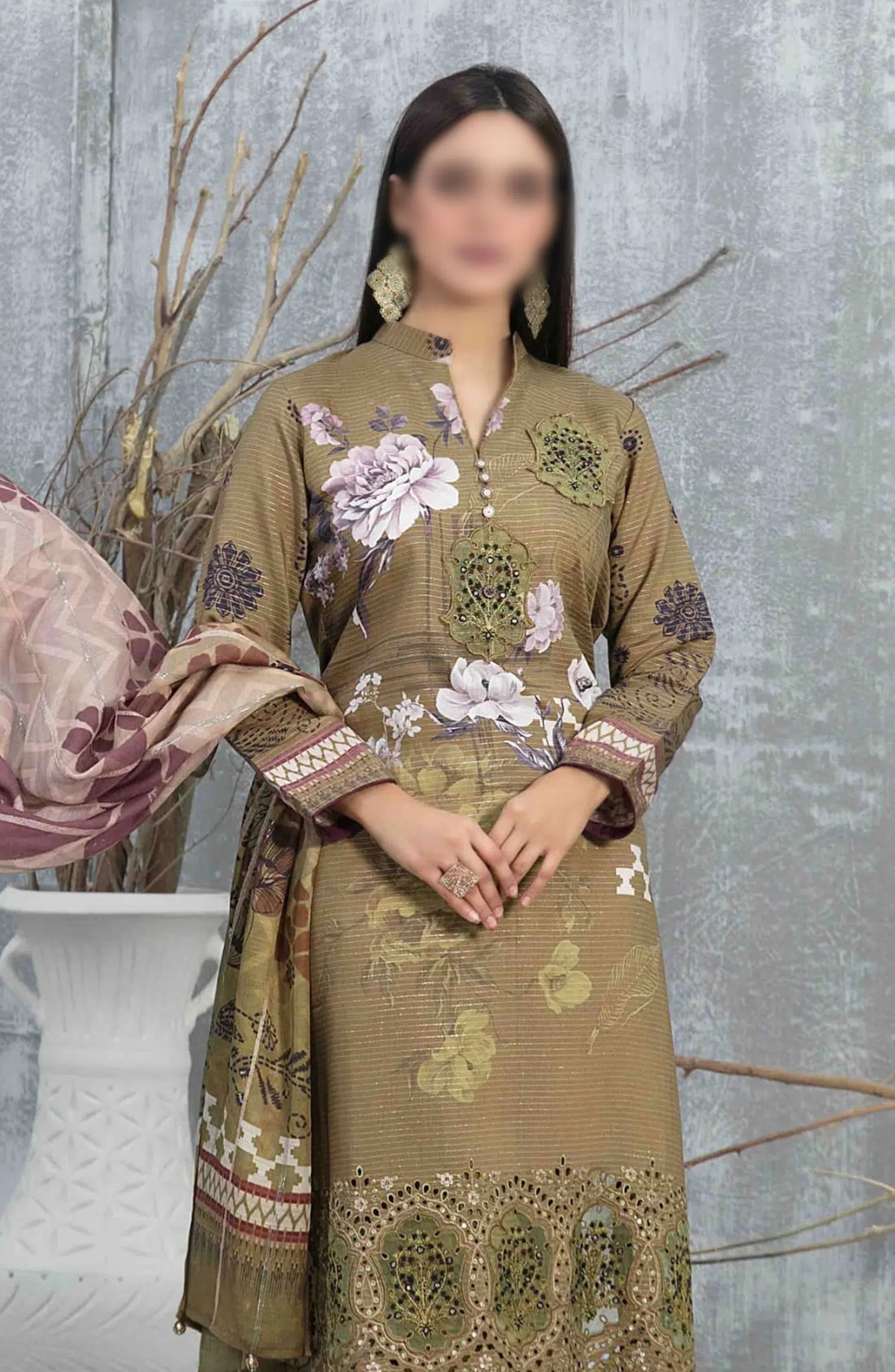 Embroidered Laserkari Viscose Zari Digital Print Suit with Diamond Dupatta.