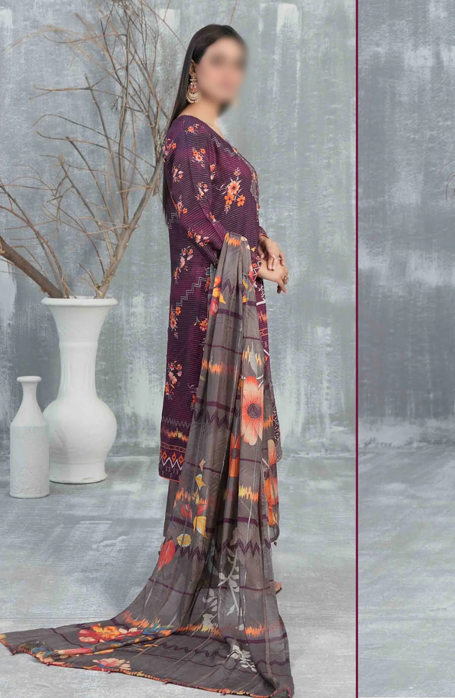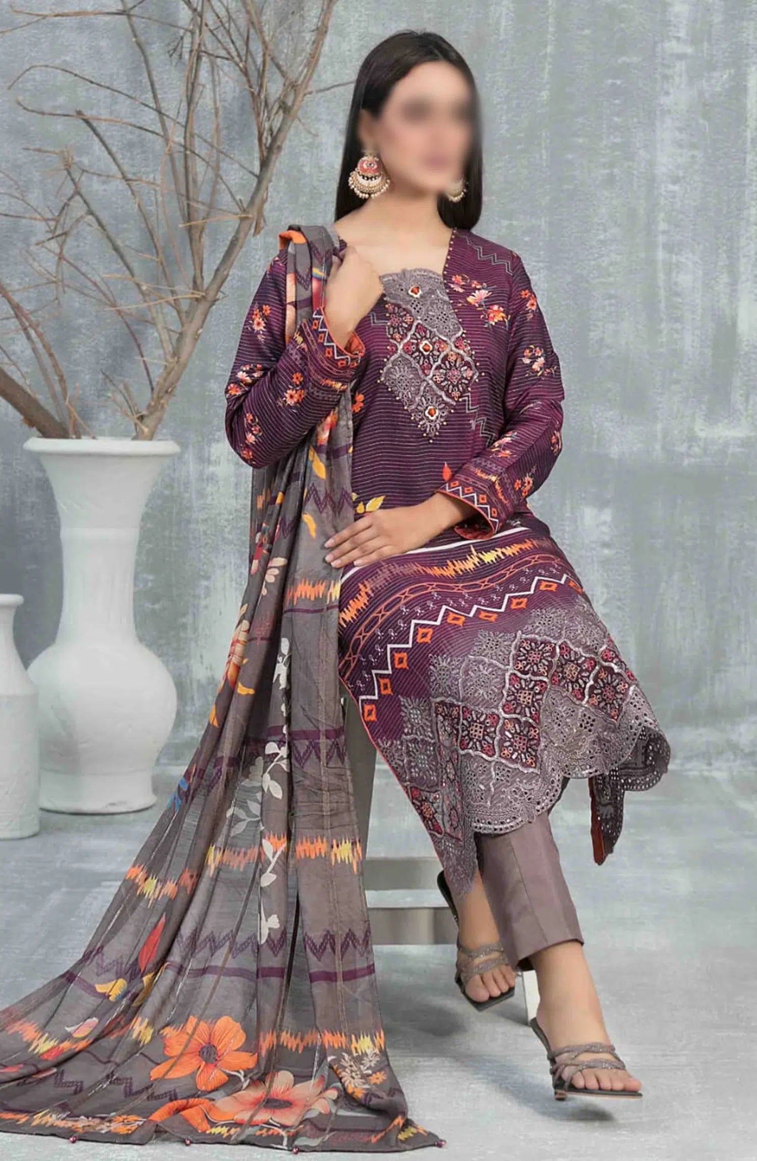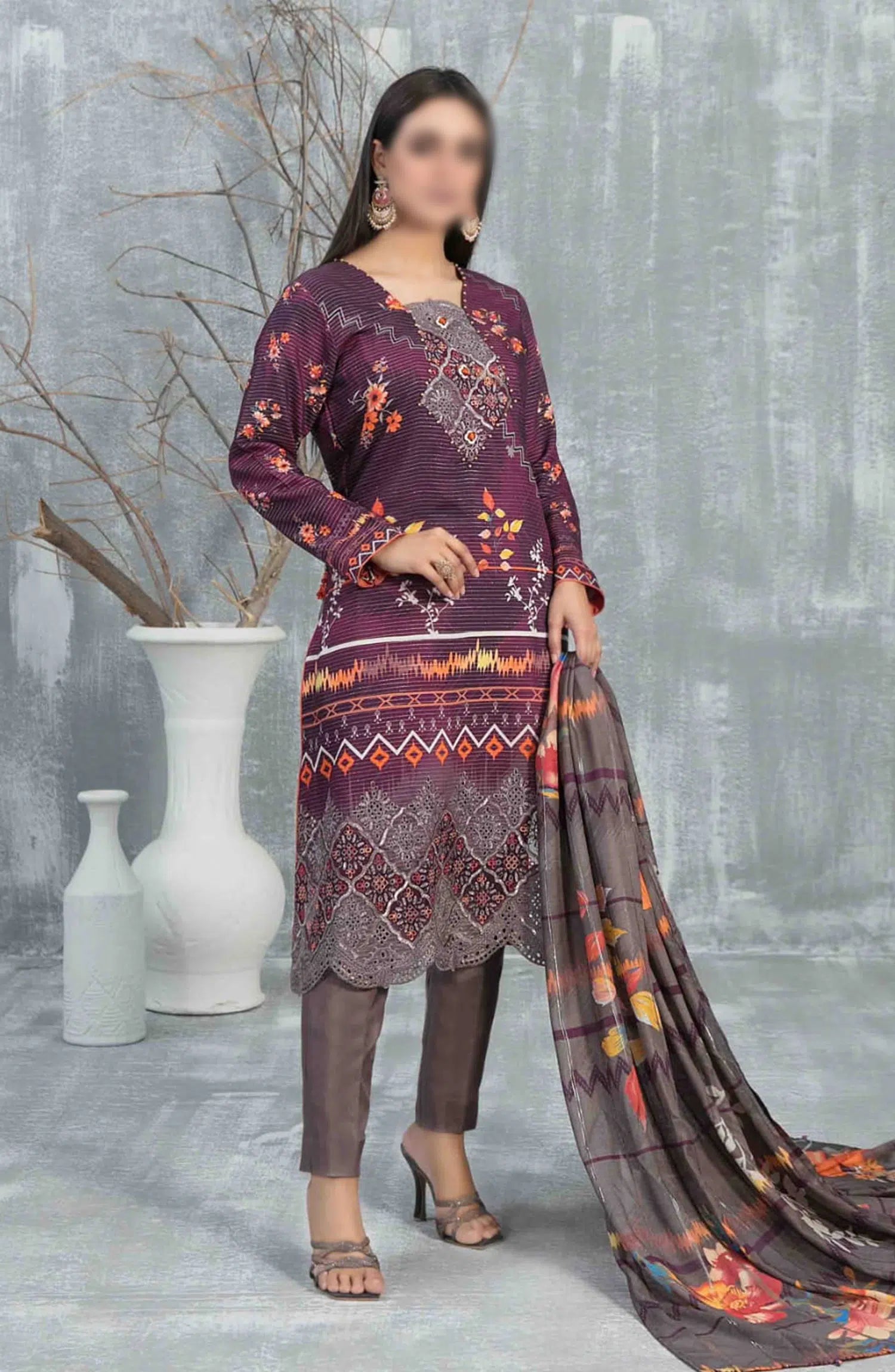 Embroidered Laserkari Viscose Zari Digital Print Suit with Diamond Dupatta.