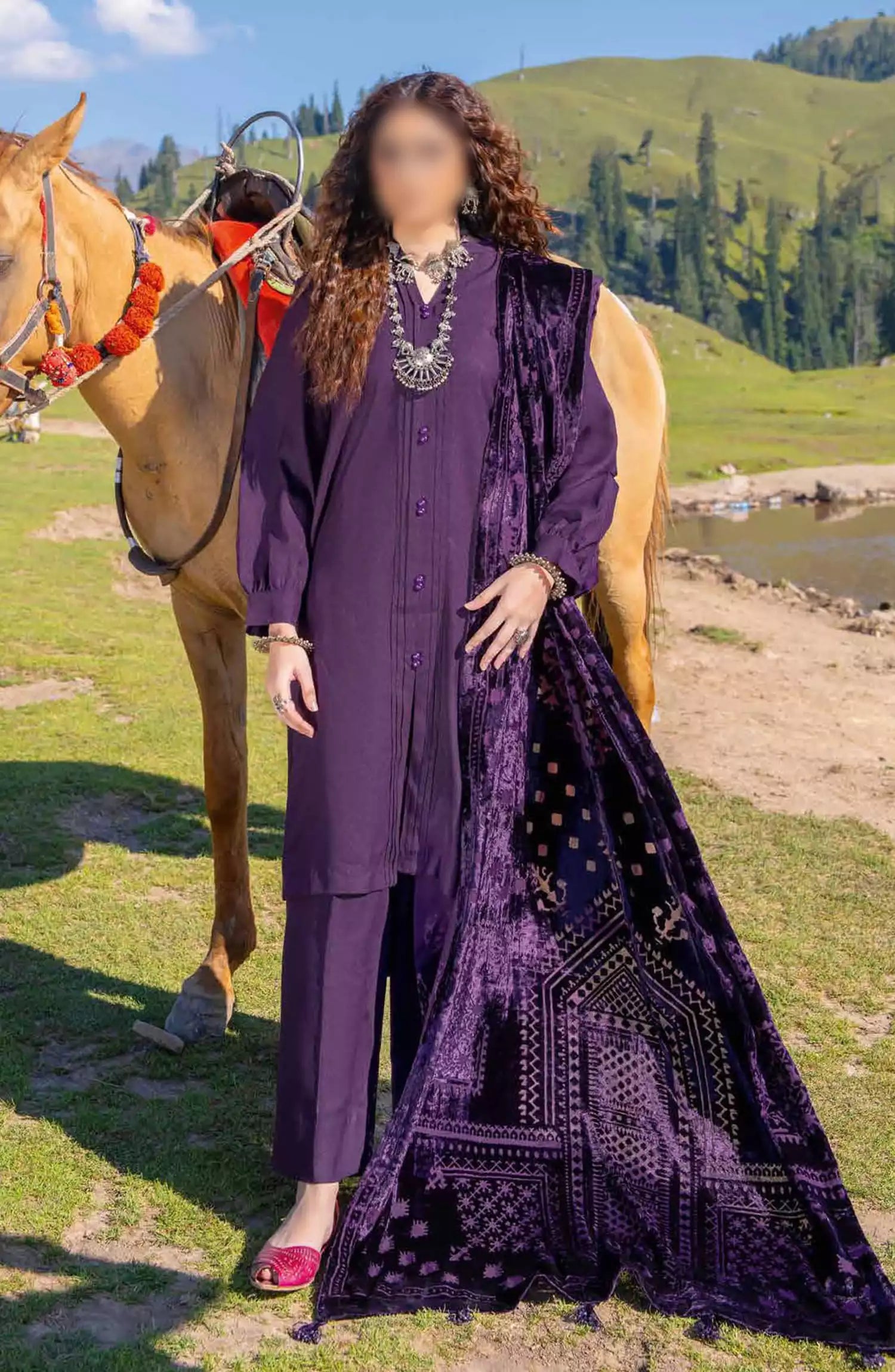 Insia Luxury Winter Zari Wool Collection By Riaz Arts has been styled in the image for photography and illustrative purposes.