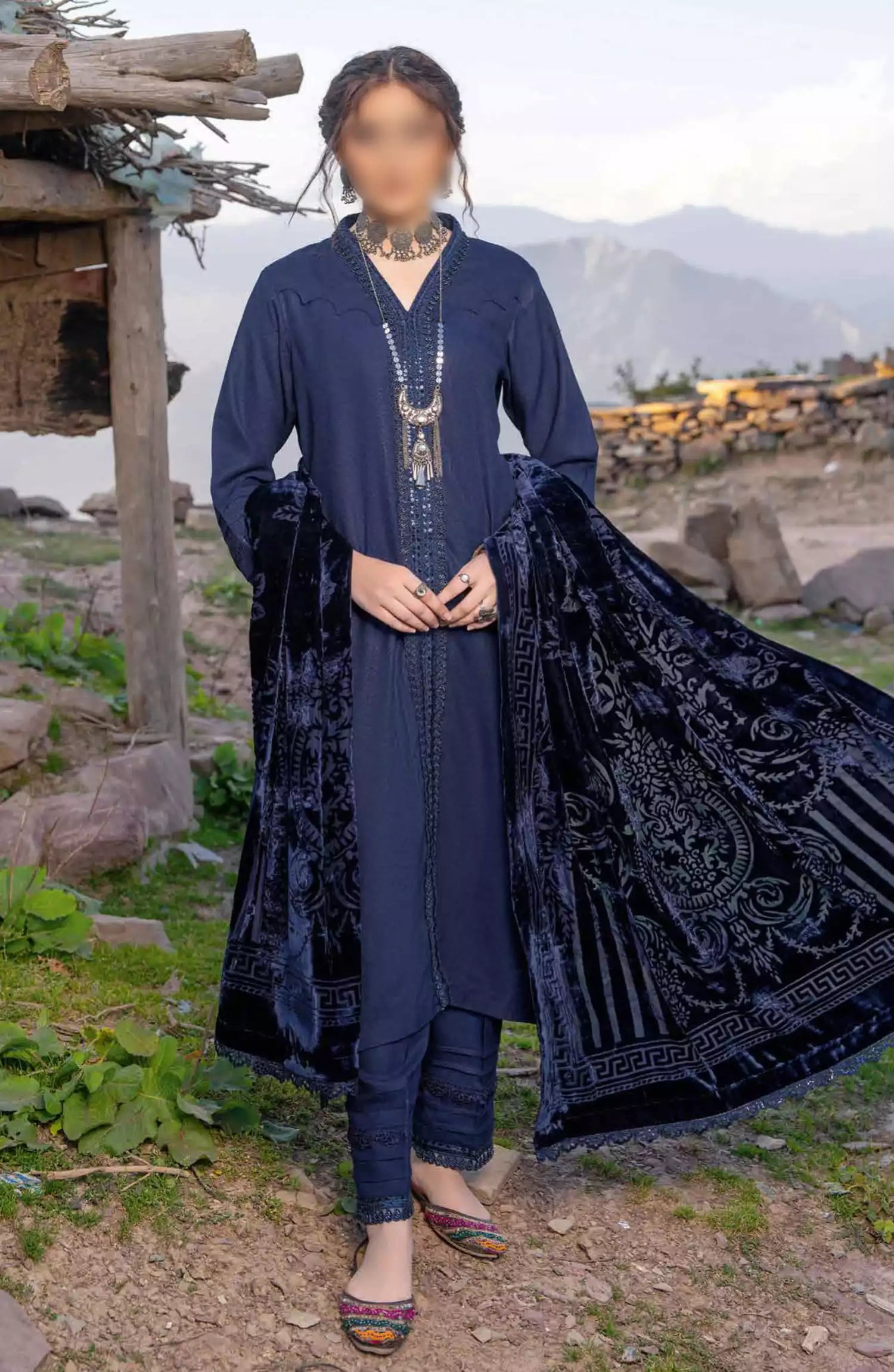 Insia Luxury Winter Zari Wool Collection By Riaz Arts has been styled in the image for photography and illustrative purposes.
