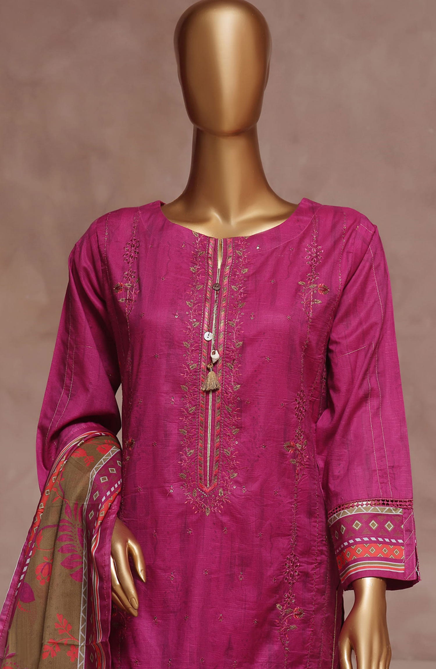 Home Intermix by HZ Textile Embroidered Cambric Stitched 3 Piece - CPE-125 MAGENTA - HZ25I - Purple - Winter Collection