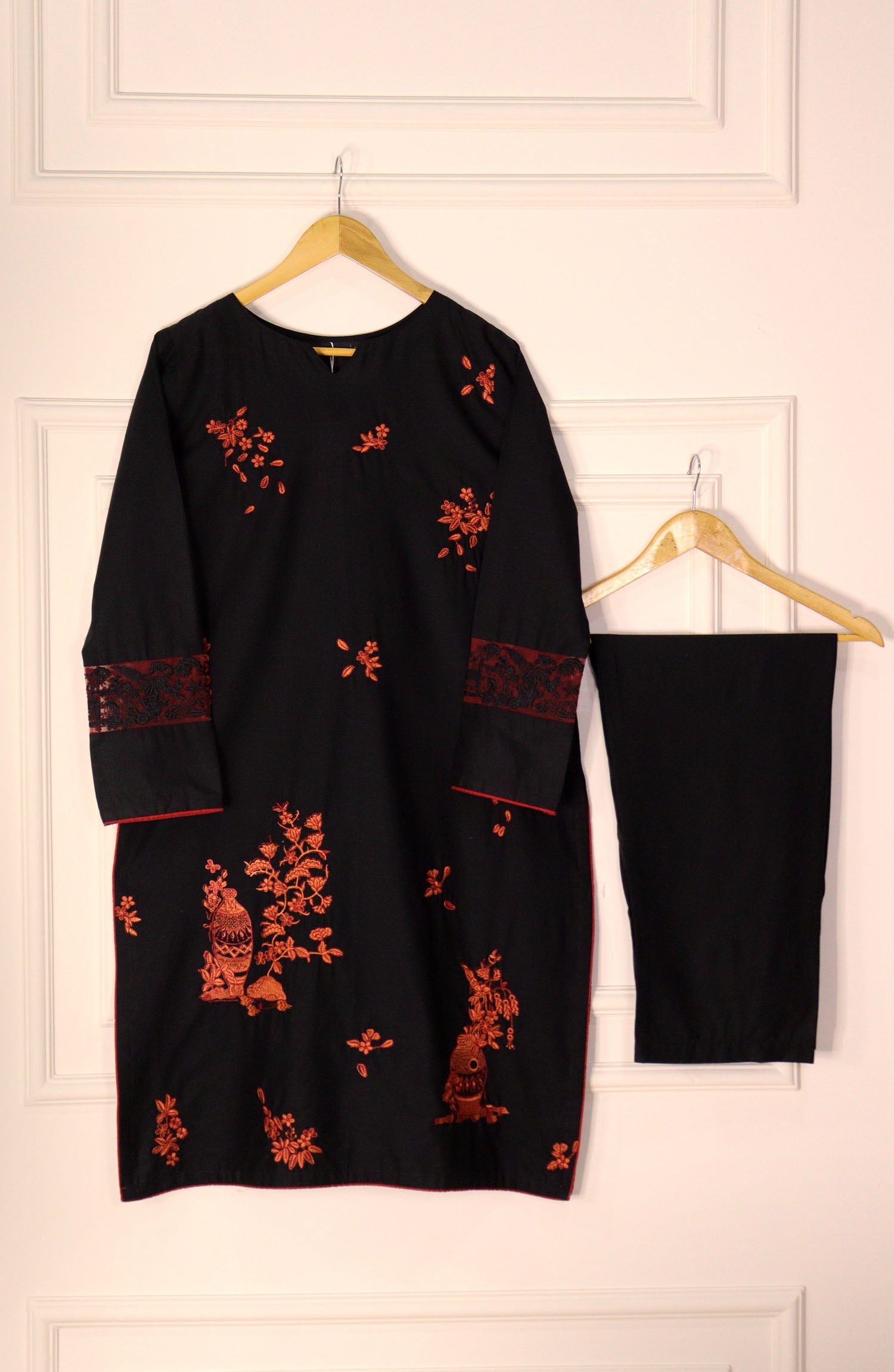 Modest Embroidered Khaddar Stitched 3 Piece Suit - 9990-Blk - MOD25WNT - Black - Winter Collection